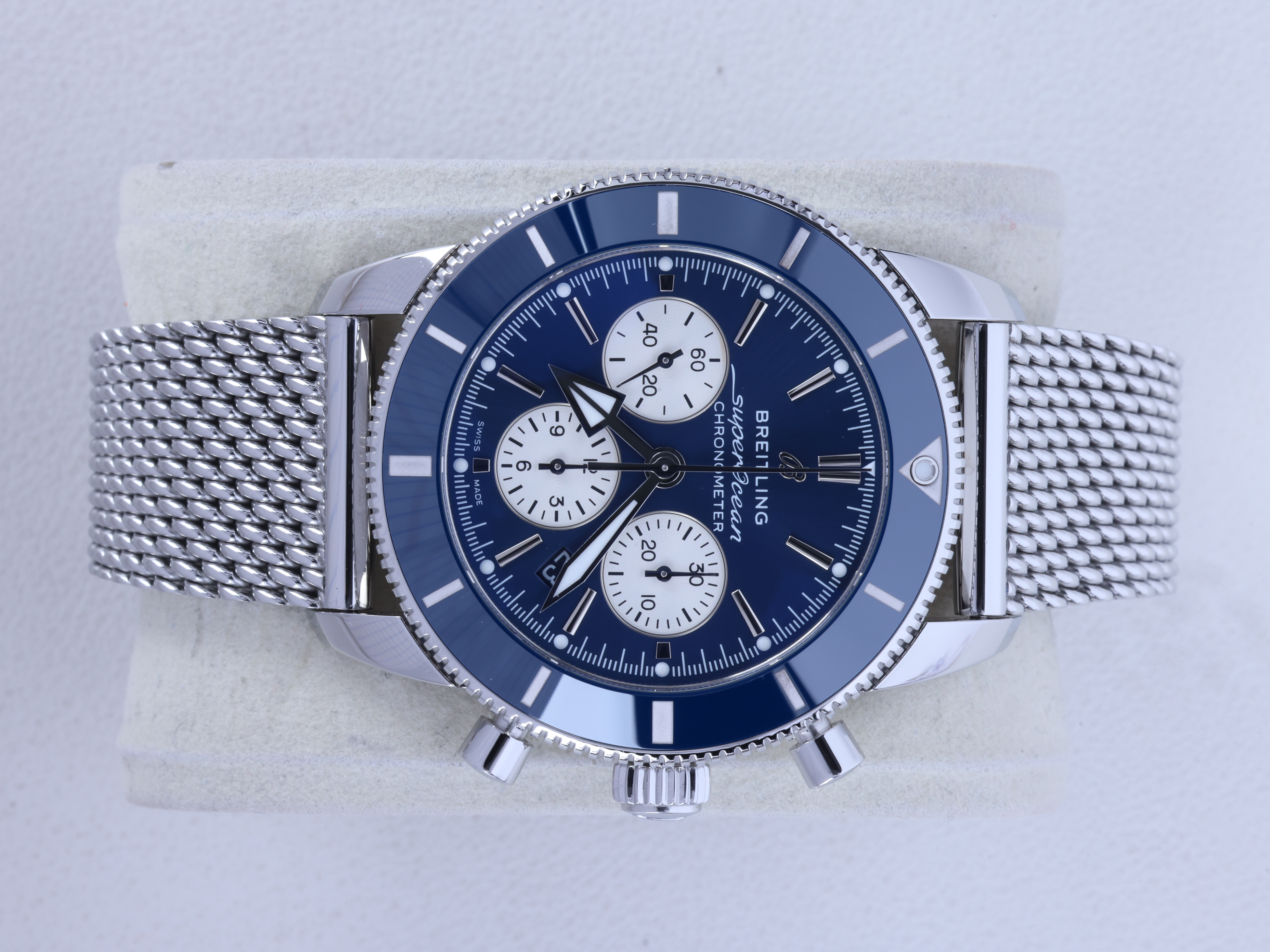AB0162161C1A1,브라이틀링 다이버 다이빙 슈퍼오션 헤리티지 2 II B01 크로노그래프 44 스틸 블루 스틸 빅사이즈 오토매틱 셀프와인딩,Breitling Superocean Heritage B01 Chronograph 44 steel blue steel big size automatic selfwinding diver diving,블루,44mm,스테인리스 스틸,단방향 회전 베젤,셀프 와인딩,Stainless steel,Folding clasp,Date,chronograph subdials,small seconds / applied baton indices,Superocean Heritage B01 Chronograph 44,슈퍼오션 헤리티지 B01 크로노그래프 44,Superocean Heritage,Breitling,브라이틀링,Date, chronograph subdials, small seconds / applied baton indices