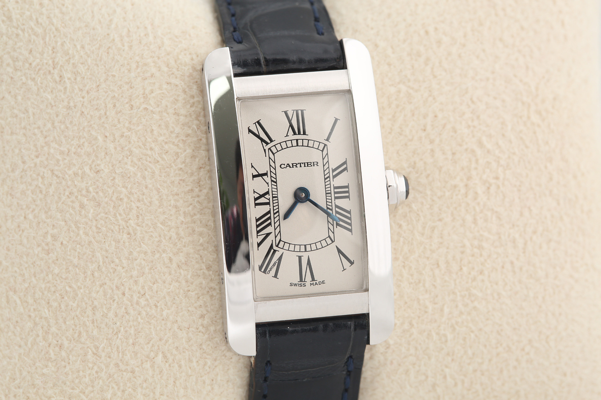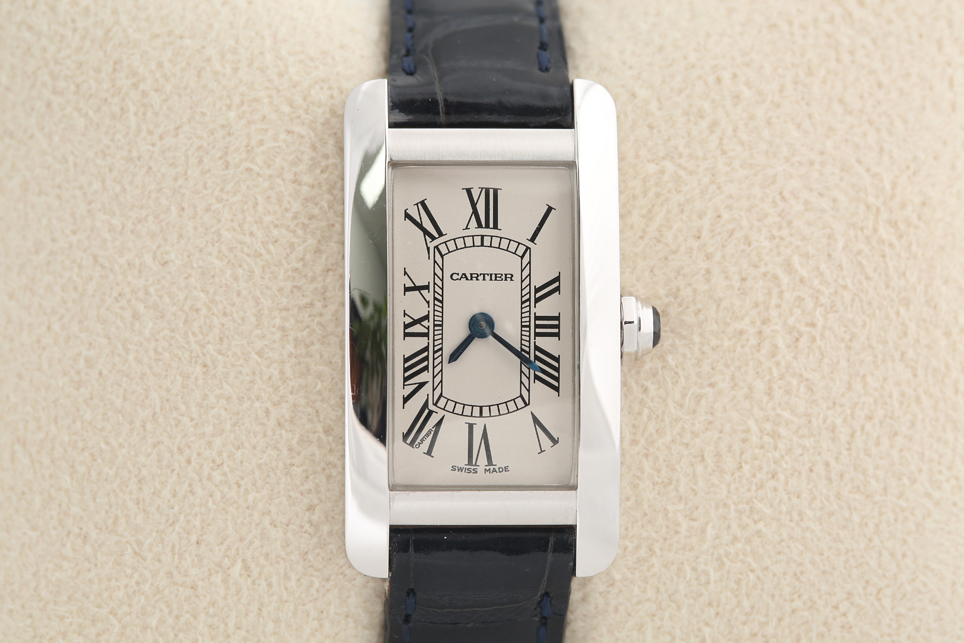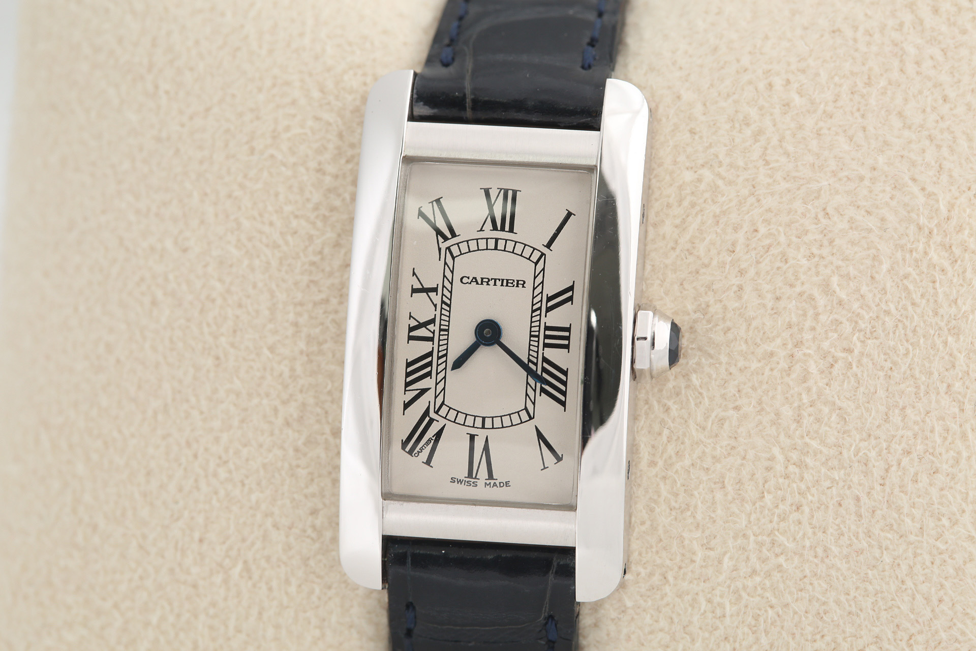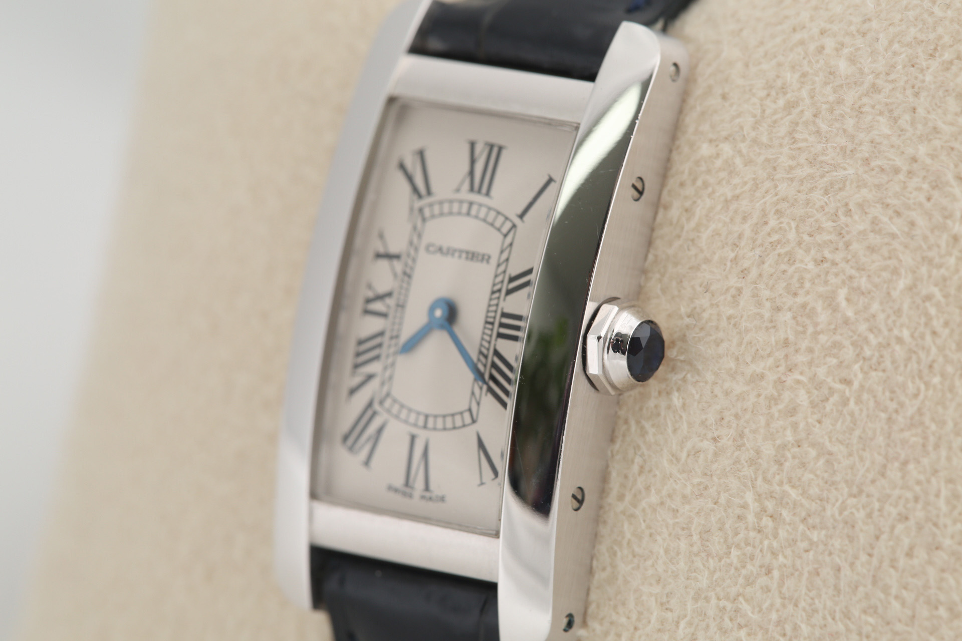 Tank Americaine,탱크 아메리칸,Tank,Cartier,까르띠에,White gold + sapphire,Pin buckle,Roman numeral indices,W2601956