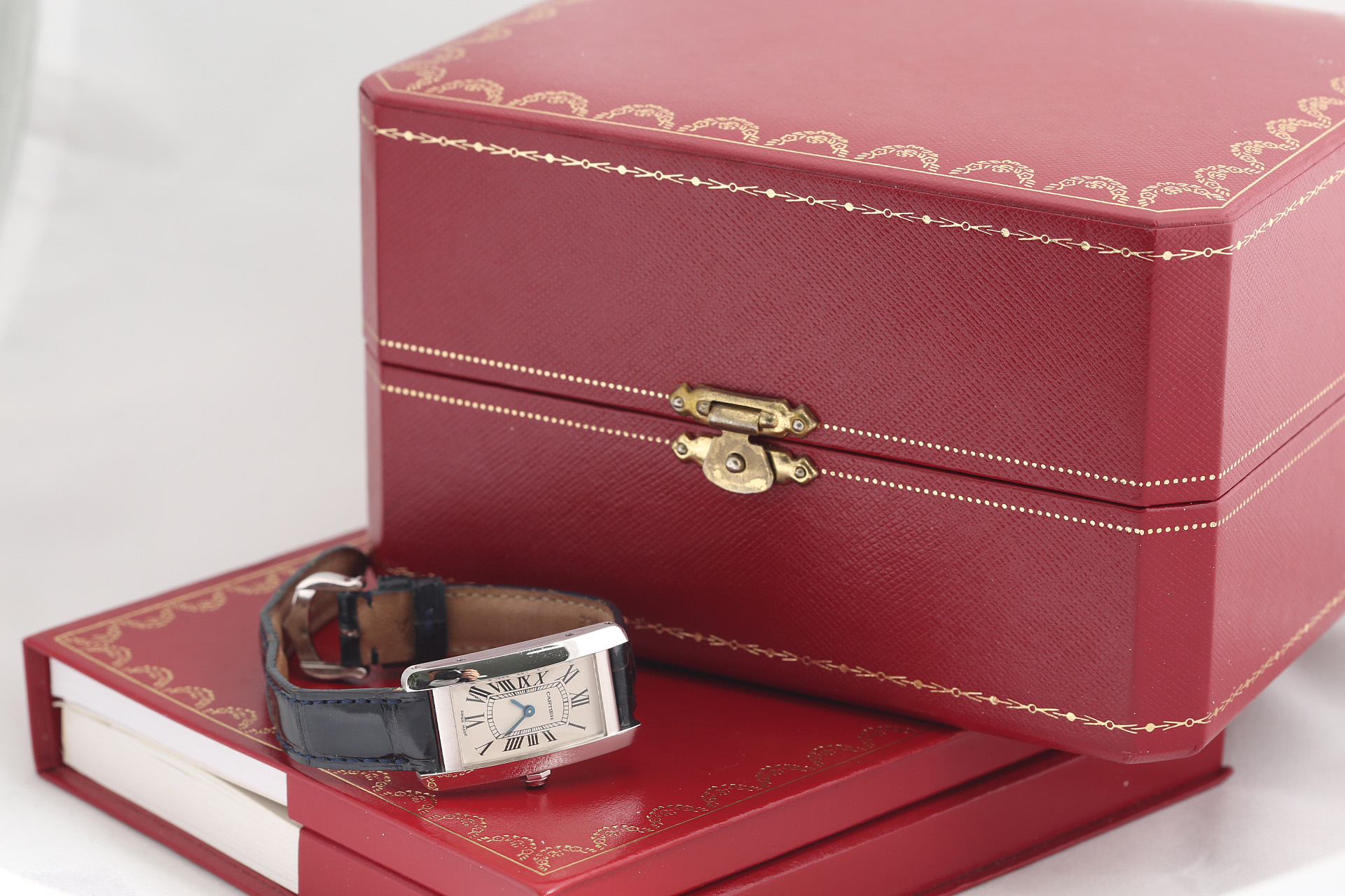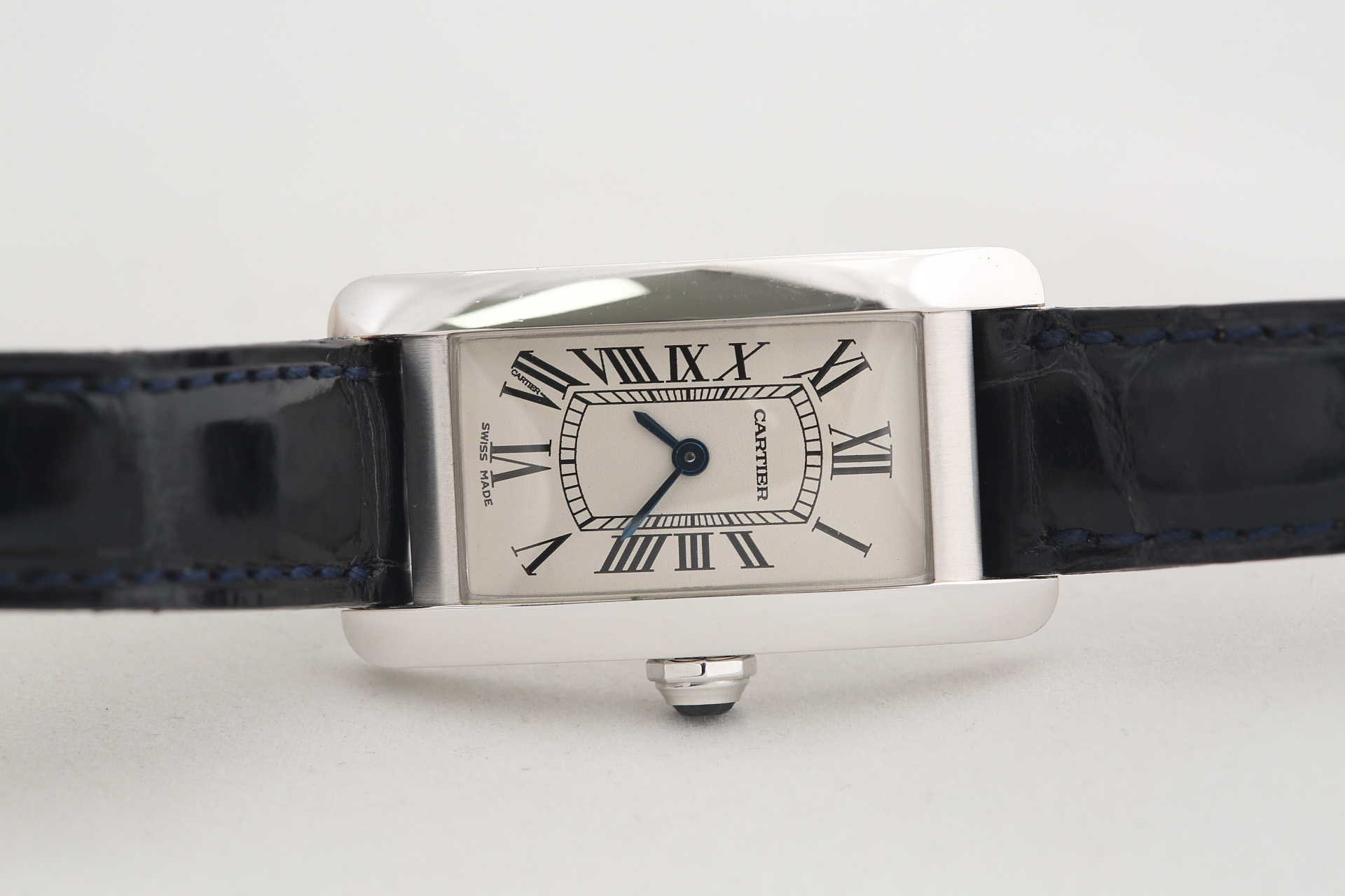 35 × 19mm · Swiss Quartz · 18K White Gold Case · Roman Dial / Blue Steel Hands · 2000