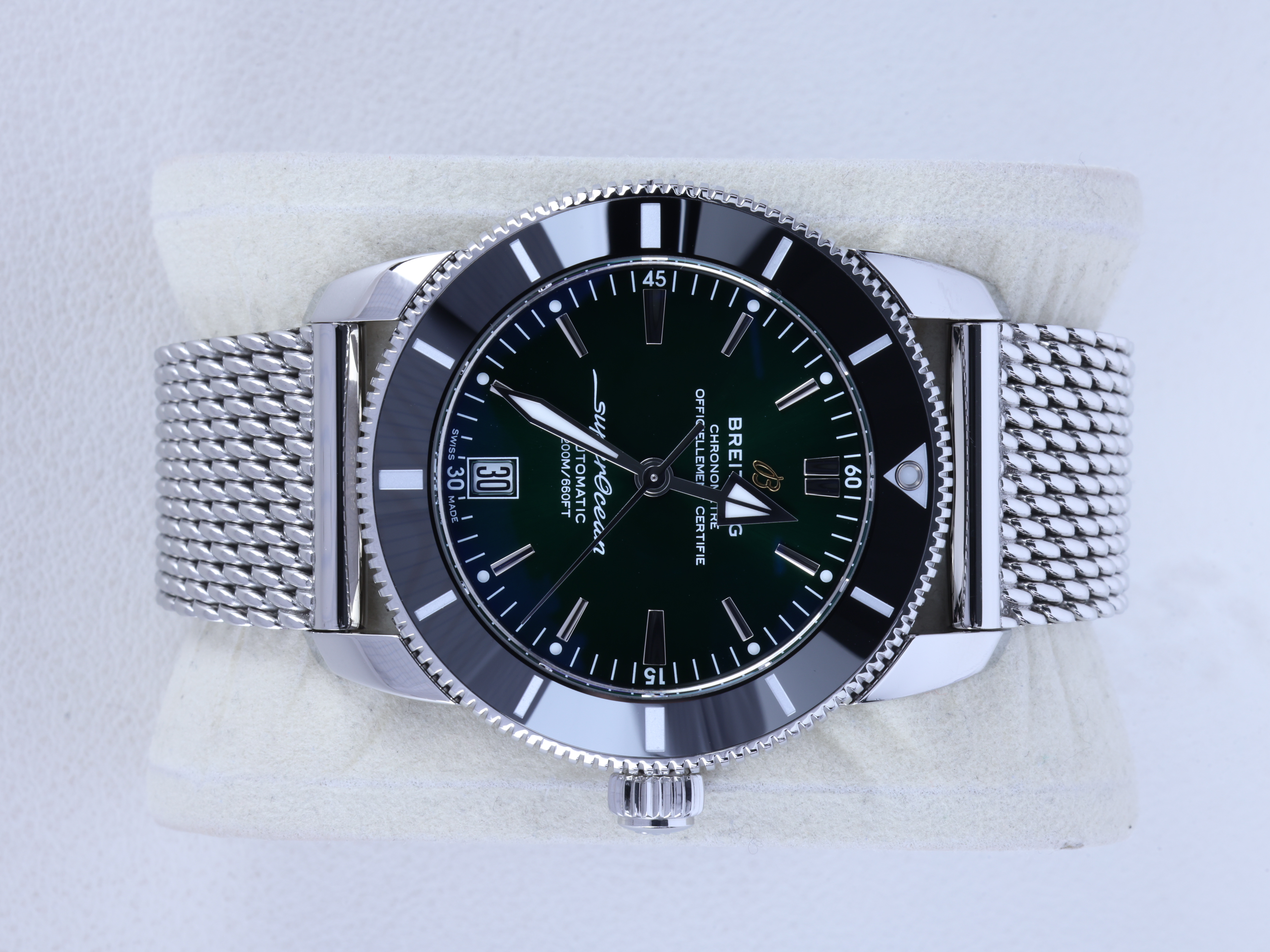 AB2010121L1A1,Breitling Superocean Heritage B20 Automatic 42 steel green steel,슈퍼오션 헤리티지 B20 오토매틱 42 스틸 그린 스틸 브레이슬릿,그린,스테인리스 스틸,브레이슬릿,42mm,단방향 회전 베젤,셀프 와인딩,브라이틀링 B20,Switzerland,Stainless steel,Folding clasp,Date / applied hour markers,Superocean Heritage B20 Automatic 42,슈퍼오션 헤리티지 B20 오토매틱 42,Superocean Heritage,Breitling,브라이틀링