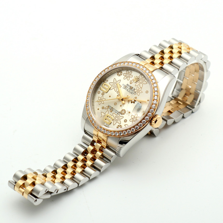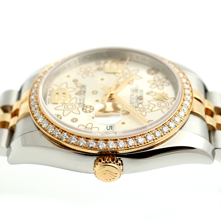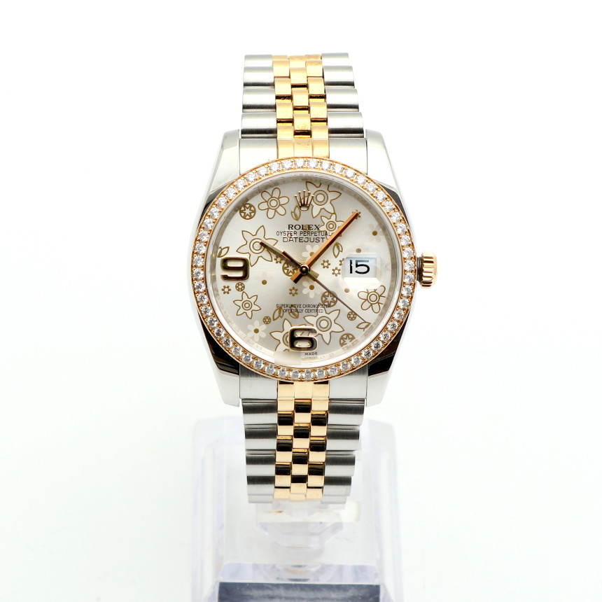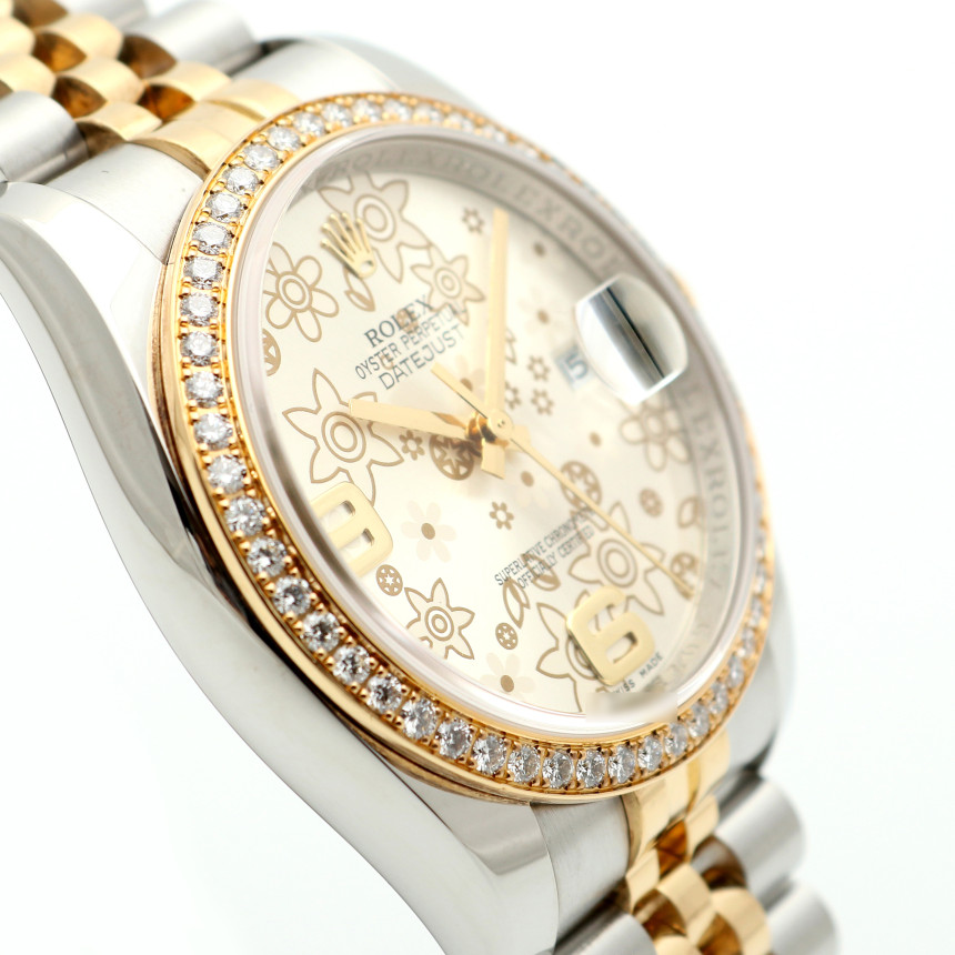Datejust 36,데이트저스트 36,Datejust,Rolex,롤렉스,Rolex M116243-0011,롤렉스 데이트저스트 플로럴 모티프,롤렉스 데이트저스트 36 옐로우 골드 투톤,롤렉스 데이트저스트 36 롤레조 플로럴 모티프,롤렉스 데이트저스트 36 옐로우 골드 플로럴 모티프,롤렉스 데이저스트 36 플로럴,롤렉스 데이저스트 36 옐로우 골드 플로럴,롤렉스 데이저스트 옐로우 골드 플로럴 모티프,실버,플로럴 모티프,36mm,Switzerland,Yellow gold,Hidden folding clasp,Date / floral motif with 6-9 applied indices,Hour + minute + seconds