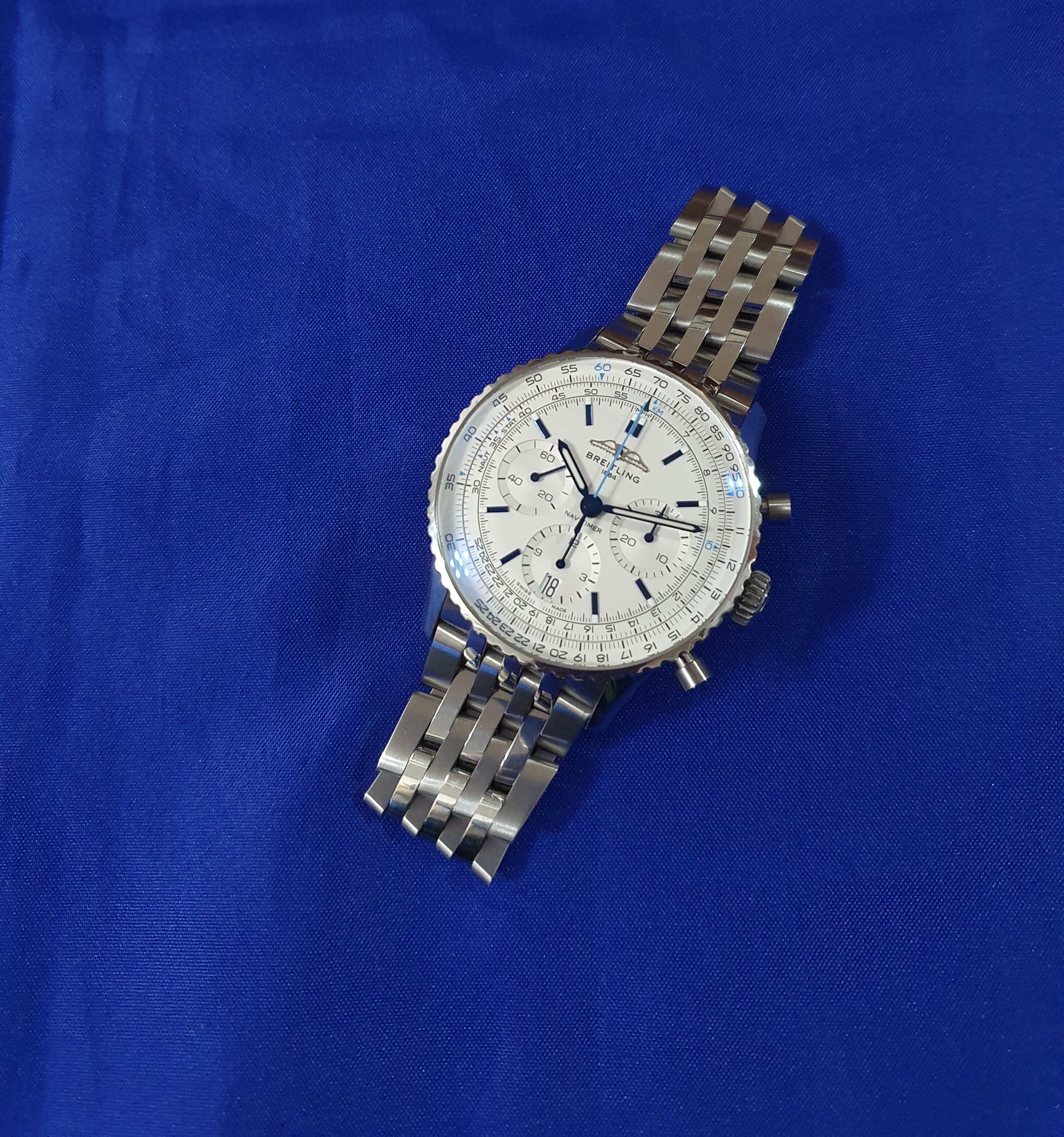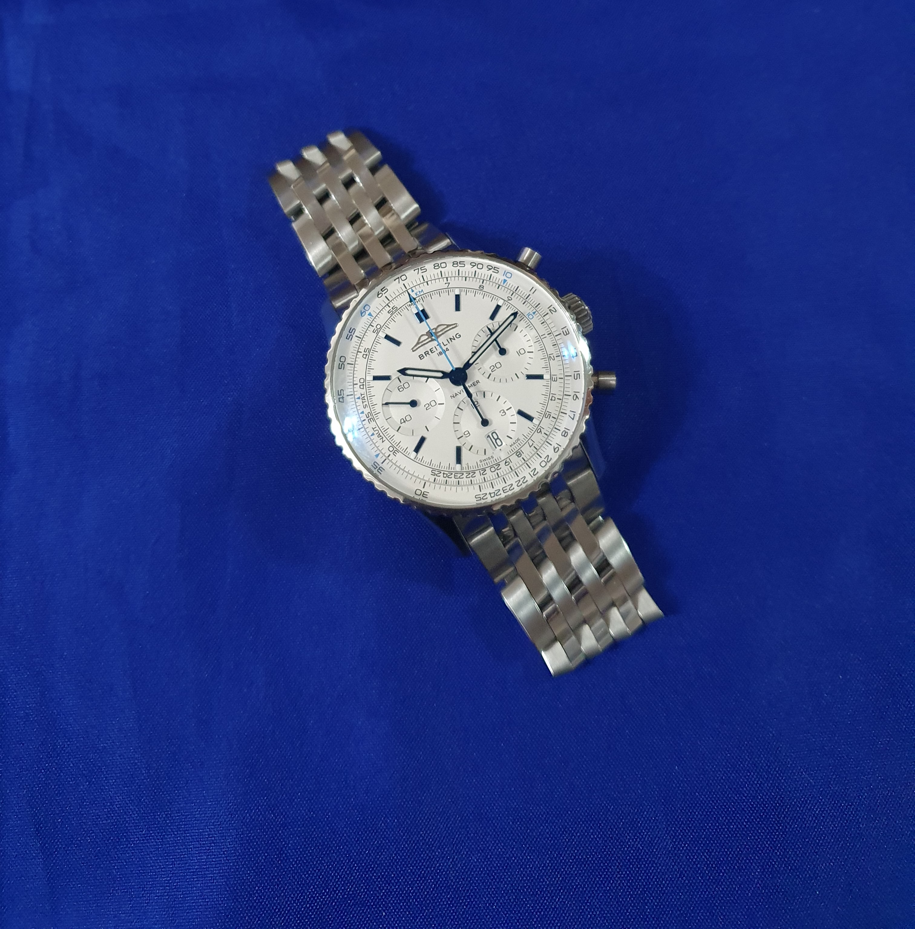 브랄 브라이틀링 내비타이머 B01 크로노그래프 41 스틸 실버 화이트 스틸,41mm,Navitimer B01 Chronograph 41,내비타이머 B01 크로노그래프 41,Navitimer,Breitling,브라이틀링,셀프 와인딩,Stainless steel,Folding clasp,Date,chronograph subdials,small seconds / applied baton indices,inner slide rule scale,Date, chronograph subdials, small seconds / applied baton indices, inner slide rule scale