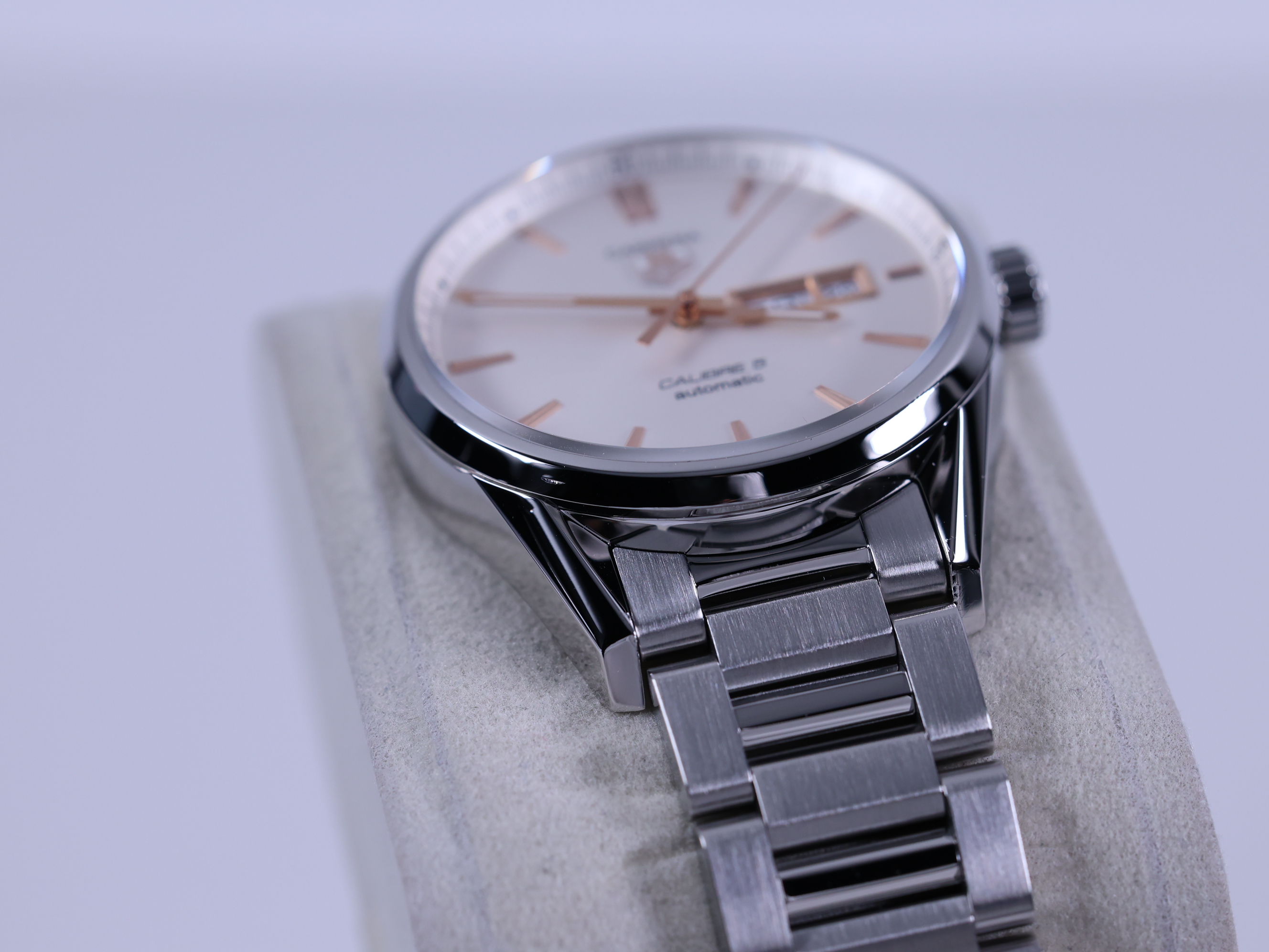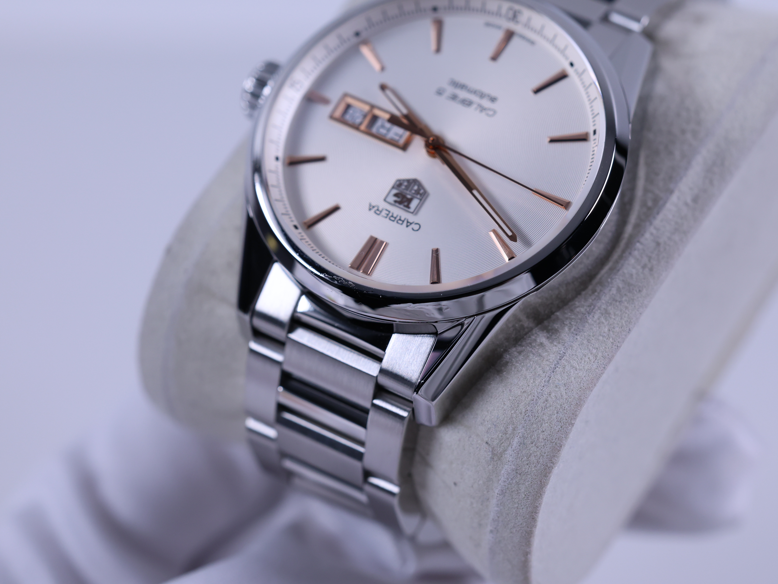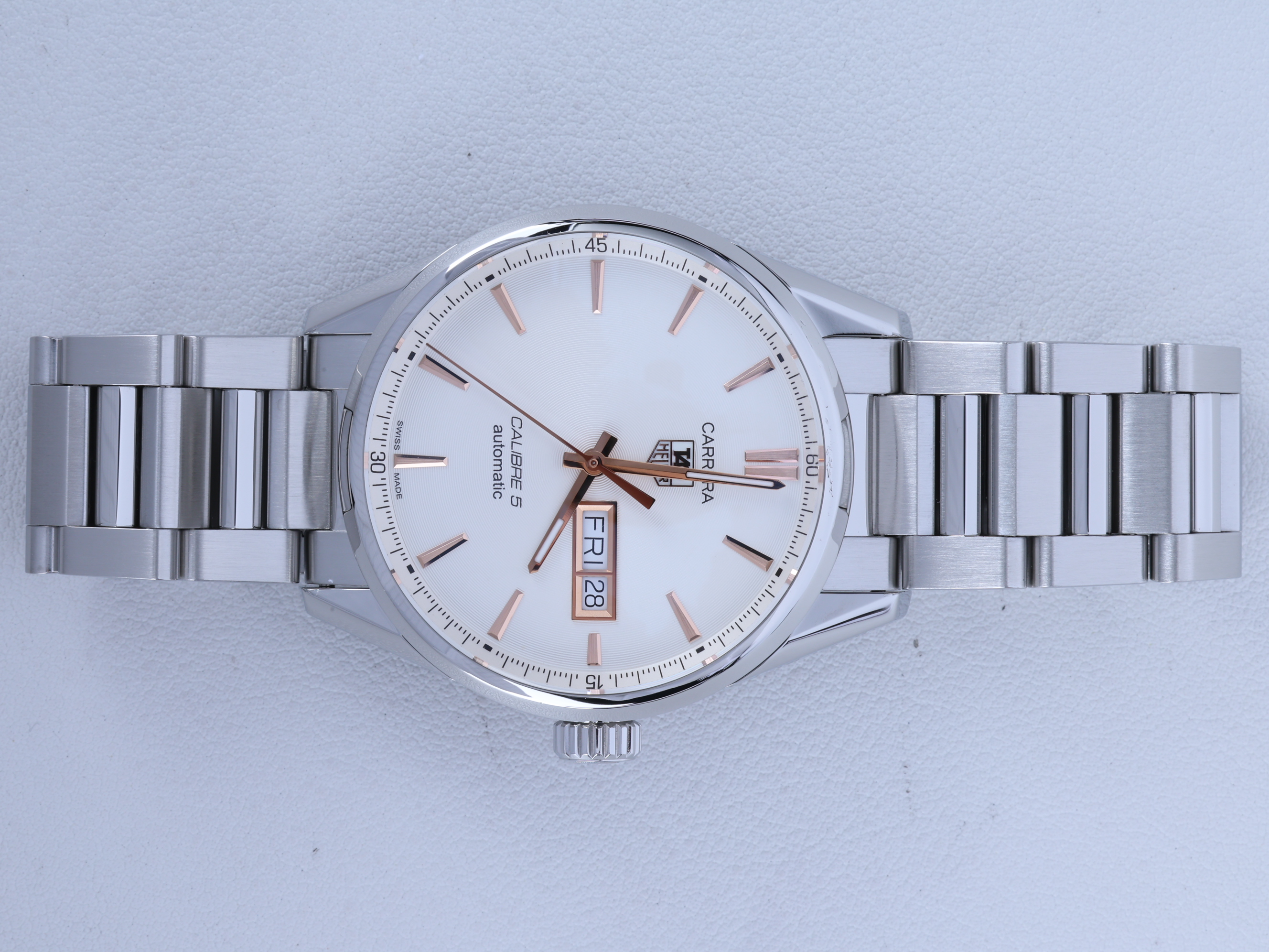 TAG Heuer Carrera Calibre 5 Day Date 41,TAG Heuer Carrera Day Date White,태그호이어 까레라 칼리버 5 데이데이트 41,태그호이어 까레라 데이데이트 스틸,태그호이어 까레라 데이데이트 41 오토매틱,태그호이어 까레라 스틸 데이데이트 브레이슬릿,태그호이어 까레라 스틸 데이데이트,태그호이어 까레라 데이데이트 화이트 실버,WAR201D.BA0723,화이트,사파이어 크리스탈,41mm,셀프 와인딩,Stainless steel,Push-button folding clasp,Day-date / applied rose gold plated baton indices,Hour + minute + seconds,Carrera Calibre 5 Day Date 41,까레라 칼리버 5 데이데이트 41,Carrera,TAG Heuer,태그 호이어