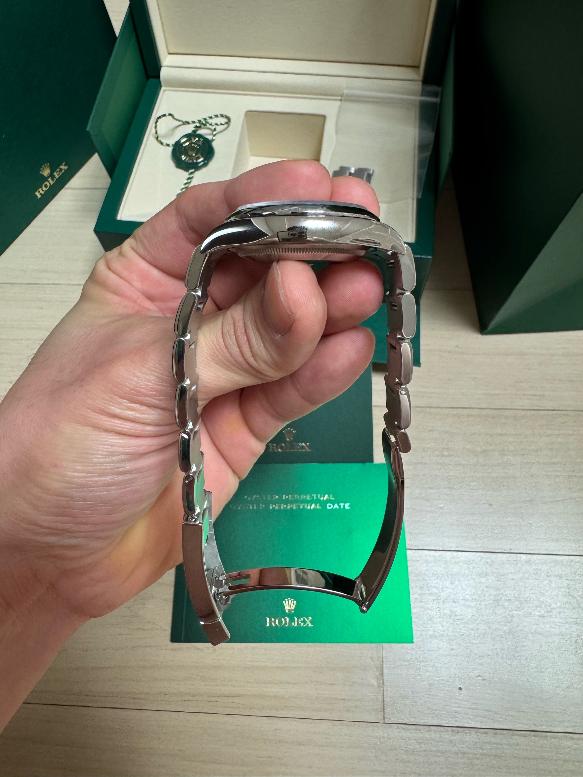 126000,Rolex Oyster Perpetual OP 36 pistachio green 36mm 126000,롤렉스 로렉스 오이스터 퍼페추얼 퍼페츄얼 오피 op 36 피스타치오 그린 36mm 126000,피스타치오,그린,초록,초록색,M126000-0011,스테인리스 스틸,오이스터 브레이슬릿,36mm,돔드,셀프 와인딩,Cal. 3230,Stainless steel,Folding clasp,Baton indices,Oyster Perpetual 36,오이스터 퍼페츄얼 36,Oyster Perpetual,Rolex,롤렉스,남성,예물,웨딩,.그린,바,폴딩 클라스프,약 20mm,원형,클래식,남녀공용