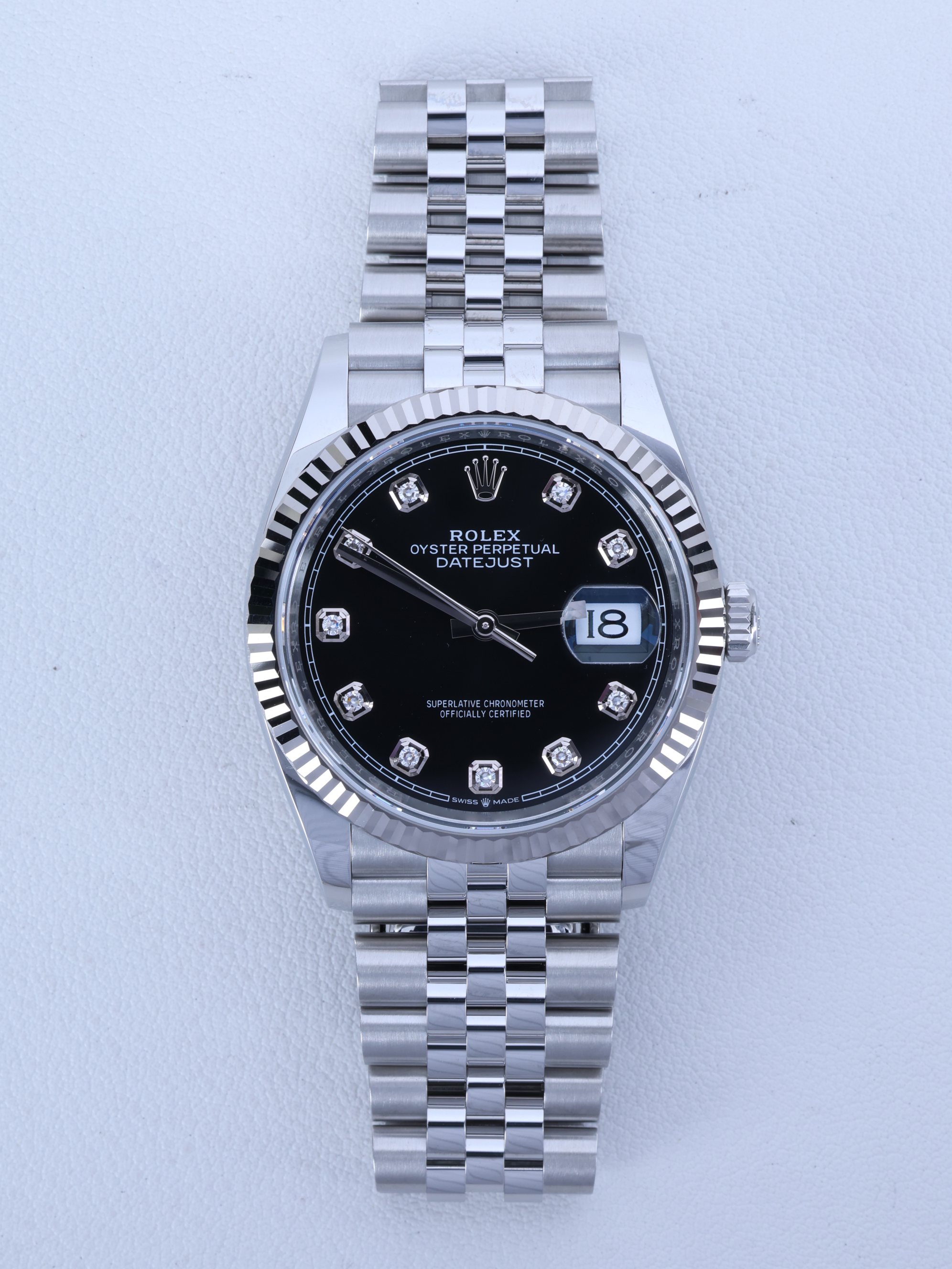 datejust36,126234,m126234-0027,브라이트 블랙,다이아몬드,스테인레스 스틸 + 화이트 골드,스테인레스 스틸,쥬빌리 브레이슬릿,사파이어 크리스탈,36mm,데이트저스트,데이저스트,데이트,화이트골드,화골,롤레조,콤비,검판,데잇저스트,데잇,예물시계 추천,다이아,다이아몬드 세팅,쥬빌리,어버이날 선물,40대 추천,단종,Rolex,스테인리스 스틸,화이트 골드,Switzerland,Stainless steel,Folding clasp,Date / diamond-set indices,Hour + minute + seconds,Datejust 36,데이저스트 36,Datejust,롤렉스,남성,예물,웨딩,.블랙,보석 세팅,폴딩 클라스프,약 20mm,원형,클래식,남녀공용