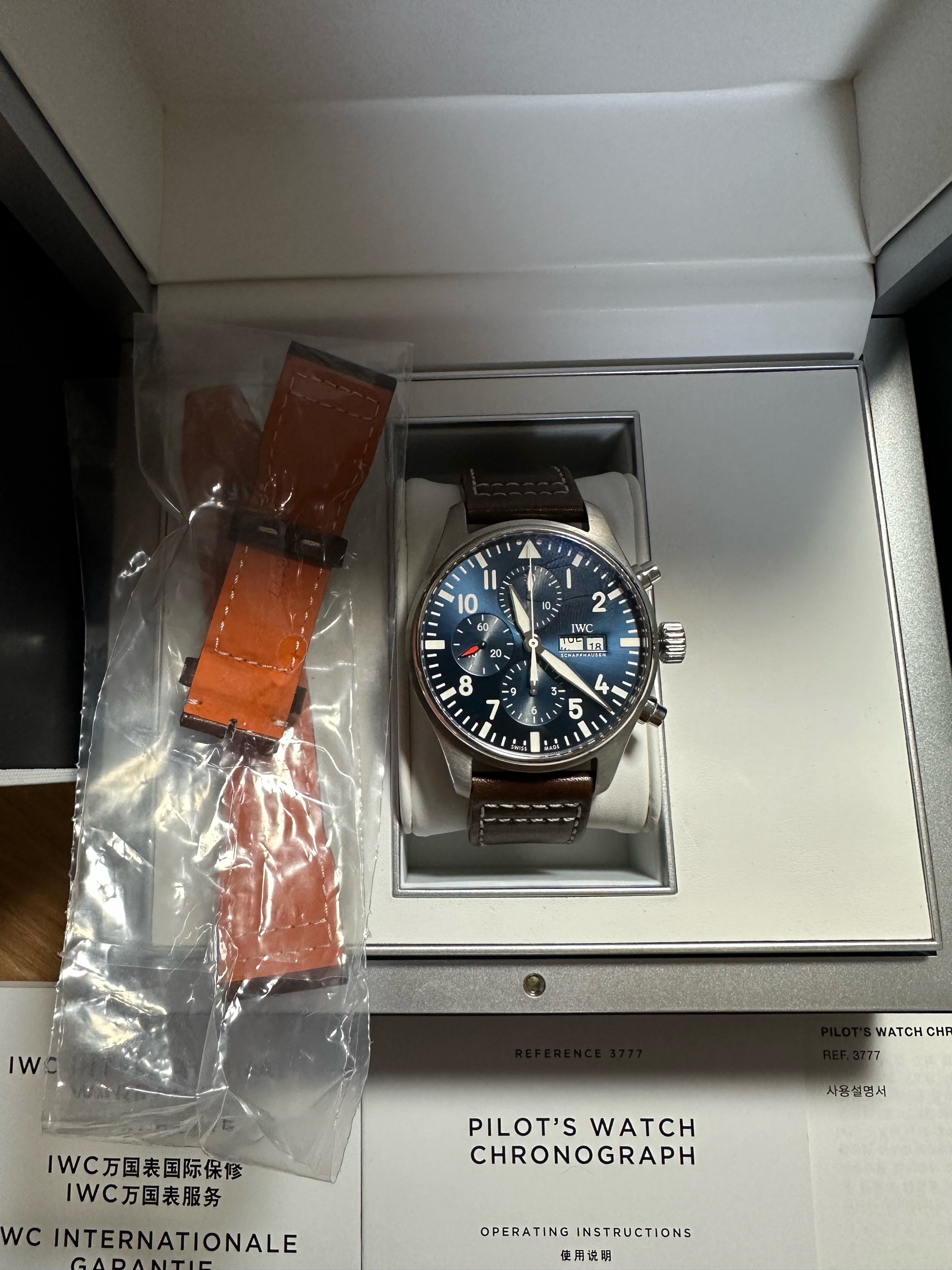 Big Pilot's Watch Edition “Le Petit Prince” IW377714,빅 파일럿 “어린 왕자” 에디션 IW377714,Pilot's Watch,IWC,IWC 어린왕자 IW377714,IWC 어린 왕자 IW377714,IWC 파일럿 워치 어린 왕자,IWC 파일럿 워치 어린왕자,IWC 파일럿 어린 왕자,IWC 파일럿 어린왕자,Big Pilot's Watch Edition “Le Petit Prince”,빅 파일럿 “어린 왕자” 에디션,블루,가죽 스트랩,43mm,셀프와인딩,셀프 와인딩,Switzerland,Stainless steel,Deployant folding clasp,Day-date,chronograph subdials,small seconds / arabic numerals,minute track,Hour + minute + central chronograph + counter (2) + small seconds,Deployant folding clasp with anchor buckle,Big Pilot's Watch Edition 'Le Petit Prince',빅 파일럿 '어린 왕자' 에디션,Pilot's Watches,가죽,스트랩,Pin buckle,Day-date, chronograph subdials, small seconds / arabic numerals, minute track