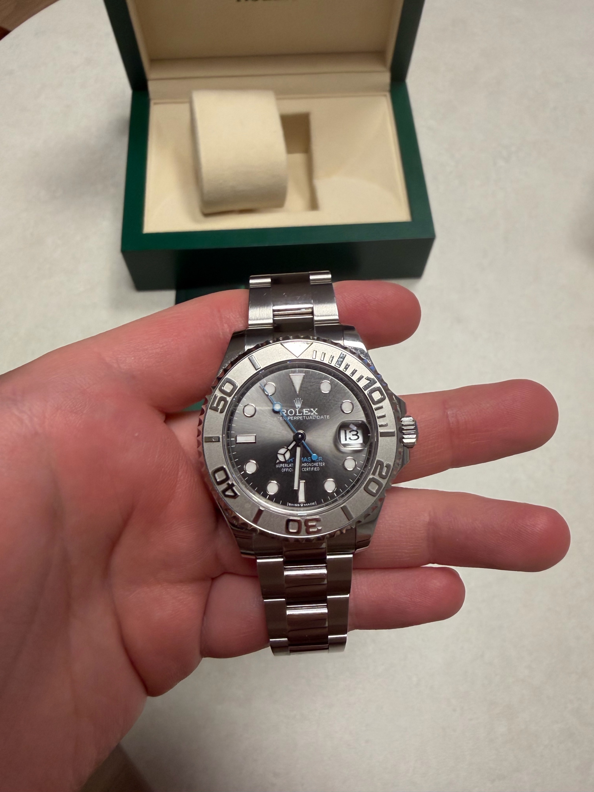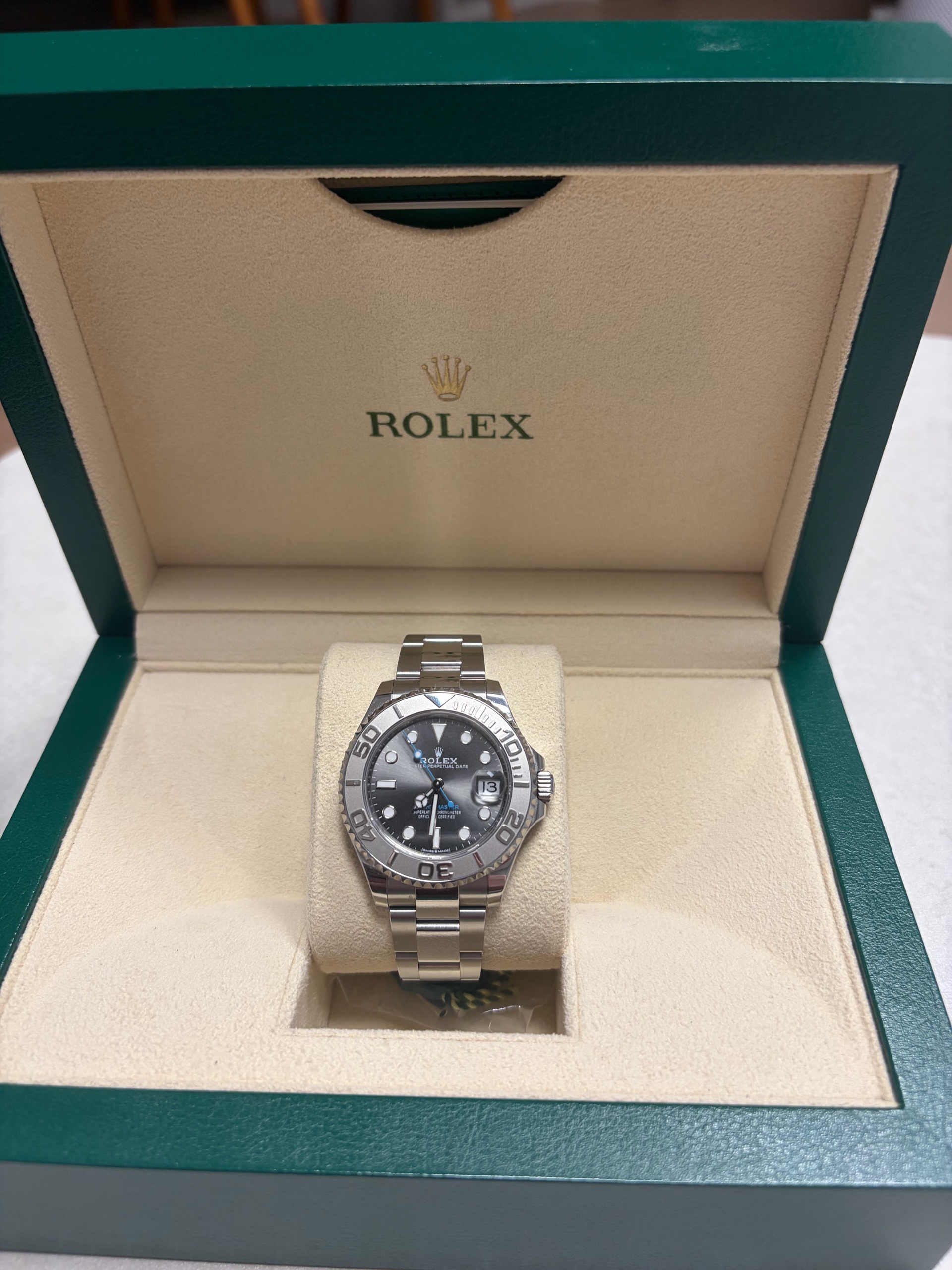 Yacht-Master37,M268622-0002,요마,요트마스터,Rolex슬레이트,스테인레스스틸+플레티넘,스테인레스스틸,오이스터브레이슬릿,사파이어크리스탈,37mm,11mm,약120g,100m,플레티넘,양방향회전베젤,셀프와인딩,Cal.2236,28,800진동,약55시간,슬레이트,스테인레스 스틸,플래티넘,오이스터 브레이슬릿,사파이어 크리스탈,Yacht-Master 37,요트마스터 37,Yacht-Master,Rolex,롤렉스,스테인리스 스틸,양방향 회전 베젤,Switzerland,Stainless steel,Folding clasp,Date / applied hour markers,Hour + minute + seconds,.그레이,도트,폴딩 클라스프,데이트,약 17mm,원형,툴워치,남녀공용