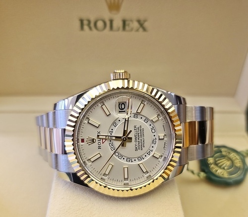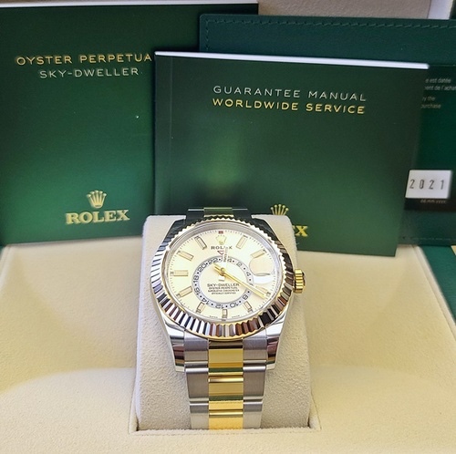 Sky-Dweller,M326933-0009,스카이드웰러,스드,옐로우골드,옐골,롤레조,콤비,오이스터브레이슬릿,인텐스화이트,스테인레스스틸+옐로우골드,사파이어크리스탈,42mm,Rolex,인텐스 화이트,스테인리스 스틸,옐로우 골드,스테인리스 스틸 + 옐로우 골드,오이스터 브레이슬릿,사파이어 크리스탈,Yellow gold,Folding clasp,Date,24-Hour subdial,calendar / baton indices,롤렉스,24-hour subdial,스테인리스 스틸, 옐로우 골드,Date, 24-hour subdial, calendar / baton indices