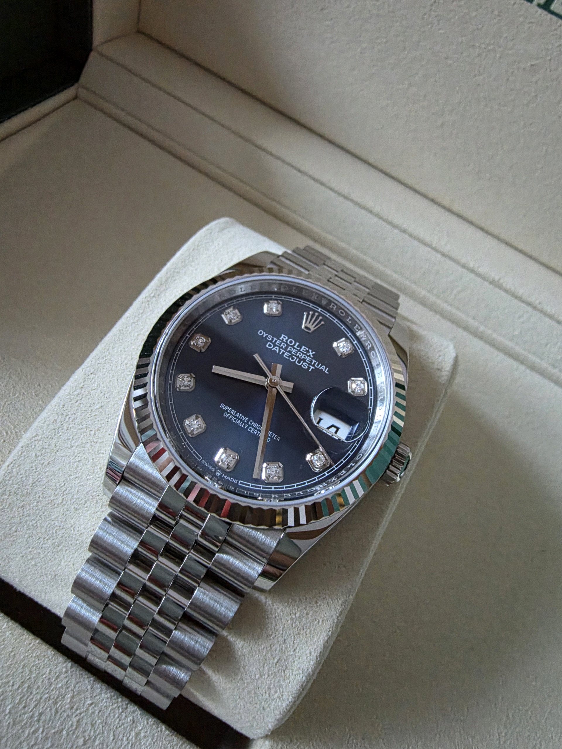 datejust36,126234,m126234-0037,브라이트 블루,다이아몬드,스테인레스 스틸 + 화이트 골드,스테인레스 스틸,쥬빌리 브레이슬릿,사파이어 크리스탈,36mm,데이트저스트,데이저스트,데이트,화이트골드,화골,롤레조,콤비,청판,데잇저스트,데잇,예물시계 추천,다이아,다이아몬드 세팅,쥬빌리,어버이날 선물,40대 추천,단종,Rolex,스테인리스 스틸,화이트 골드,Switzerland,Stainless steel,Folding clasp,Date / diamond-set indices,Hour + minute + seconds,Datejust 36,데이저스트 36,Datejust,롤렉스,남성,예물,웨딩,.블루,보석 세팅,폴딩 클라스프,약 20mm,원형,클래식,남녀공용