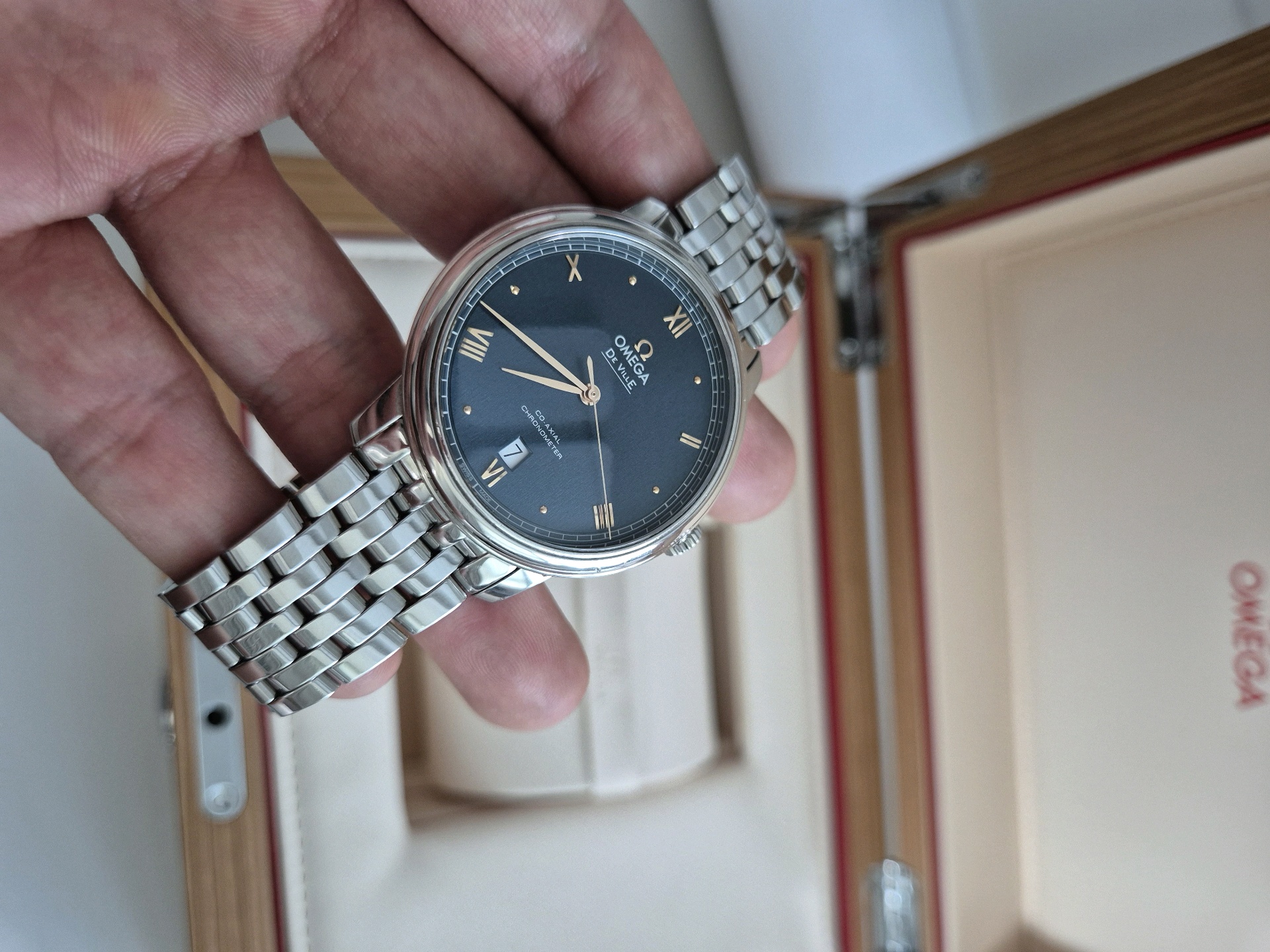 Rolex De Ville Prestige 424.10.40.20.03.004,Rolex De Ville Prestige Blue Steel 39.5mm,Rolex De Ville Prestige Steel Blue Roman Numerals,De Ville Prestige,드 빌 프레스티지,De Ville,Omega,오메가,오메가 드빌 프레스티지 스틸 블루 39.5,오메가 드빌 프레스티지 블루 스틸 39.5,오메가 드빌 프레스티지 블루 로만,블루,사파이어 크리스탈,스테인리스 스틸,셀프와인딩,셀프 와인딩,Stainless steel,Folding clasp,Date / applied roman numeral & cabochon indices,Hour + minute + seconds,.블루,로만,폴딩 클라스프,데이트,20 mm,원형,클래식,남성용