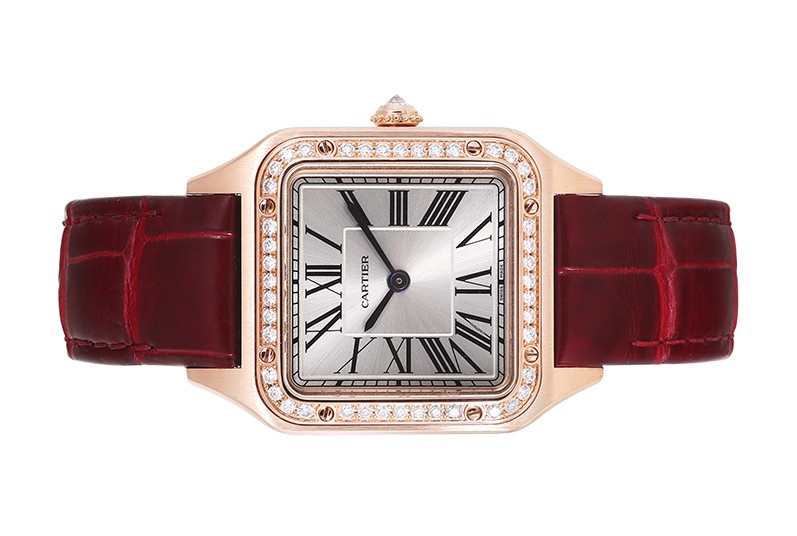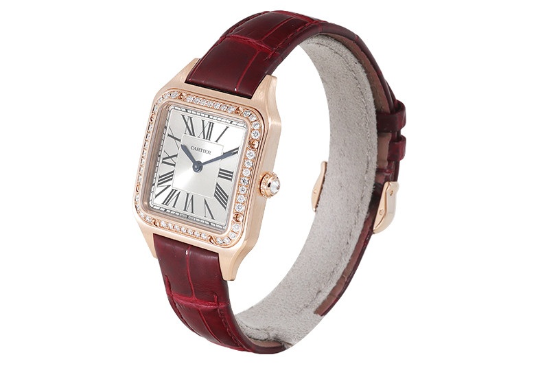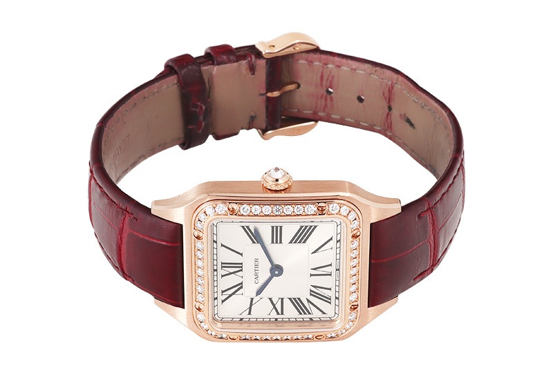 Cartier Santos Dumont SM WJSA0017,Cartier Santos Dumont Small Rose Gold,Cartier Santos Dumont Rose Gold Small,까르띠에 산토스 뒤몽 SM 로즈 골드,까르띠에 산토스 뒤몽 로즈 골드 다이아 베젤,까르띠에 산토스 뒤몽 로골 다이아 베젤,까르띠에 산토스 뒤몽 다이아 베젤 로즈 골드,까르띠에 산토스 뒤몽 로즈골드 다이아 베젤,까르띠에 산토스 뒤몽 스몰,가죽 스트랩,사파이어 크리스탈,Santos Dumont SM,산토스 뒤몽 SM,Santos de Cartier,Cartier,까르띠에,로만,Switzerland,Rose gold + spinel,Pin buckle,Roman numeral indices,Hour + minute,로즈 골드,.실버,핀 버클,직사각형,드레스,클래식,여성용,스트랩