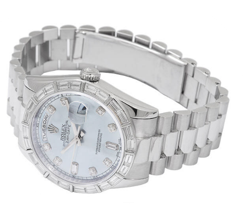롤렉스 로렉스 데이-데이트 데이데이트 36 118366,118366-IBLDIAPRES,118366,아이스 블루,플래티넘,프레지던트 브레이슬릿,36mm,다이아몬드 세팅,셀프 와인딩,Cal. 3155,Switzerland,Platinum,Hidden folding clasp,Day,date / diamond-set indices,Day-Date 36,데이-데이트 36,Day-Date,Rolex,롤렉스,Day, date / diamond-set indices
