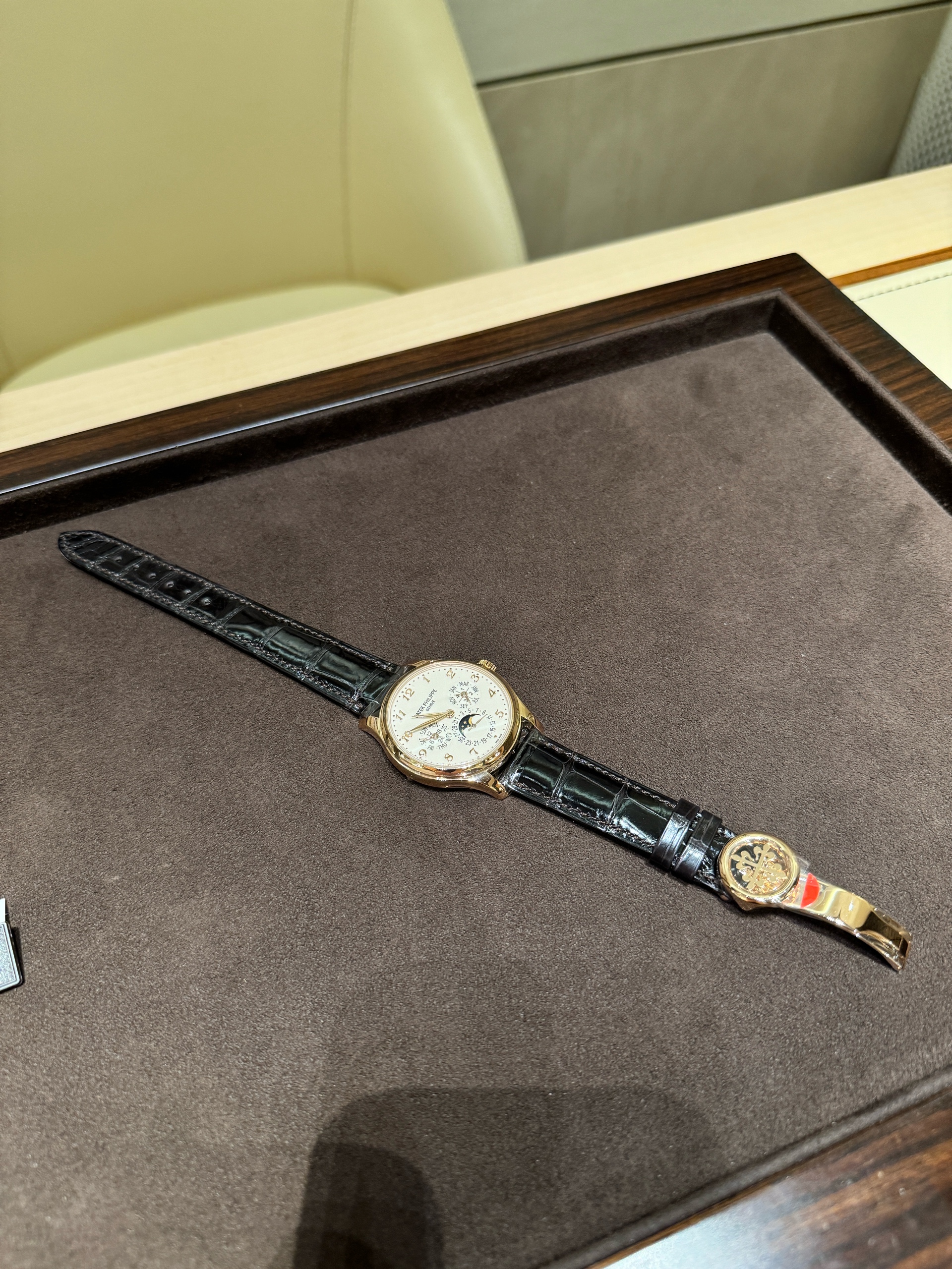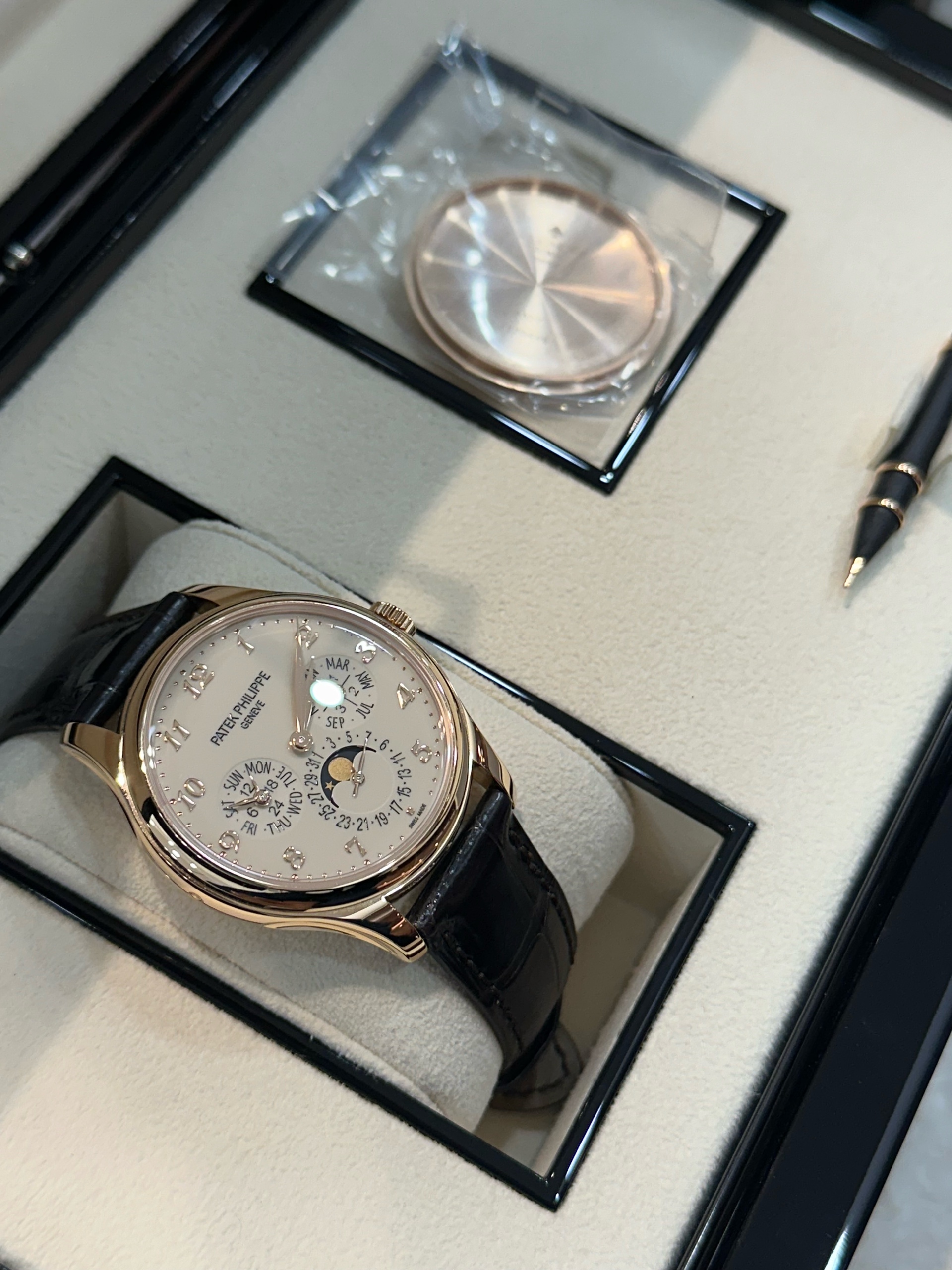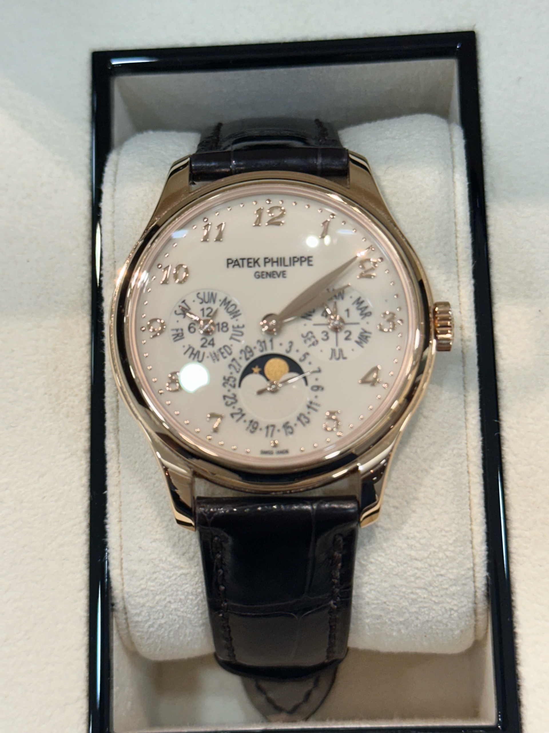 5327R-001,PP 파텍필립 파텍 필립 그랜드 그랑 컴플리케이션 퍼페추얼 퍼페츄얼 캘린더 PPC QP 5327R-001 5327R 39 로즈 골드 로즈골드 5327R-001,Grand Complications Perpetual Calendar,그랜드 컴플리케이션 퍼페추얼 캘린더,Grand Complications,Patek Philippe,파텍필립,로즈 골드,39mm,가죽,스트랩,셀프 와인딩,Rose gold,Folding clasp,Month & leap year,date & moonphase,day & 24-hour / applied arabic numeral indices,Month & leap year, date & moonphase, day & 24-hour / applied arabic numeral indices