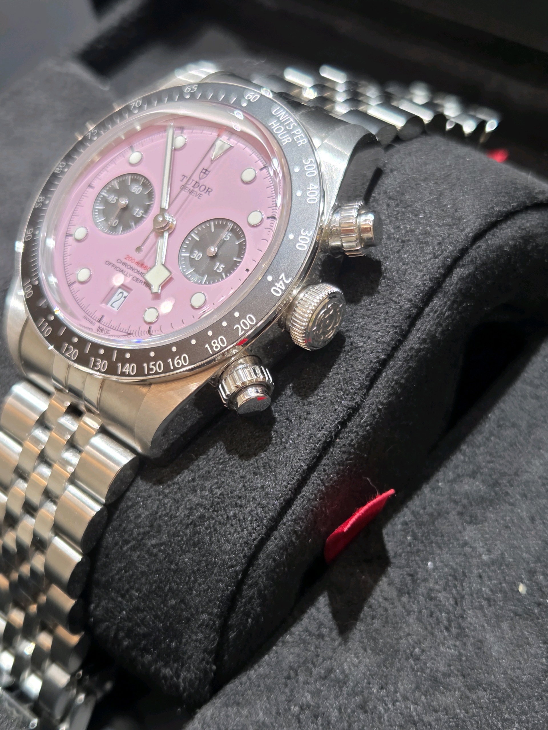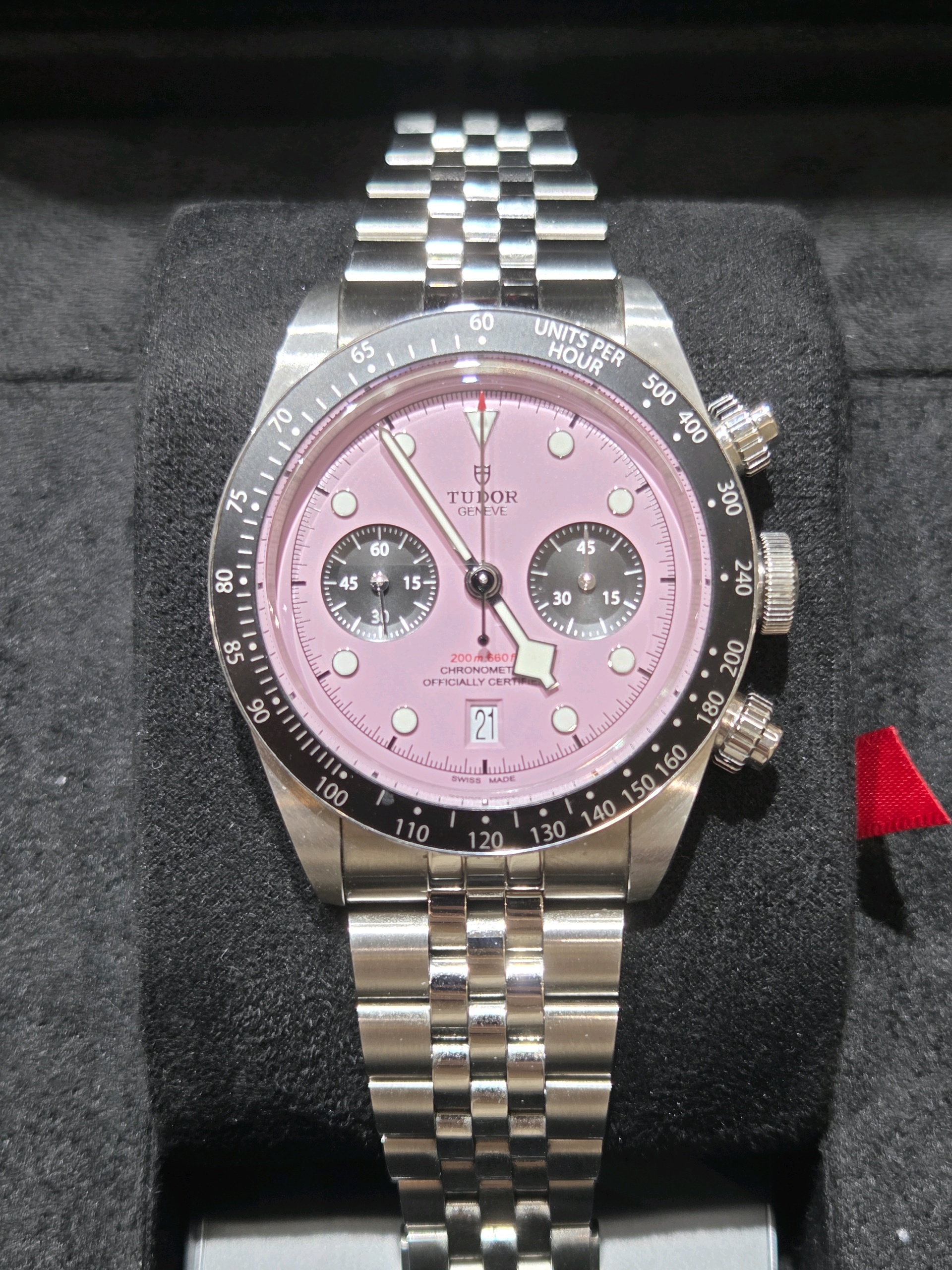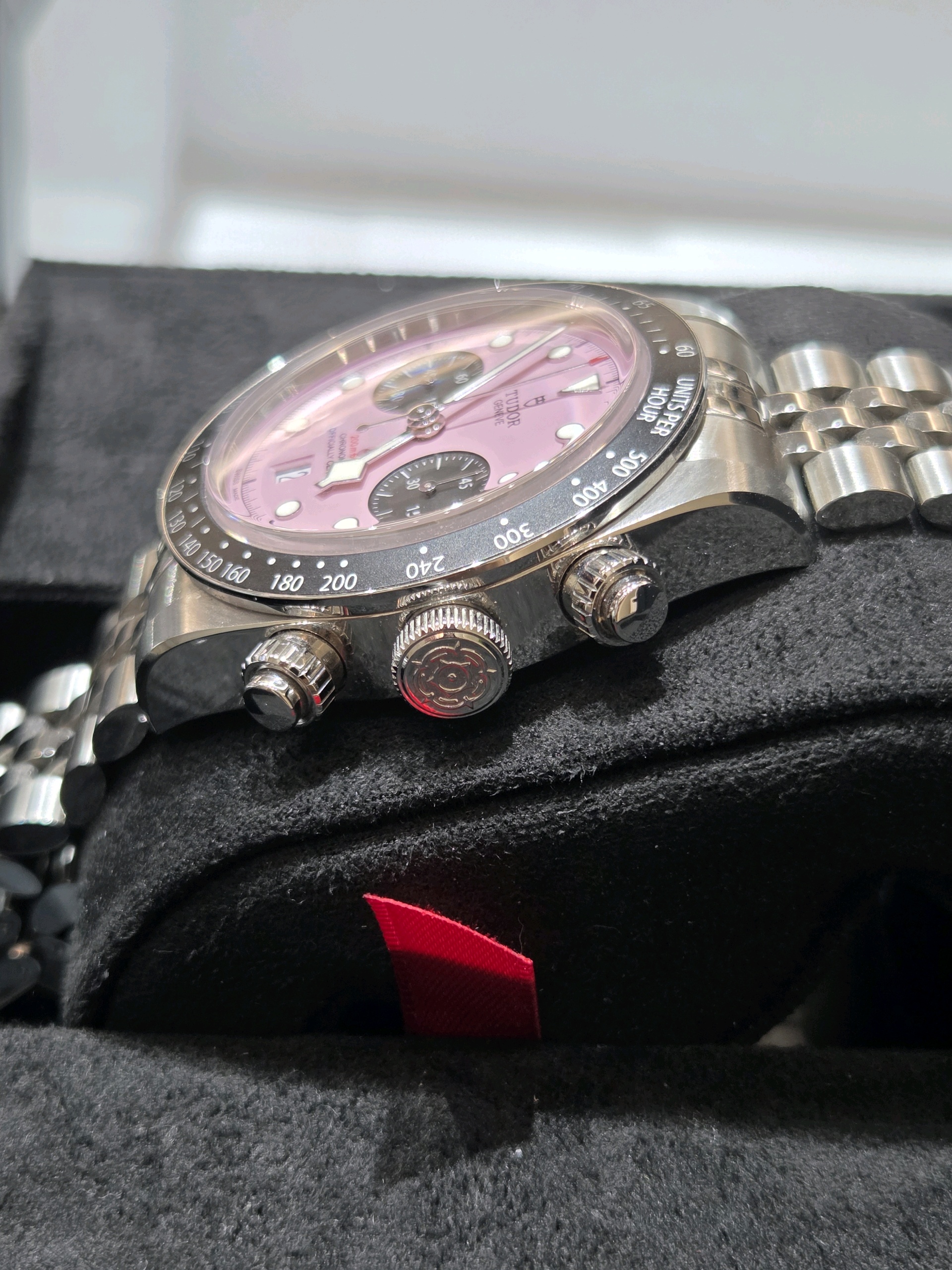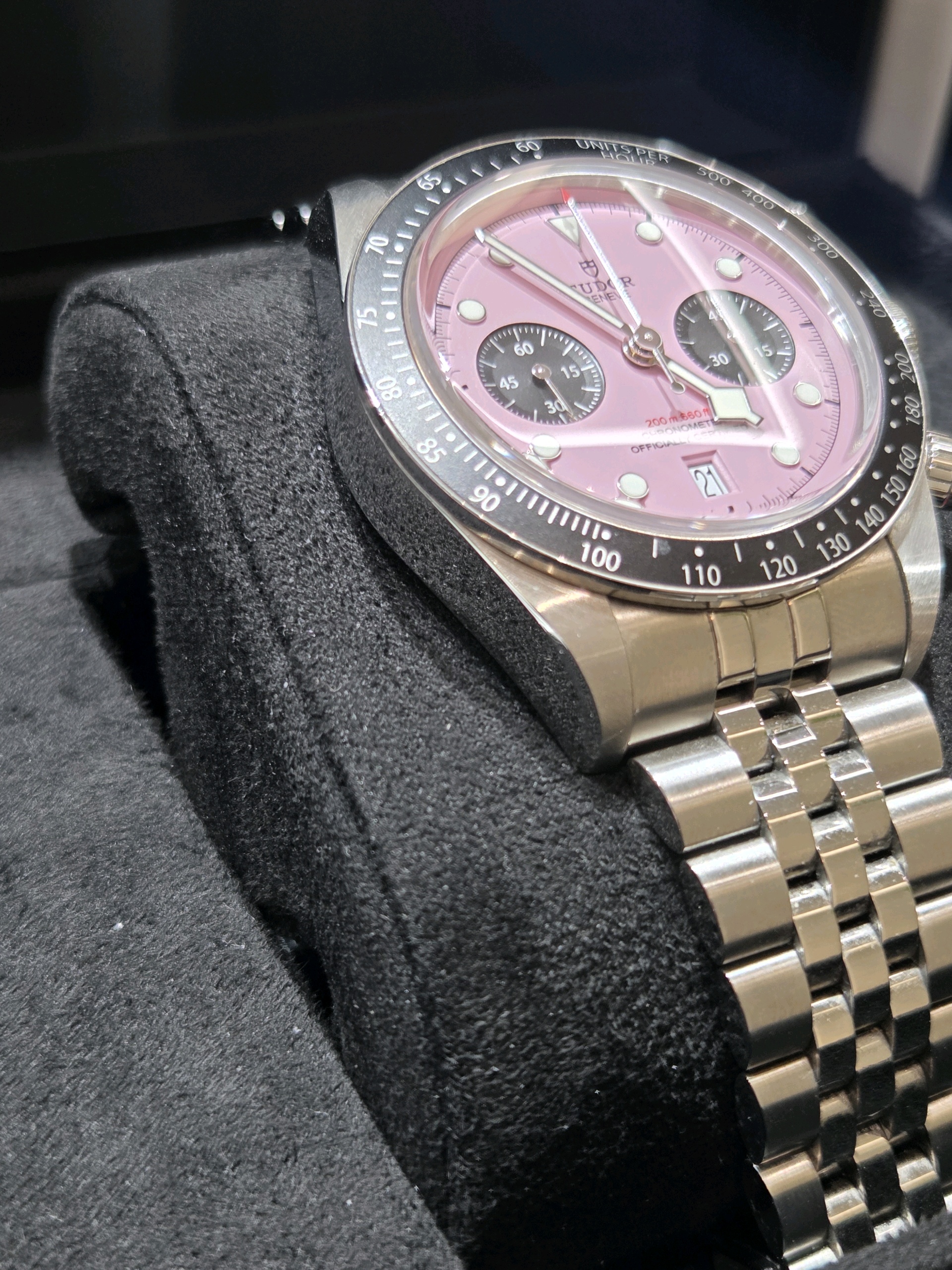 M79360N-0019,Black Bay Chrono 79360N,Tudor Black Bay Chrono Chronograph Pink Steel,튜더 블랙 베이 핑크 크로노 크로노그래프 핑크 스틸 핑크 79360N,핑크,사파이어 크리스탈,41mm,셀프와인딩,Stainless steel,Folding clasp,Date,chronograph subdial,small seconds / applied hour markers,Black Bay Chrono,블랙 베이 크로노,Tudor,튜더,셀프 와인딩,스테인리스 스틸,Date, chronograph subdial, small seconds / applied hour markers