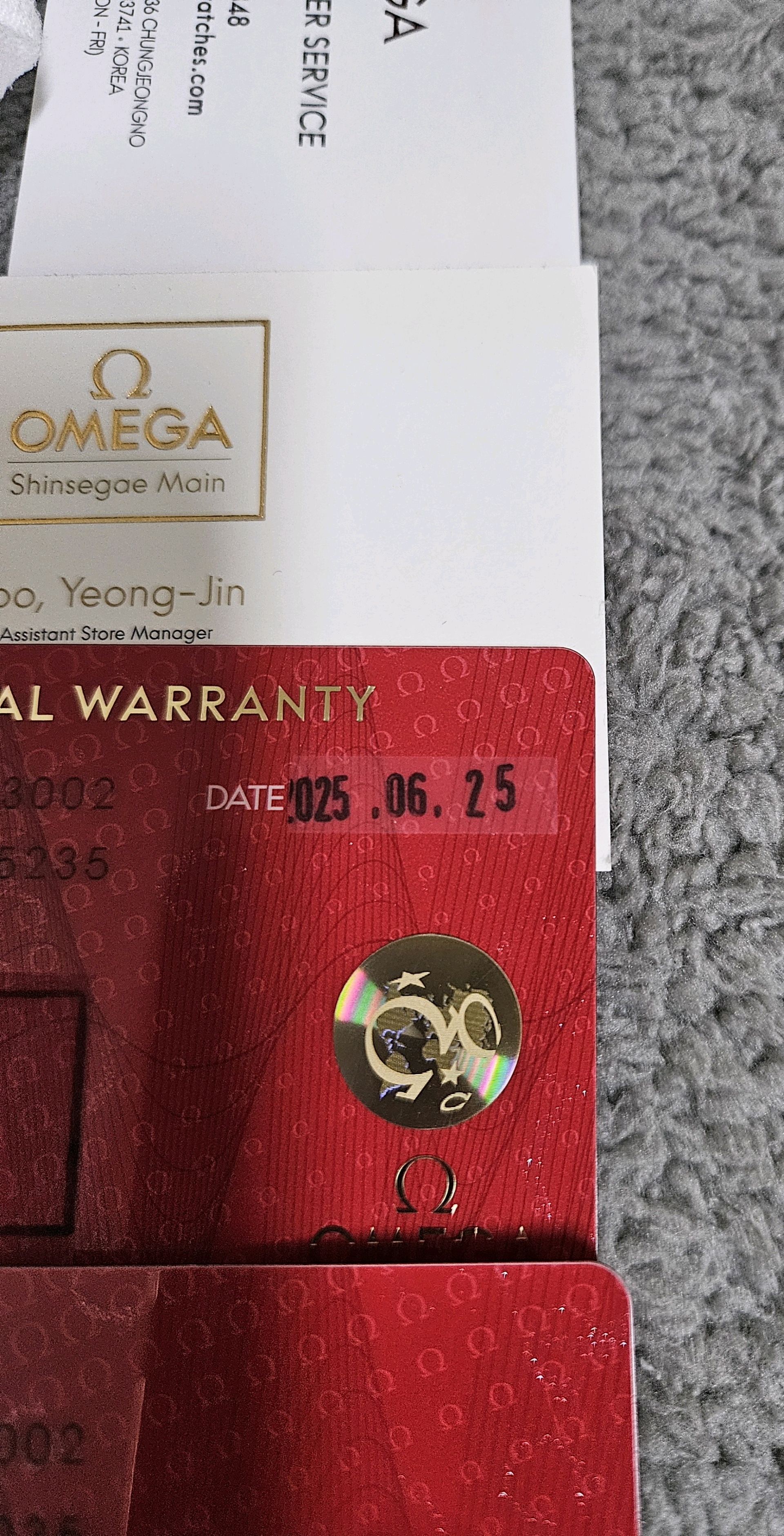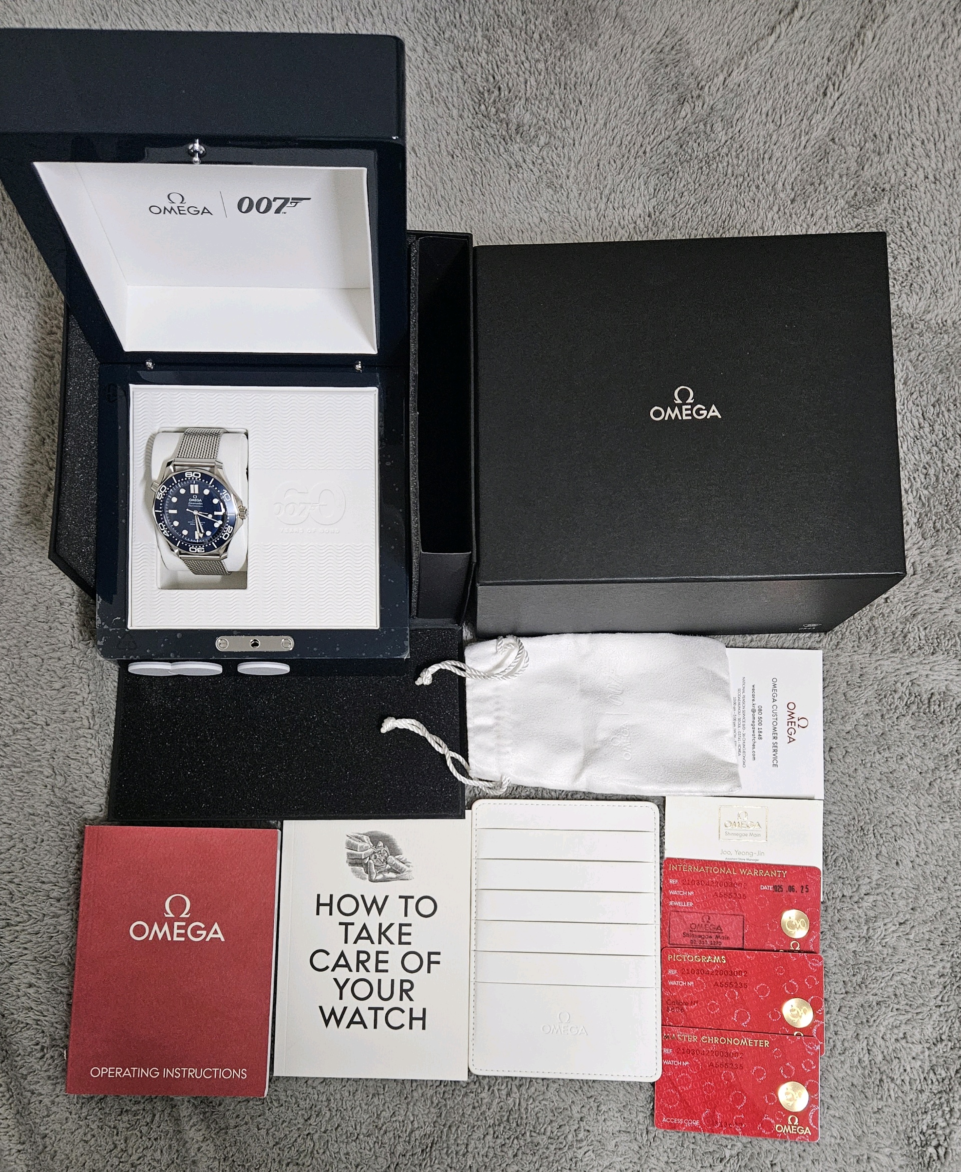 오메가 정식 보증서카드등 전체부속품있음.