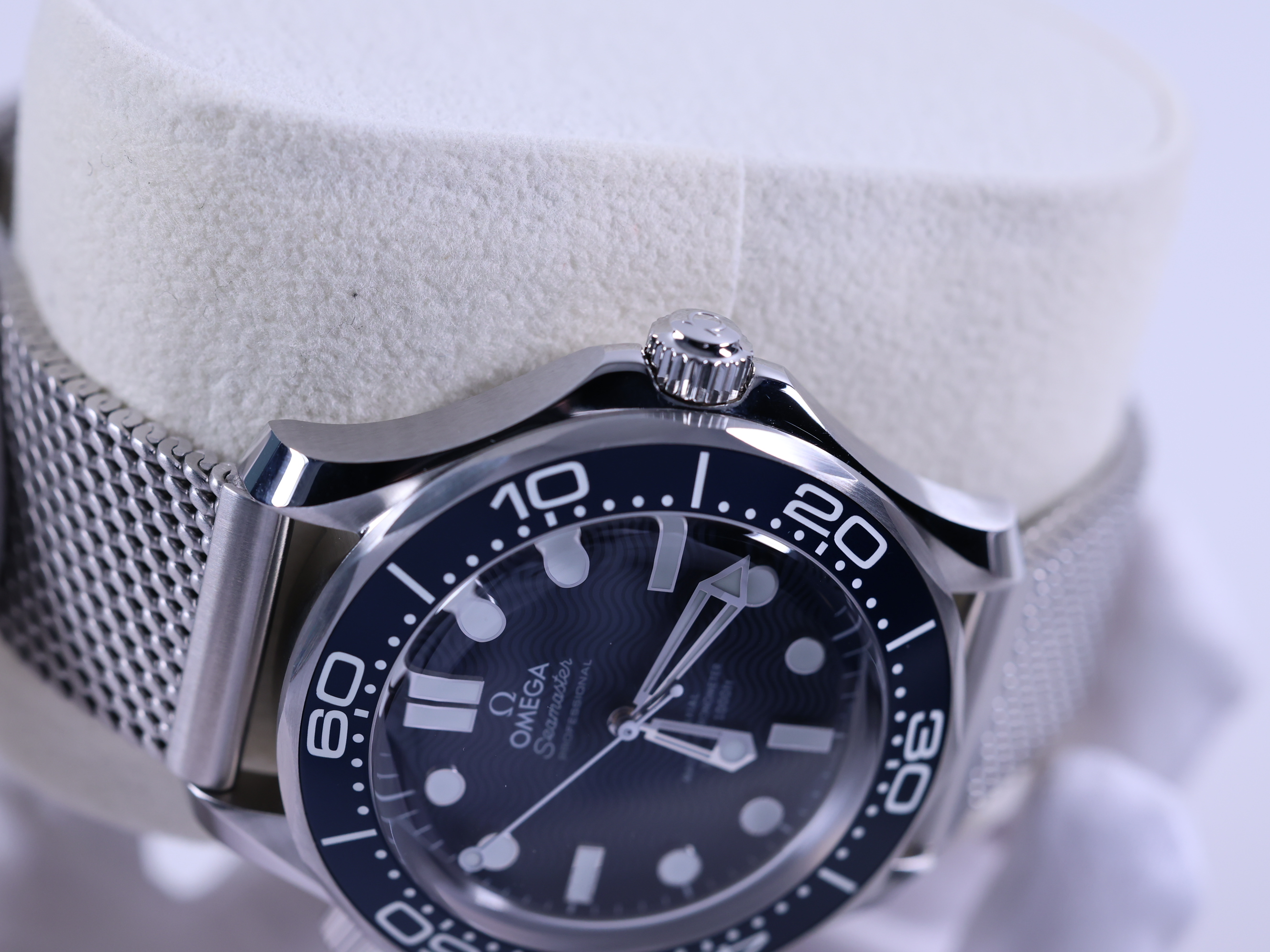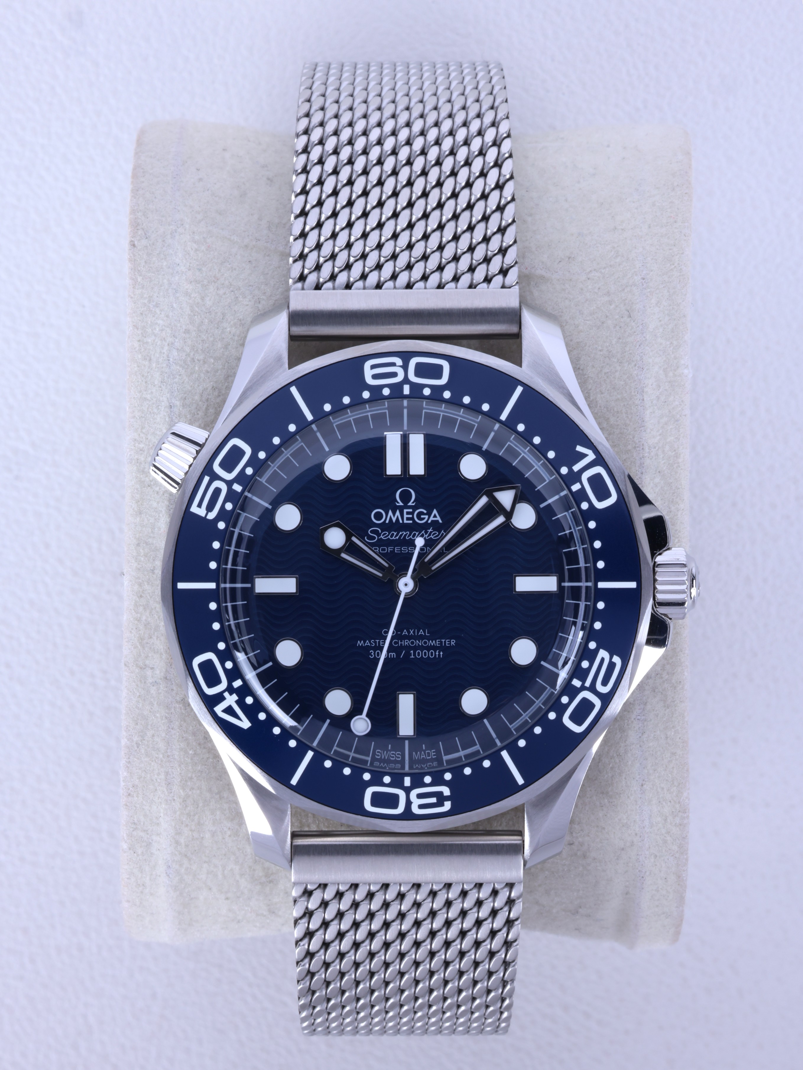 Diver300M,210.30.42.20.03.002,씨마스터,씨마,다이버,다이버300,300,오메가,제임스 본드,James Bond,시스루백,물결,Omega블루,스테인레스스틸,사파이어크리스탈,42mm,14.3mm,약156g,300m,세라믹,역회전방지베젤,셀프와인딩,Cal.8806,25,200진동,약55시간,SeaMaster,블루,스테인레스 스틸,메쉬형,메쉬,폴딩 클래스프,사파이어 크리스탈,Diver 300M,Seamaster,Omega,다이버 300M,오메가 SMP,오메가 씨마스터 프로페셔널,Seamaster Diver 300M 007 60th Anniversary,스테인리스 스틸,Switzerland,Stainless steel,Folding clasp,Applied hour markers,Hour + minute + seconds,.블루,도트,패턴,폴딩 클라스프,투명 케이스백,20 mm,원형,남성용,Applied dotted & baton indices