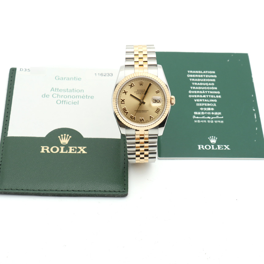 롤렉스 116233 데이저스트 36 콤비 남자 시계 샴페인 골드 로만 2006년 보증서