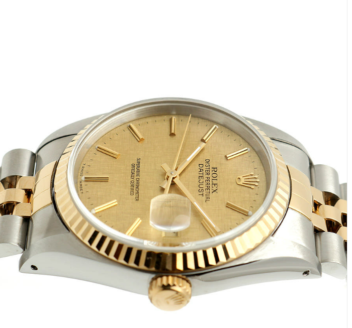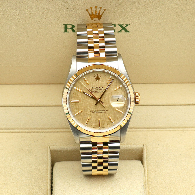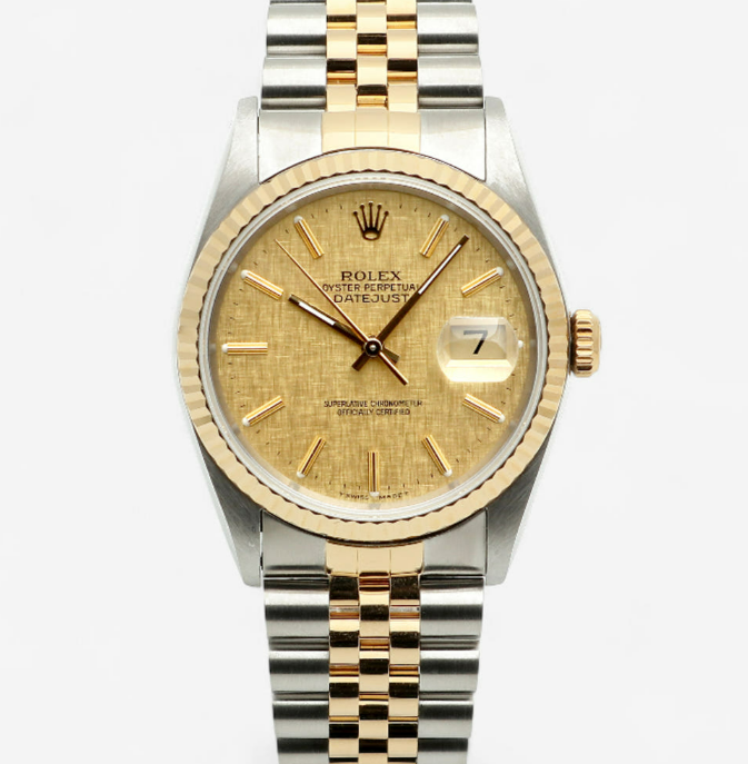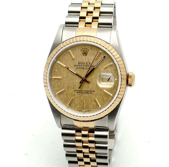 16233-CHLINLUMJUB2,로렉스 롤렉스 데이저스트 데이트저스트 36 16233 샴페인 보카시 린넨 리넨 다이얼 플루티드 쥬빌리 스틸 옐로우 골드 스틸 투톤 16233,Rolex Datejust 36 16233 champagned linen dial fluted jubilee steel yellow gold steel two tone 16233,yellow gold,샴페인,린넨 모티프,스테인리스 스틸,옐로우 골드,쥬빌리 브레이슬릿,36mm,Cal. 3135,Yellow gold,Folding clasp,Date / baton indices,Datejust 36,데이트저스트 36,Datejust,Rolex,롤렉스,스테인리스 스틸, 옐로우 골드