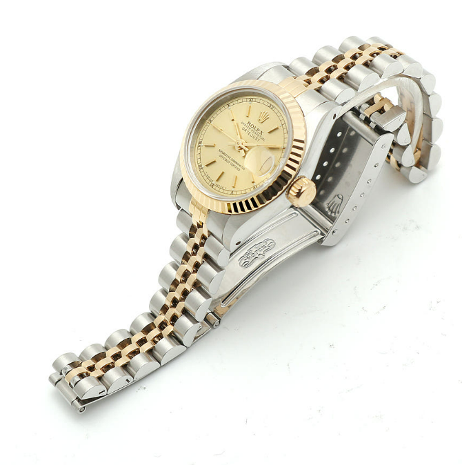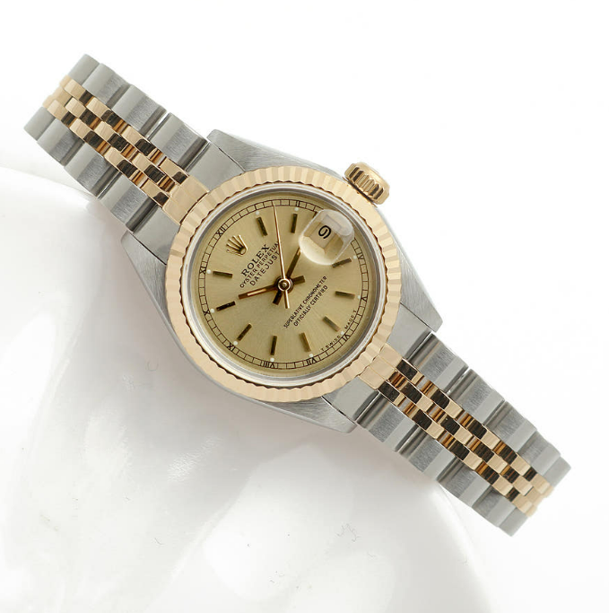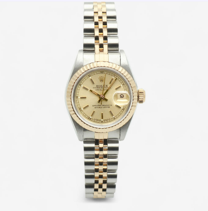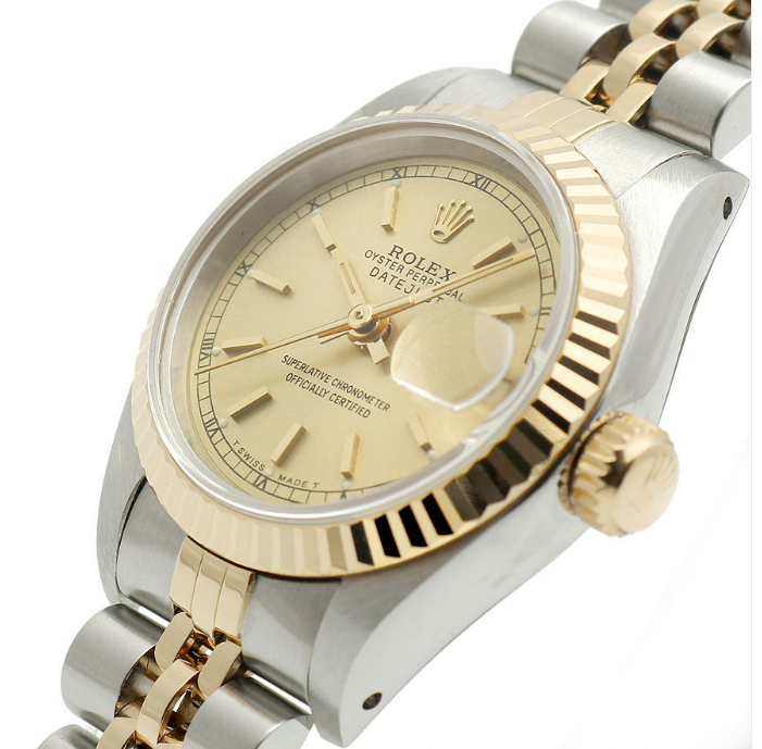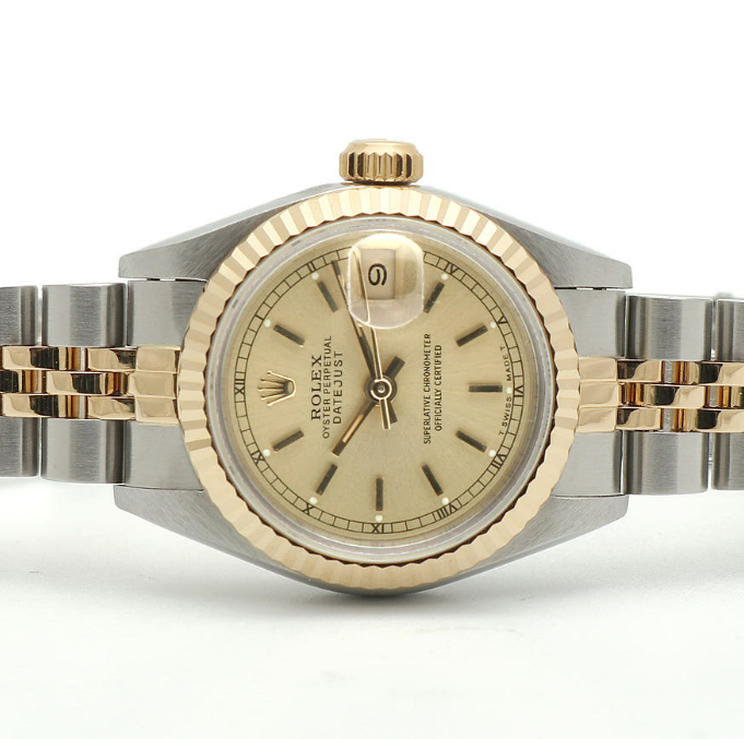 롤렉스 데이저스트 26 여자 콤비 시계 69173 샴페인 골드 바톤 인덱스 1991년 탄생