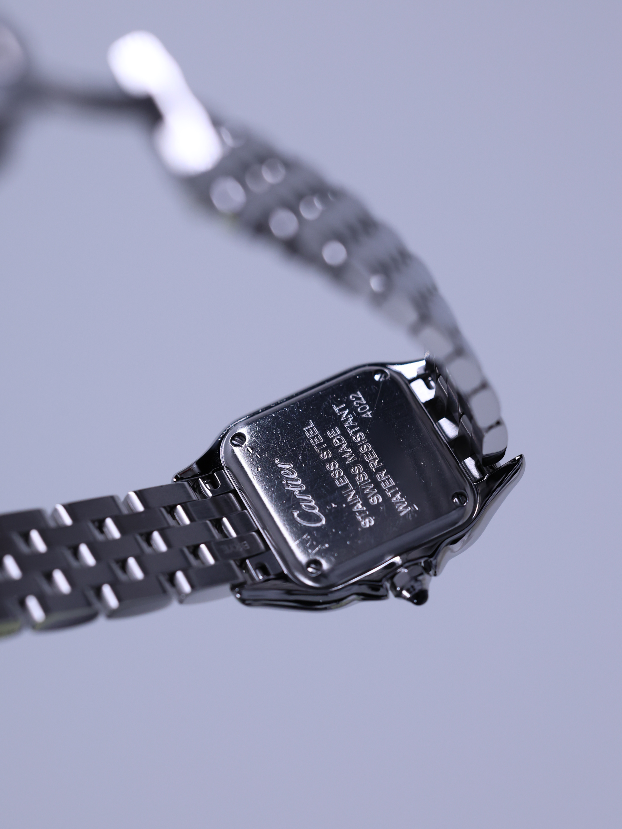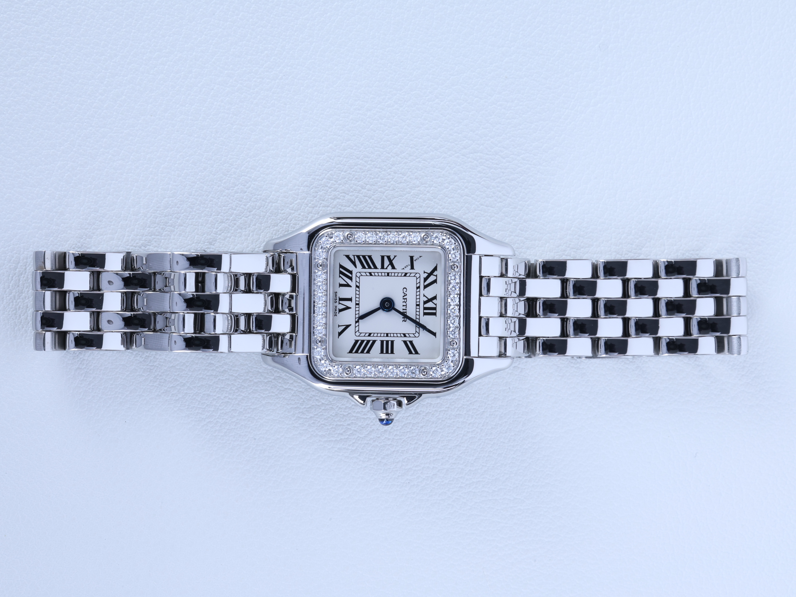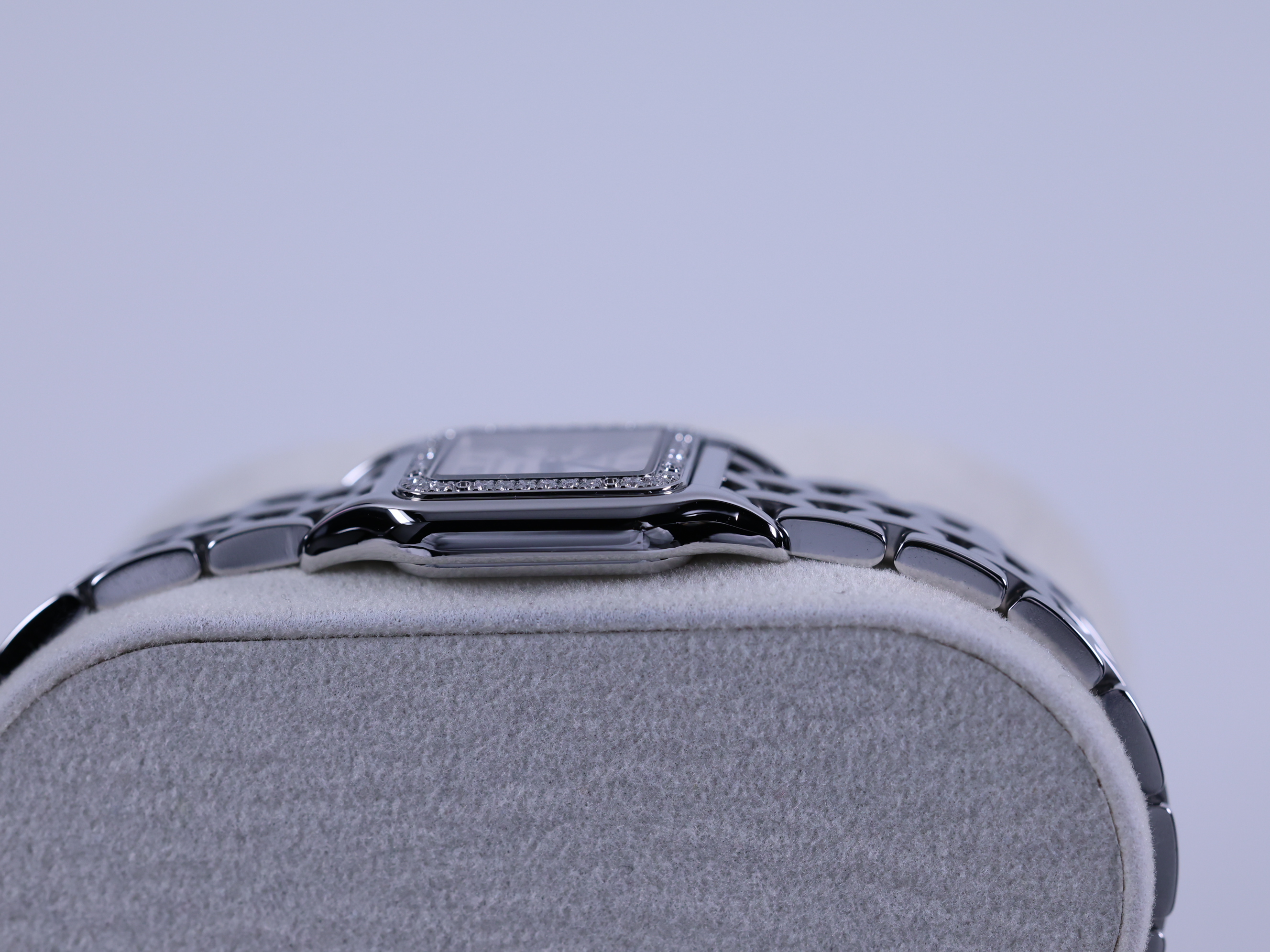 W4PN0007,Cartier Panthere small sm steel diamonds quartz,까르띠에 카르티에 팬더 팬서 sm 스몰 스틸 다이아 다이아몬드 쿼츠,실버,스테인리스 스틸,브레이슬릿,다이아몬드 세팅,쿼츠,Stainless steel,Folding clasp,Roman numeral indices,Panthere SM,팬더 SM,Panthere de Cartier,Cartier,까르띠에