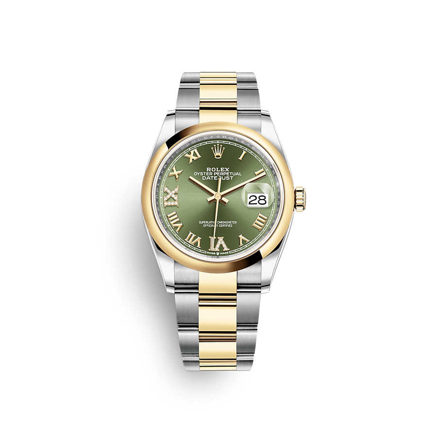 36mm, 올리브 그린/로만, VI&IX 다이아몬드, 오이스터