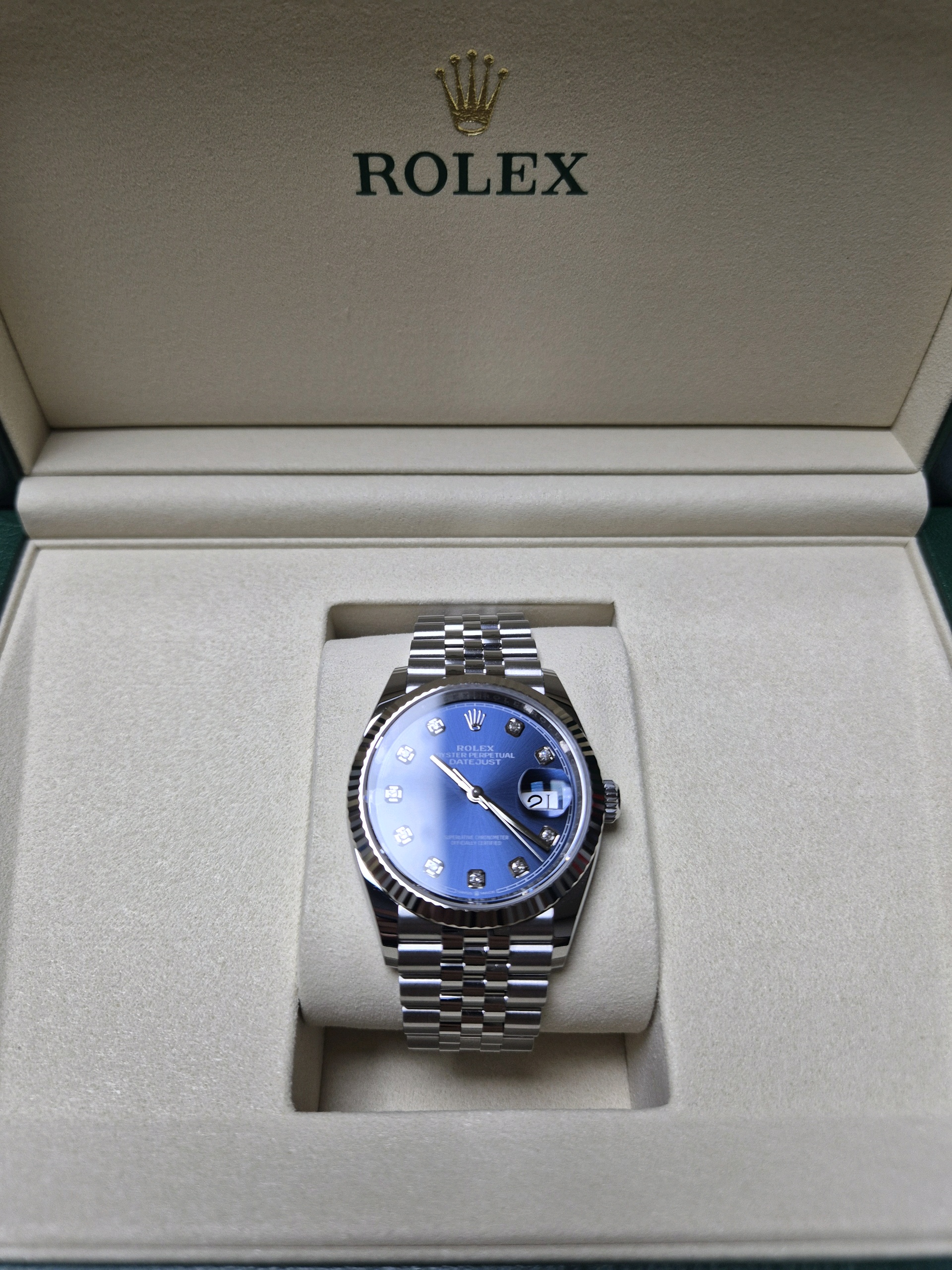 datejust36,126234,m126234-0037,브라이트 블루,다이아몬드,스테인레스 스틸 + 화이트 골드,스테인레스 스틸,쥬빌리 브레이슬릿,사파이어 크리스탈,36mm,데이트저스트,데이저스트,데이트,화이트골드,화골,롤레조,콤비,청판,데잇저스트,데잇,예물시계 추천,다이아,다이아몬드 세팅,쥬빌리,어버이날 선물,40대 추천,단종,Rolex,스테인리스 스틸,화이트 골드,Switzerland,Stainless steel,Folding clasp,Date / diamond-set indices,Hour + minute + seconds,Datejust 36,데이저스트 36,Datejust,롤렉스,남성,예물,웨딩,.블루,보석 세팅,폴딩 클라스프,약 20mm,원형,클래식,남녀공용