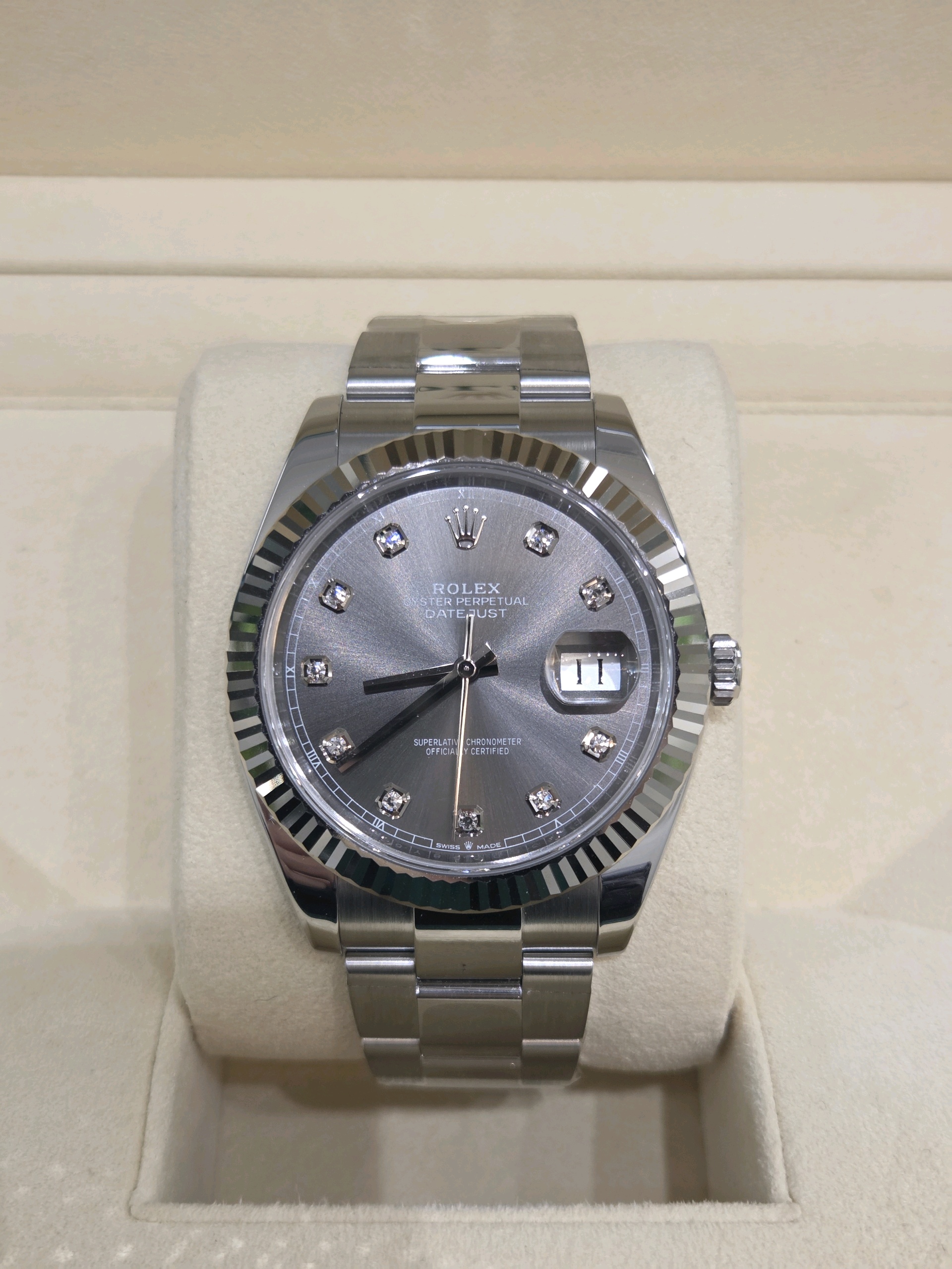 datejust41,126334,m126334-0005,슬레이트,다이아몬드,스테인레스 스틸 + 화이트 골드,스테인레스 스틸,오이스터 브레이슬릿,사파이어 크리스탈,41mm,데이트저스트,데이저스트,데이트,화이트골드,화골,롤레조,콤비,데잇저스트,데잇,예물시계 추천,다이아,다이아몬드 세팅,어버이날 선물,40대 추천,단종,Rolex,스테인리스 스틸,화이트 골드,Stainless steel,Folding clasp,Date / diamond-set indices,Datejust 41,데이저스트 41,Datejust,롤렉스,남성,예물,웨딩,.그레이,보석 세팅,폴딩 클라스프,약 21mm,원형,클래식,남성용