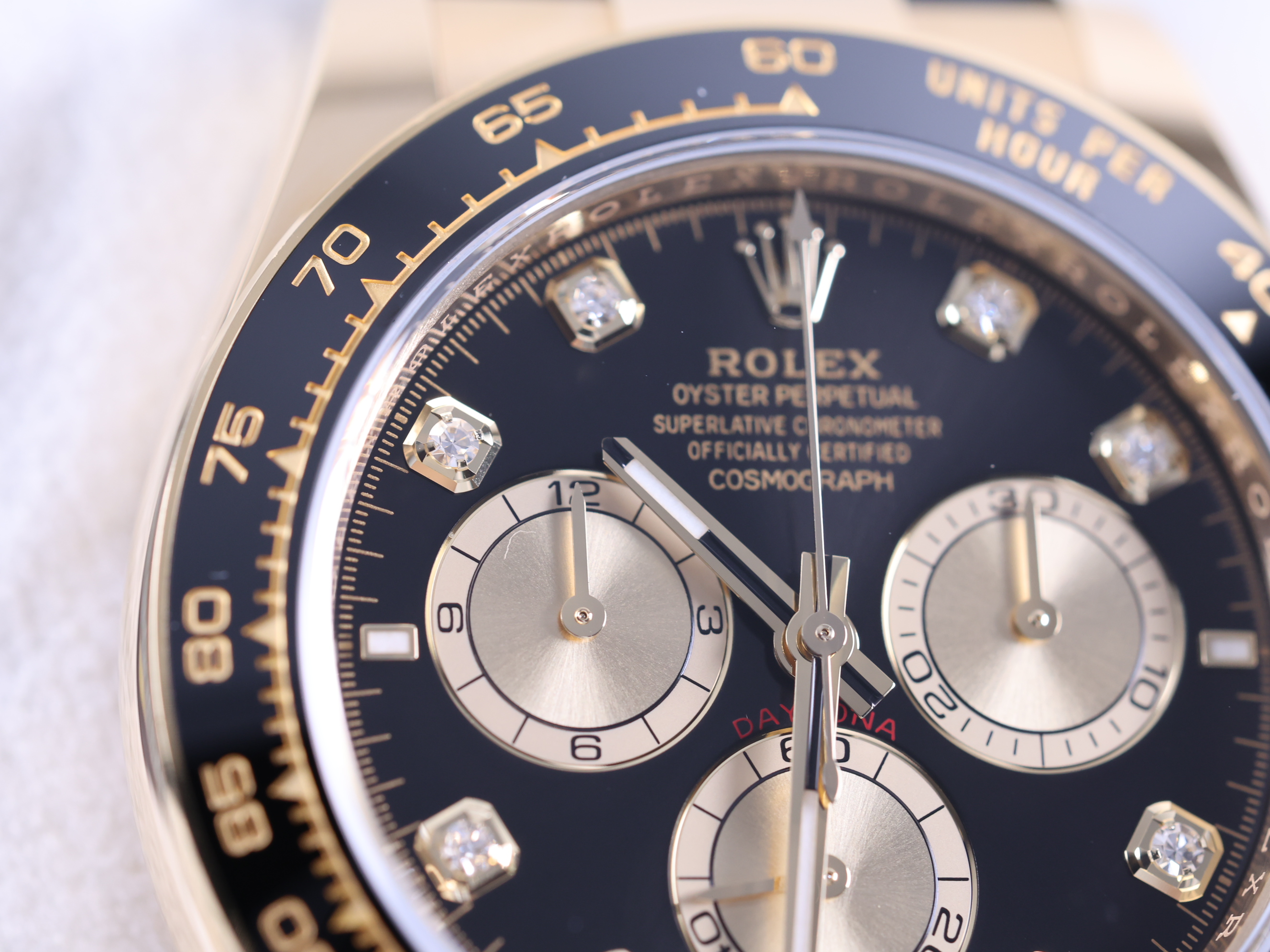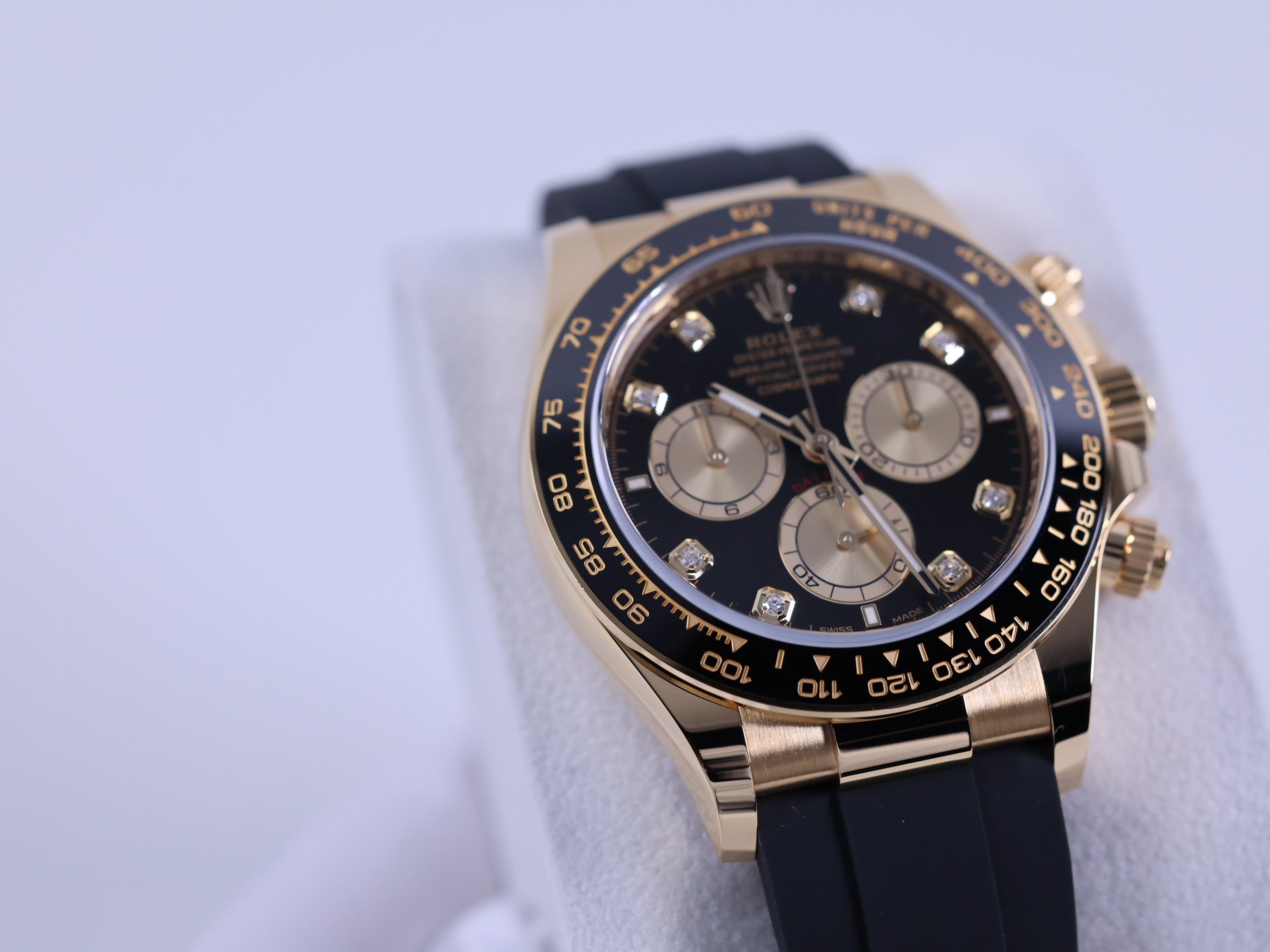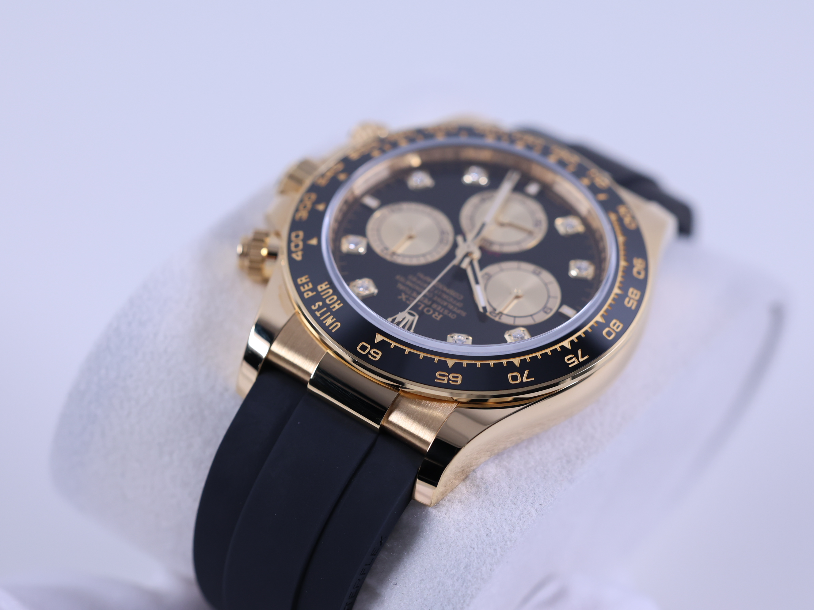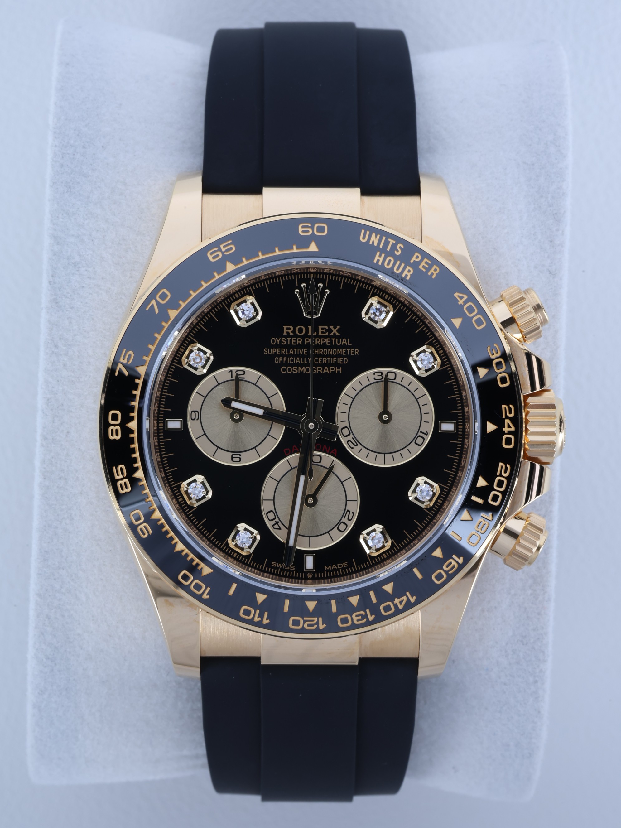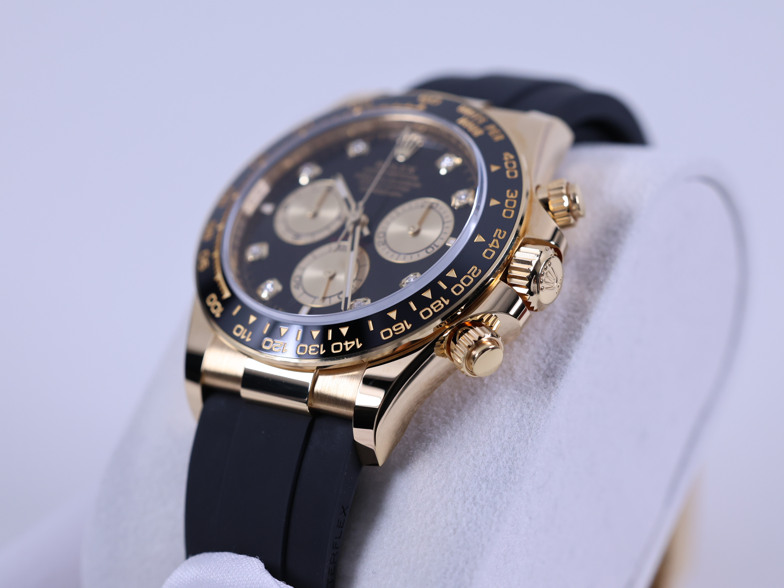 CosmographDaytona,M126518LN-0006,브라이트블랙,골든,다이아몬드,옐로우골드,러버,오이스터플렉스,사파이어크리스탈,40mm,Rolex,브라이트 블랙,옐로우 골드,오이스터 플렉스,사파이어 크리스탈,Switzerland,Yellow gold,Folding clasp,Chronograph subdials,small seconds / applied hour markers,Hour + minute + central chronograph + counter (2) + small seconds,Daytona,데이토나,롤렉스,small seconds / diamond-set indices,small seconds / diamond-set hour markers,다이아몬드 세팅,Cosmograph Daytona,.블랙,보석 세팅,디플로이언트,크로노그래프,약 20mm,원형,레이싱,남성용,브라이트 블랙, 골든,Chronograph subdials, small seconds / diamond-set hour markers