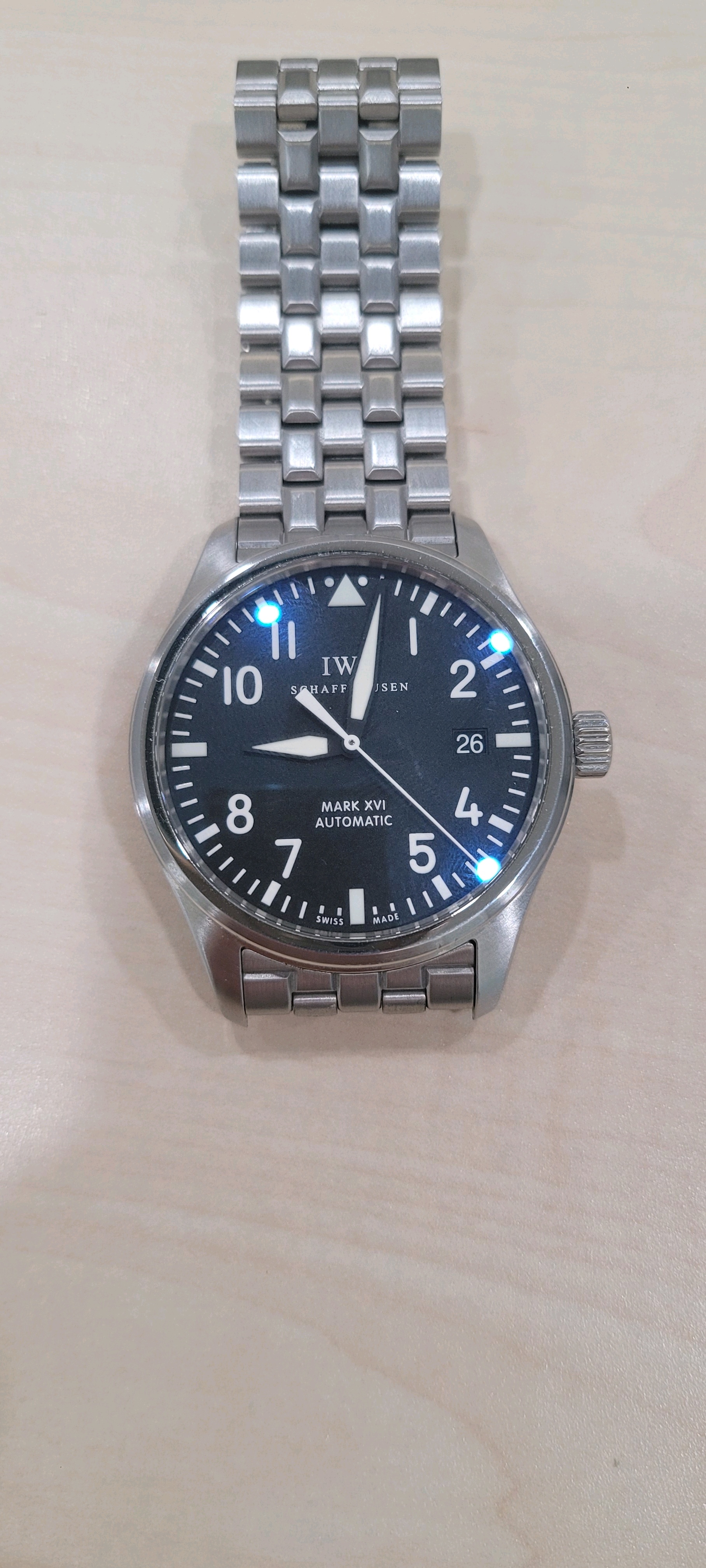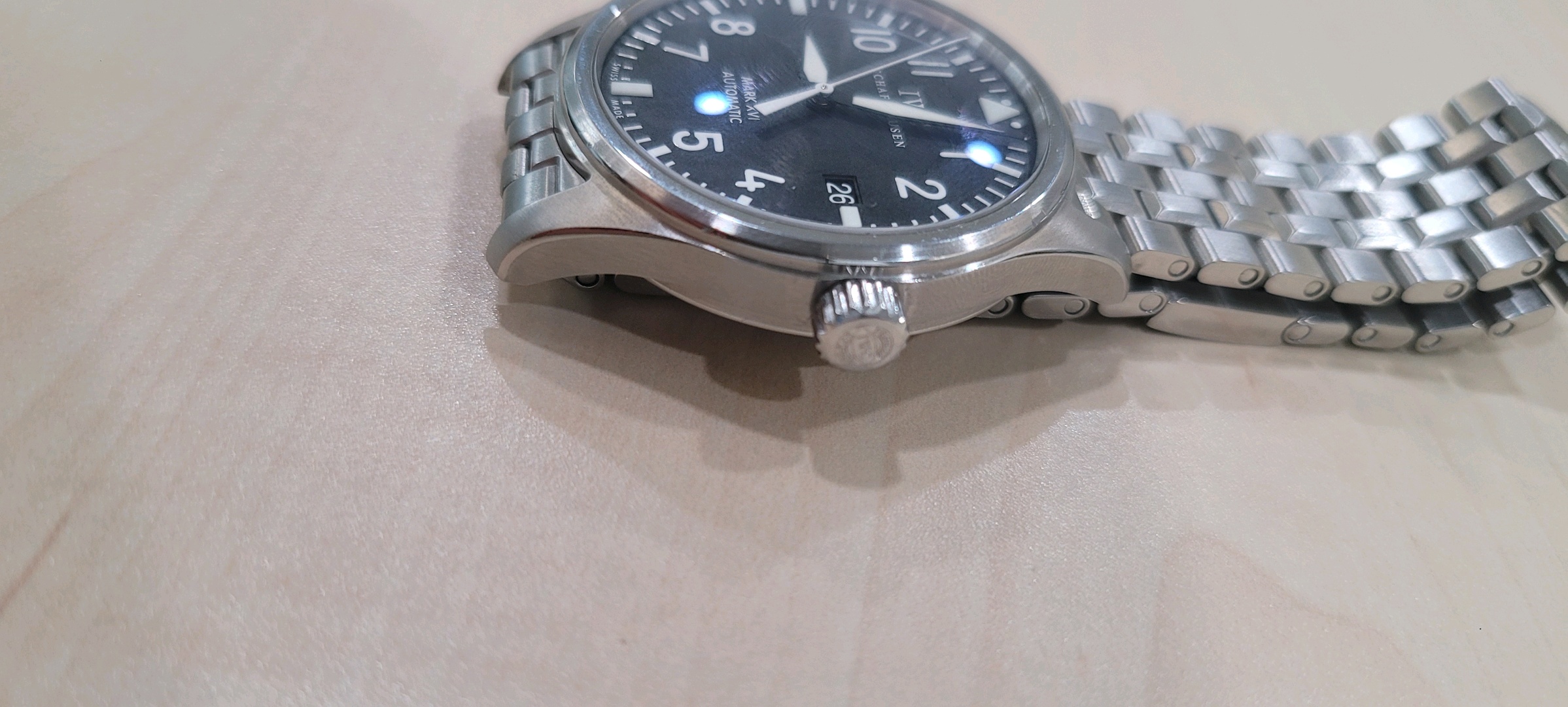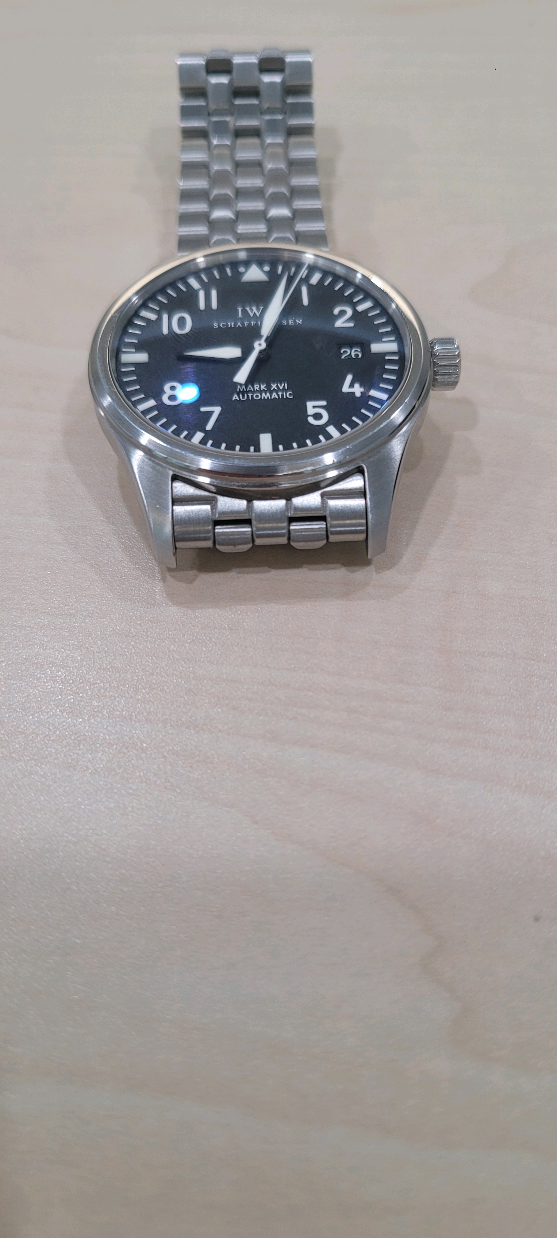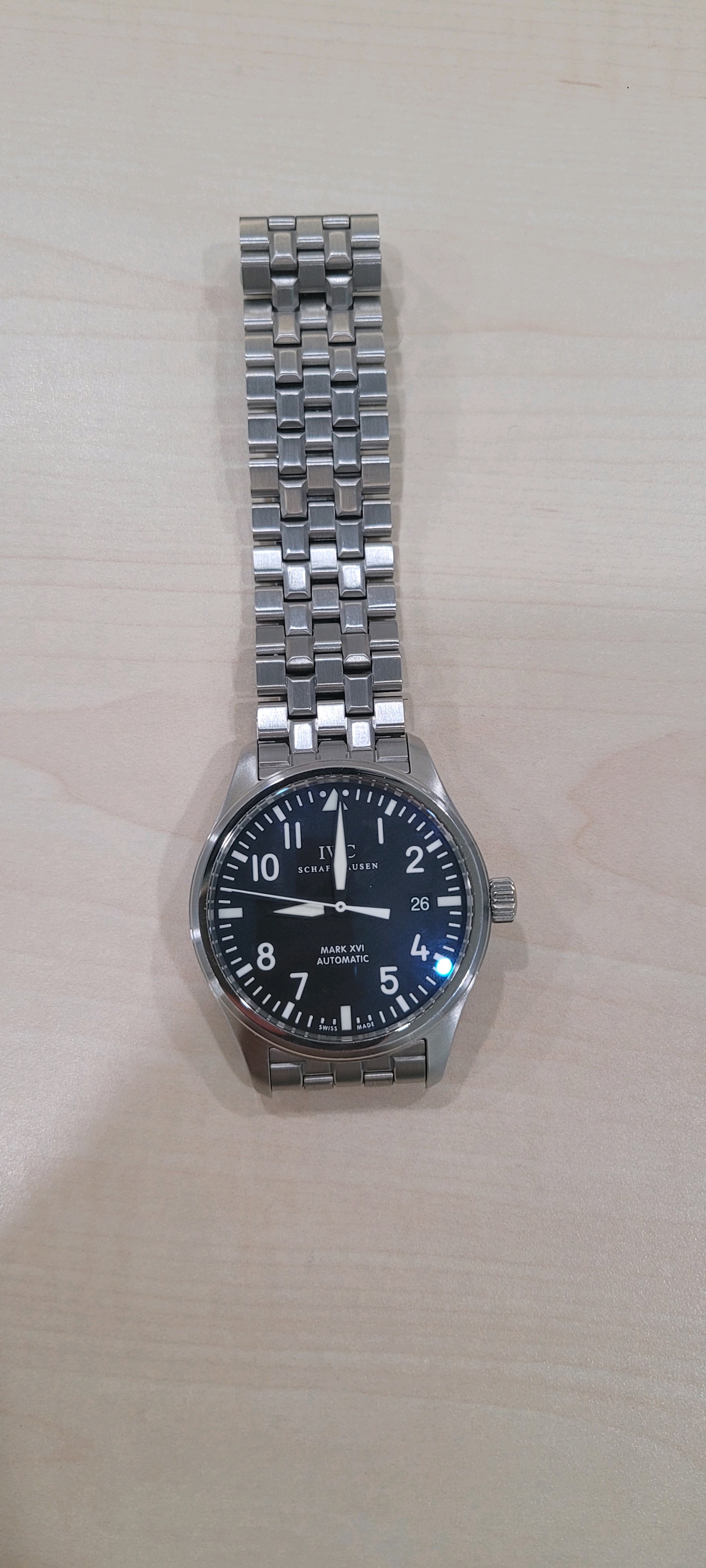 5.상태:브레이슬릿 새제품 교체로 줄 늘어짐없이 짱짱하고 글라스상태 아주 좋습니다. 생활기스와 미세찍힘은 있으나 연식대비 상태 아주 좋타고 생각합니다. 2024년 IWC 정식 오버홀 진행하여 성능도 아주 양호합니다