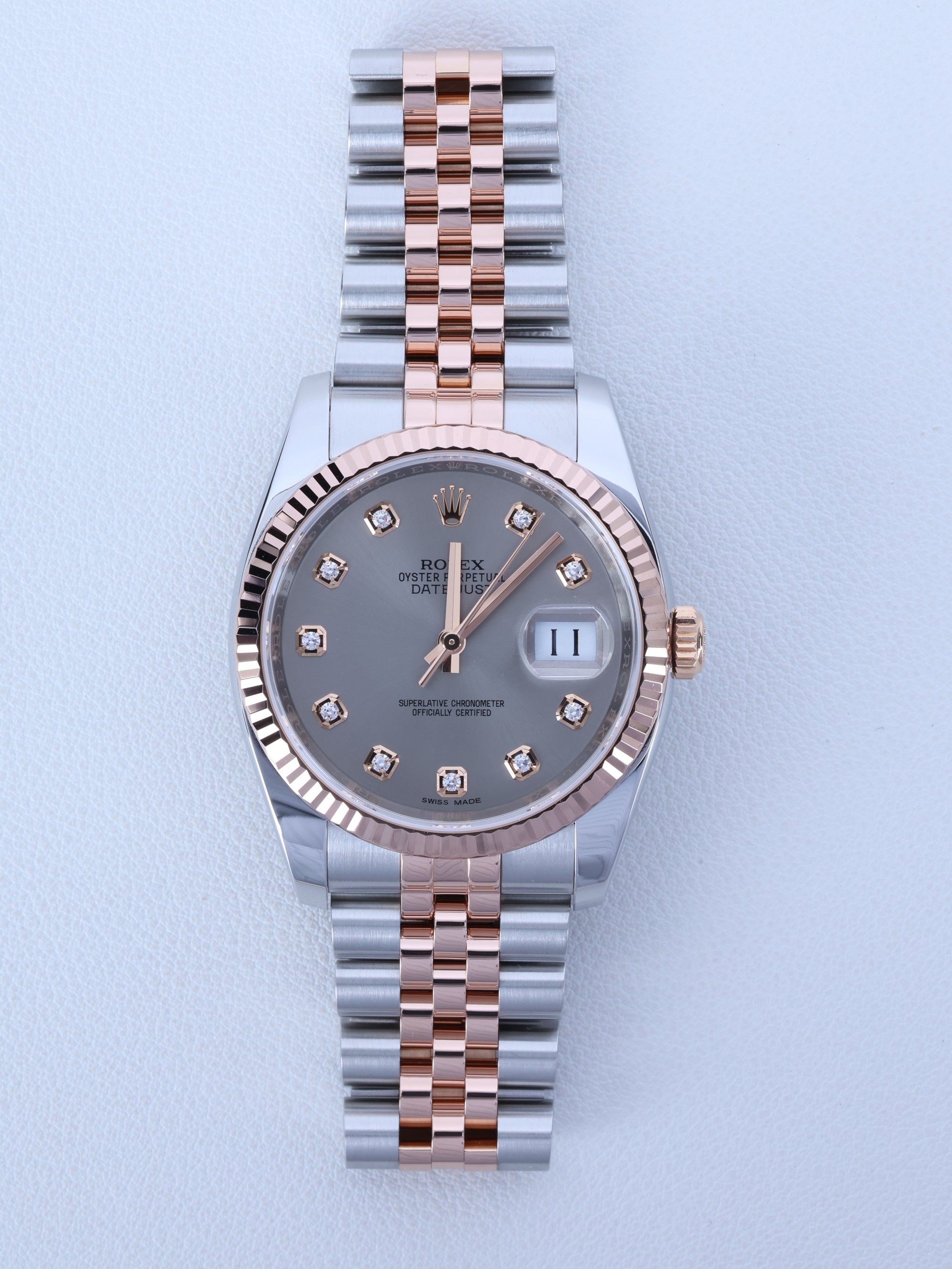 Datejust,데이트저스트,Rolex,롤렉스,Datejust 36,Rolex Datejust 36 116231-0010,Rolex Datejust M116231-0010,롤렉스 데이트저스트 36 M116231-0010,그레이,다이아몬드 세팅,쥬빌리 브레이슬릿,사파이어 크리스탈,36mm,에버로즈 골드,플루티드 베젤,롤렉스 데이트저스트 36 다이아 세팅,롤렉스 데이트저스트 다이아몬드,롤렉스 데이트저스트 그레이 다이아몬드,롤렉스 데이트저스트 36 그레이 다이아몬드,롤렉스 데이트저스트 쥬빌리 브레이슬릿,그레이,Rose gold,Hidden folding clasp,Date / diamond-set indices,데이트저스트 36,스테인리스 스틸,플루티드,Everose gold,스틸,스테인리스 스틸, 에버로즈 골드
