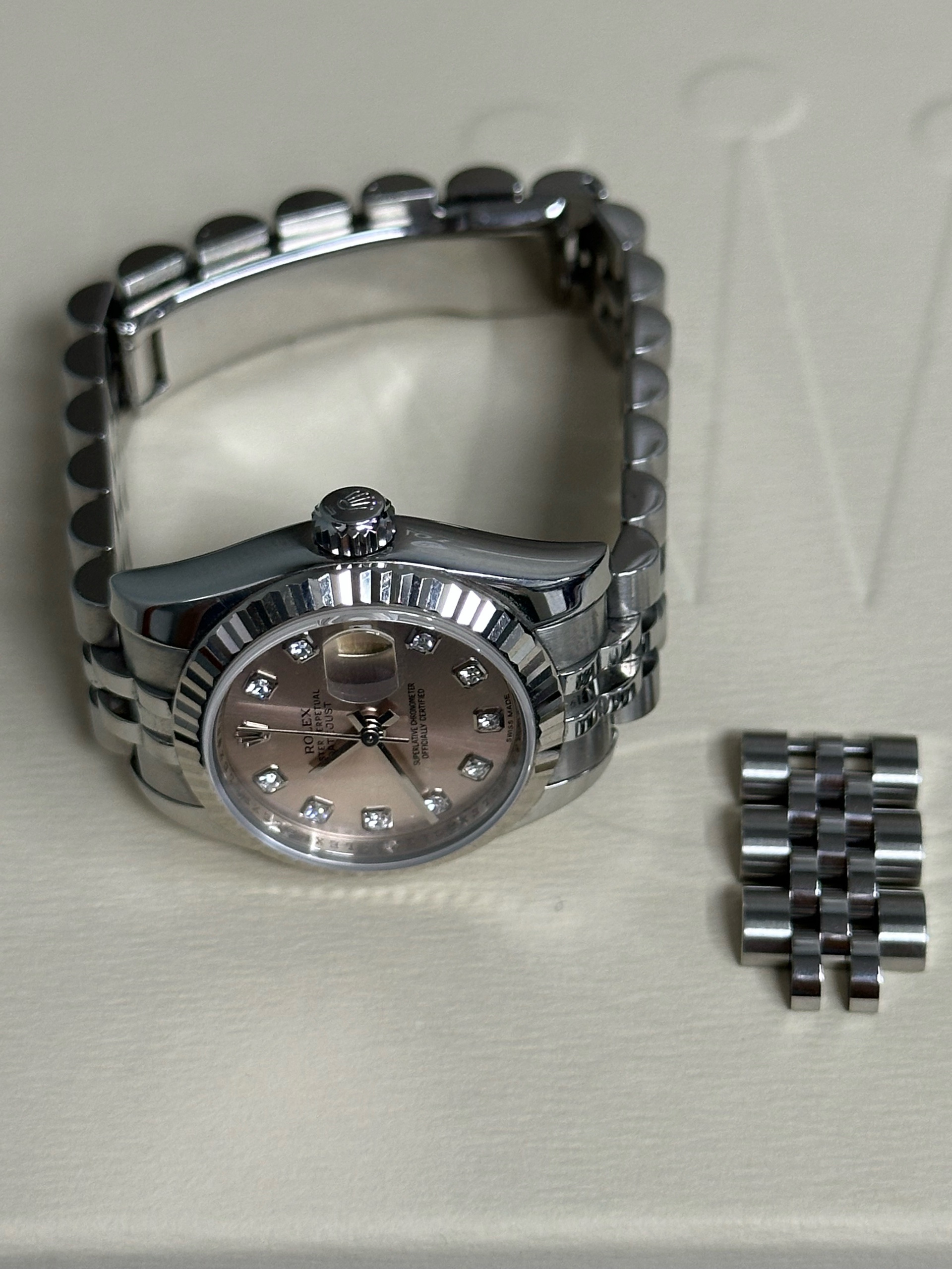 M179174-0007,Lady-Datejust26,179174-핑크다이아몬드,데이트저스트,데이저스트,레이디,데이트,화이트골드,화골,데잇저스트,데잇,여자시계,여자시계추천,예물시계추천,쥬빌리,쥬빌리브레이슬릿,핑크,다이아몬드,스테인레스스틸+화이트골드,스테인레스스틸,사파이어크리스탈,26mm,Rolex,스테인리스 스틸,화이트 골드,쥬빌리 브레이슬릿,사파이어 크리스탈,Stainless steel,Folding clasp,Date / diamond-set indices,Lady-Datejust 26,레이디 데이저스트 26,Lady-Datejust,롤렉스,다이아몬드 세팅,웨딩