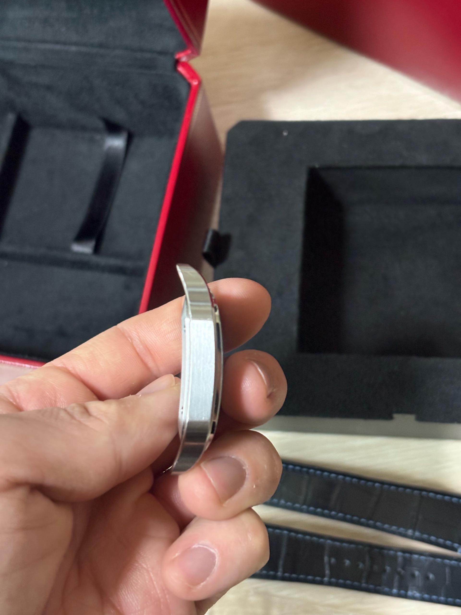 브레이슬릿도 함께 분실하여 같이 착용하던 정품 악어 가죽 스트랩 추가로 같이 드려요
