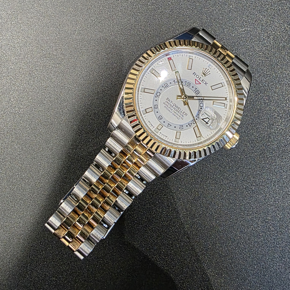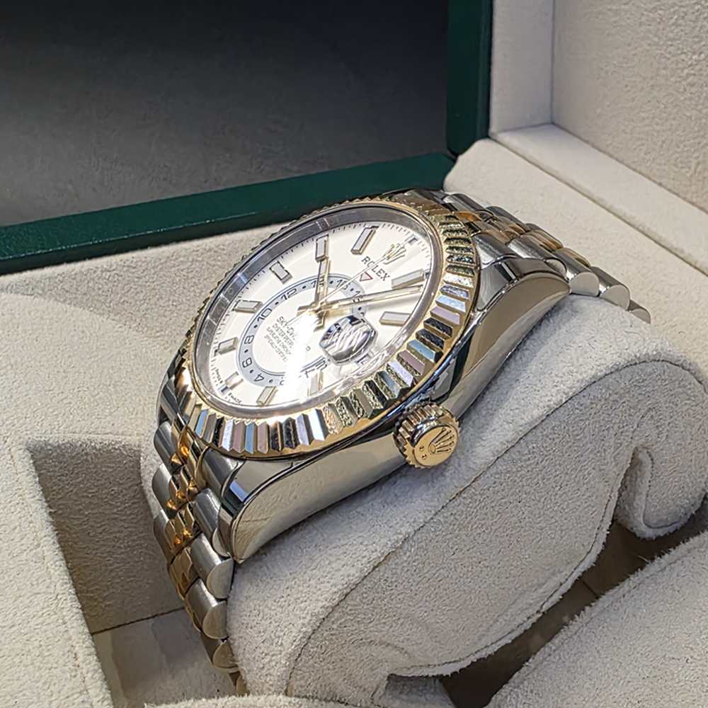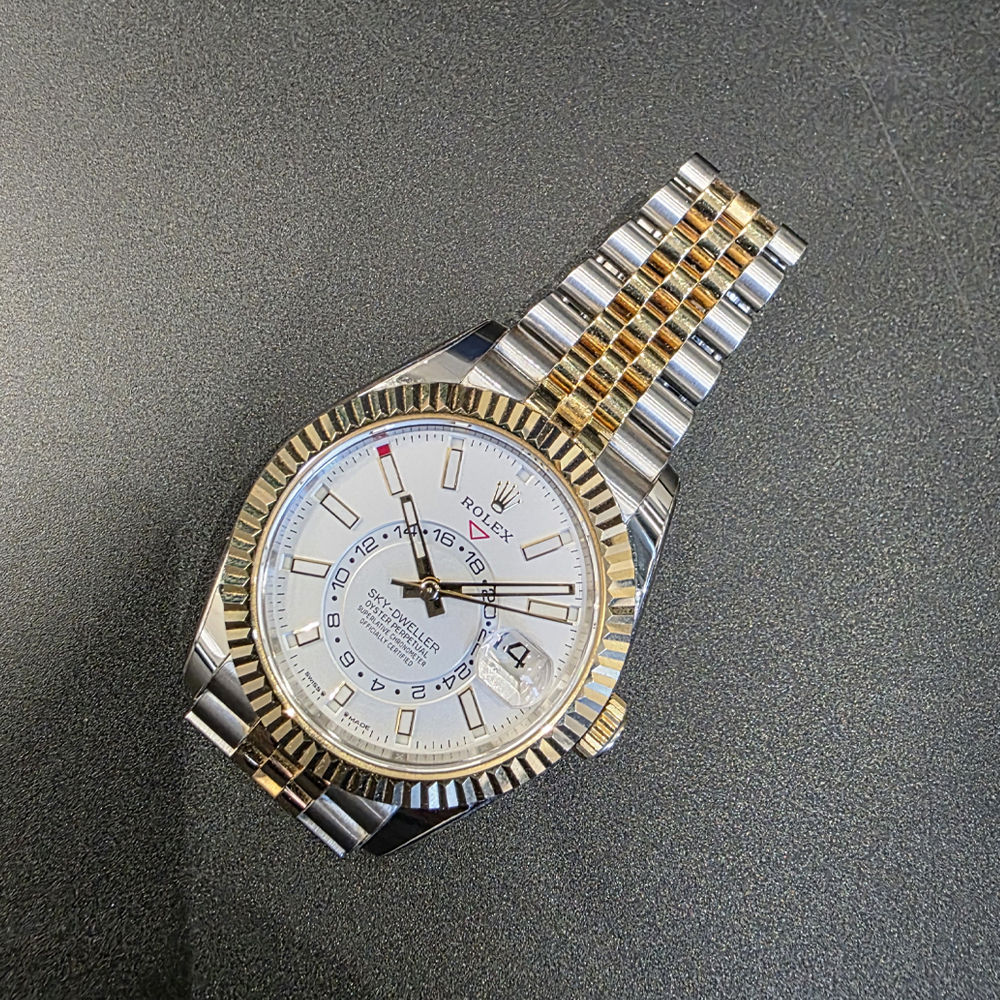 롤렉스 스카이드웰러 42mm 흰판 바 인덱스 옐로우골드 콤비 쥬빌리