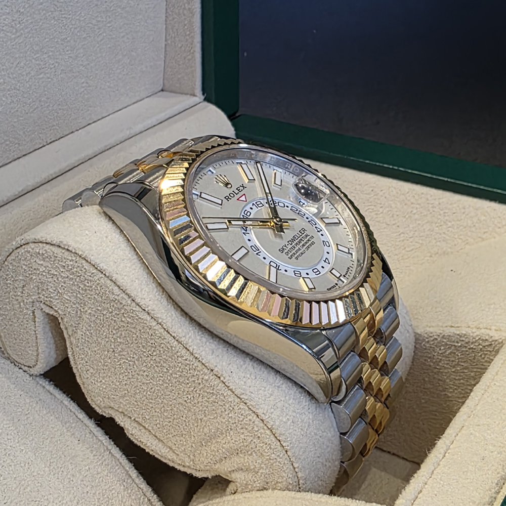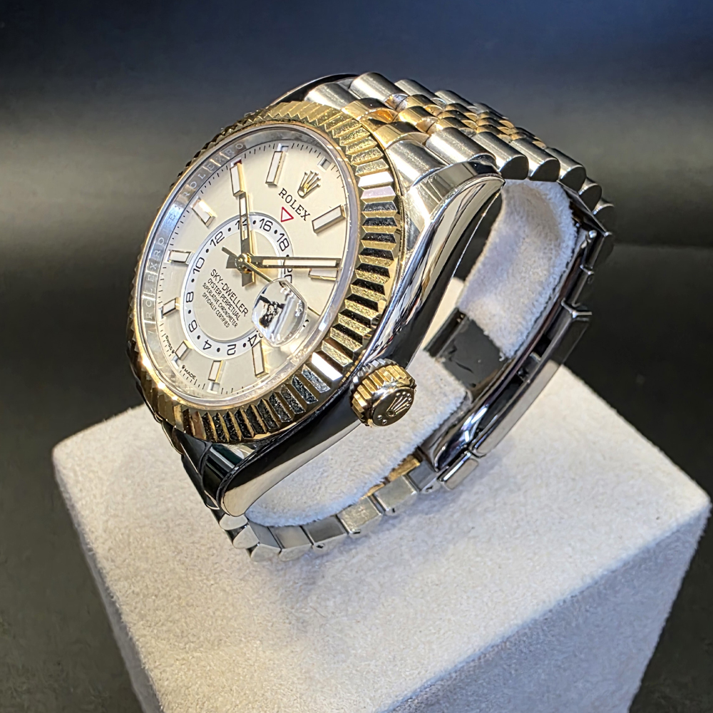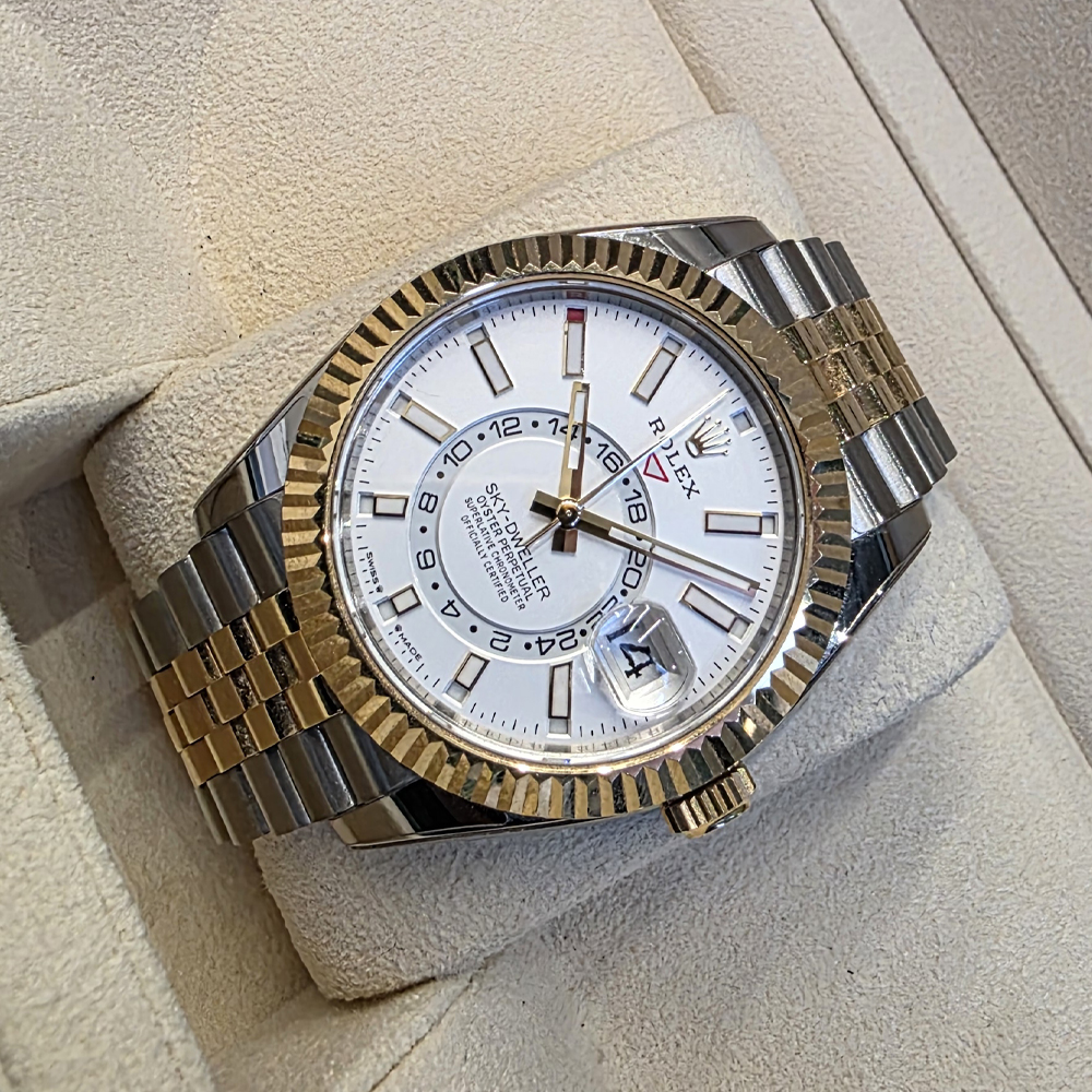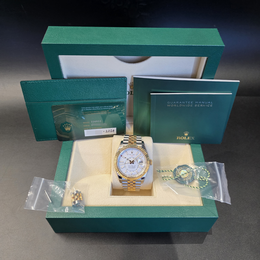 롤렉스 스카이드웰러 42mm 흰판 바 인덱스 옐로우골드 콤비 쥬빌리