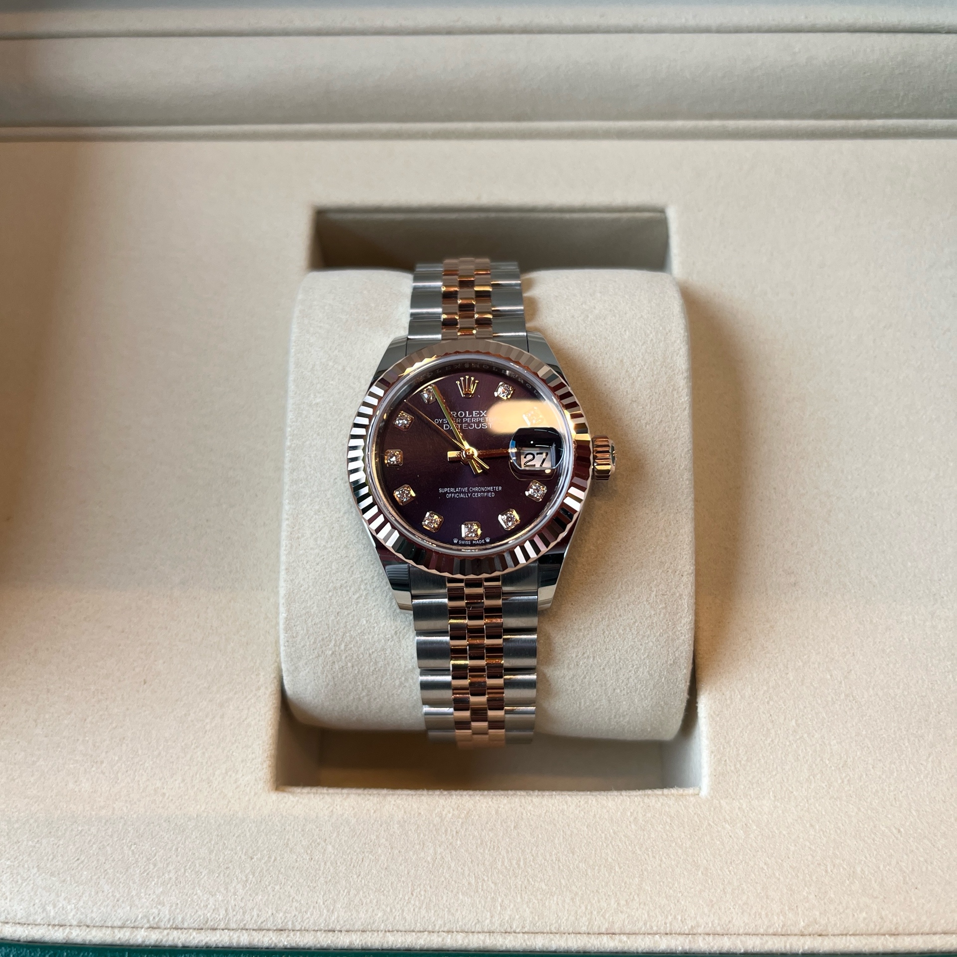 롤렉스 로렉스 여성 레이디 데이저스트 데이트저스트 28 279171 오베르진 퍼플 다이아,lady-datejust28,279171,m279171-0015,오베르진,다이아몬드,스테인레스 스틸 + 에버로즈 골드,쥬빌리 브레이슬릿,사파이어 크리스탈,28mm,데이트저스트,데이저스트,레이디,데이트,에버로즈골드,로즈골드,로골,롤레조,콤비,데잇저스트,데잇,여자시계,여자시계추천,예물시계추천,다이아,다이아몬드 세팅,쥬빌리,어버이날 선물,로즈데이,Rolex,스테인리스 스틸,에버로즈 골드,스테인리스 스틸 + 에버로즈 골드,Switzerland,Rose gold,Hidden folding clasp,Date / diamond-set indices,Hour + minute + seconds,Lady-Datejust 28,레이디 데이저스트 28,Lady-Datejust,롤렉스,Everose gold,여성,예물,기념일,웨딩,.퍼플,보석 세팅,폴딩 클라스프,약 13mm,원형,클래식,여성용,스테인리스 스틸, 에버로즈 골드
