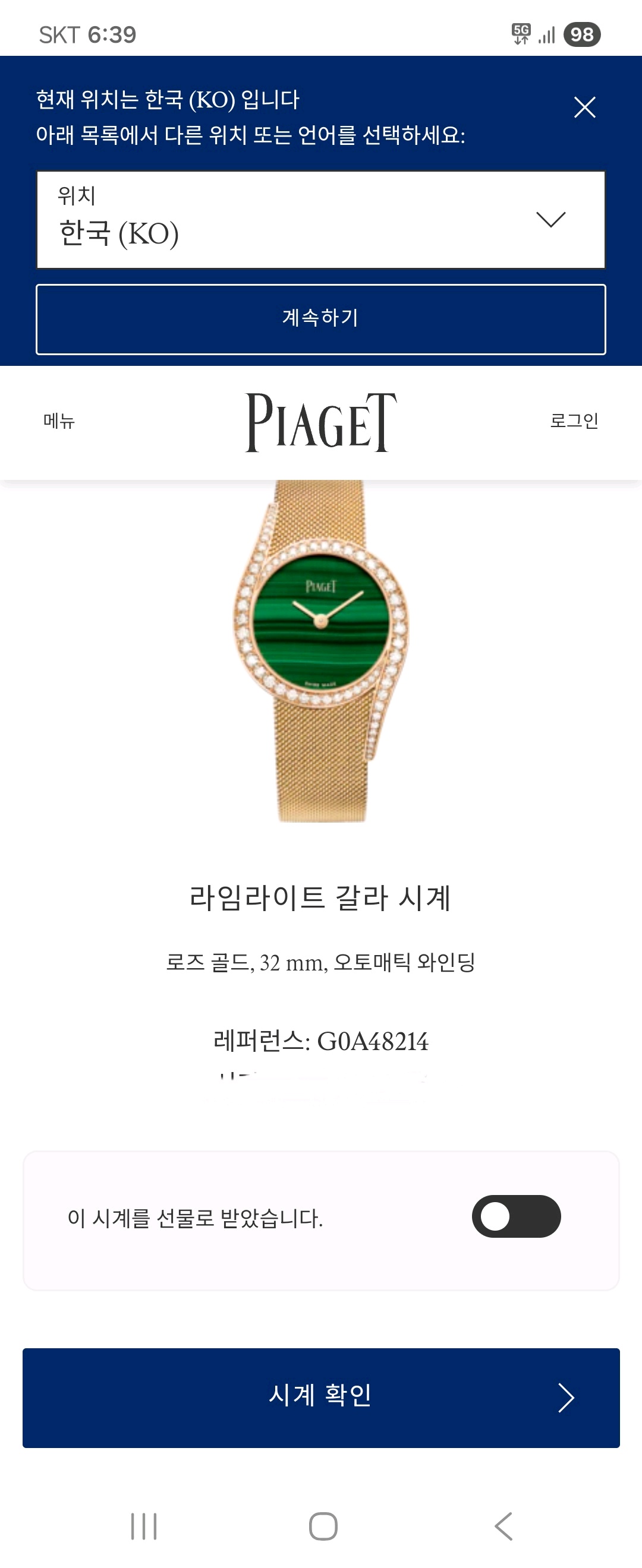G0A48214,피아제 라임라이트 갈라 G0A48214 그린 말라카이트 그린 밀라네즈 밀라니즈 밀라네제 브레이슬릿 로즈 골드 로골 통금 금통,그린,말라카이트,로즈 골드,Limelight Gala,라임라이트 갈라,Piaget,피아제,32mm,다이아몬드 세팅,셀프 와인딩,Rose gold,Folding clasp,No indices