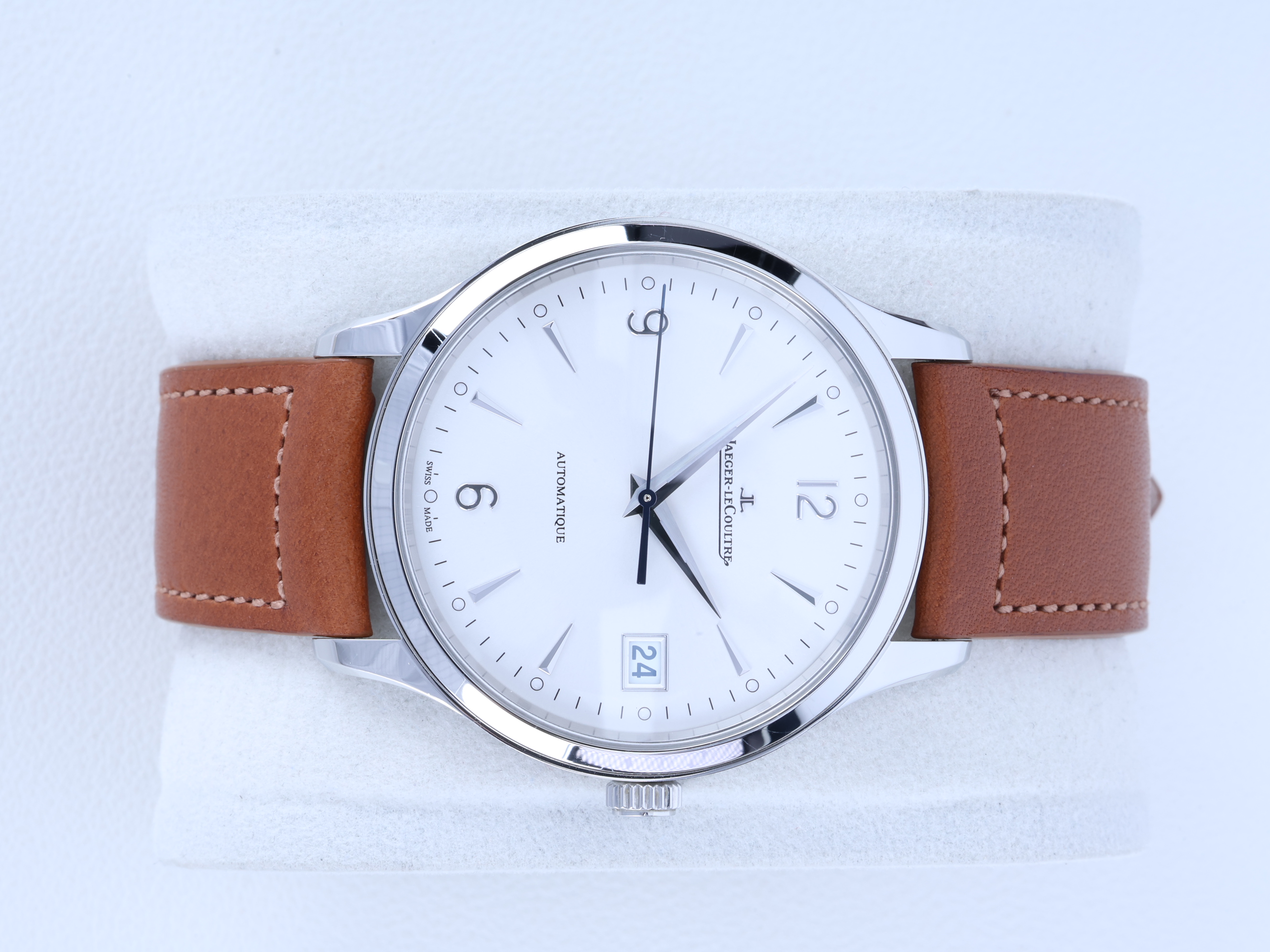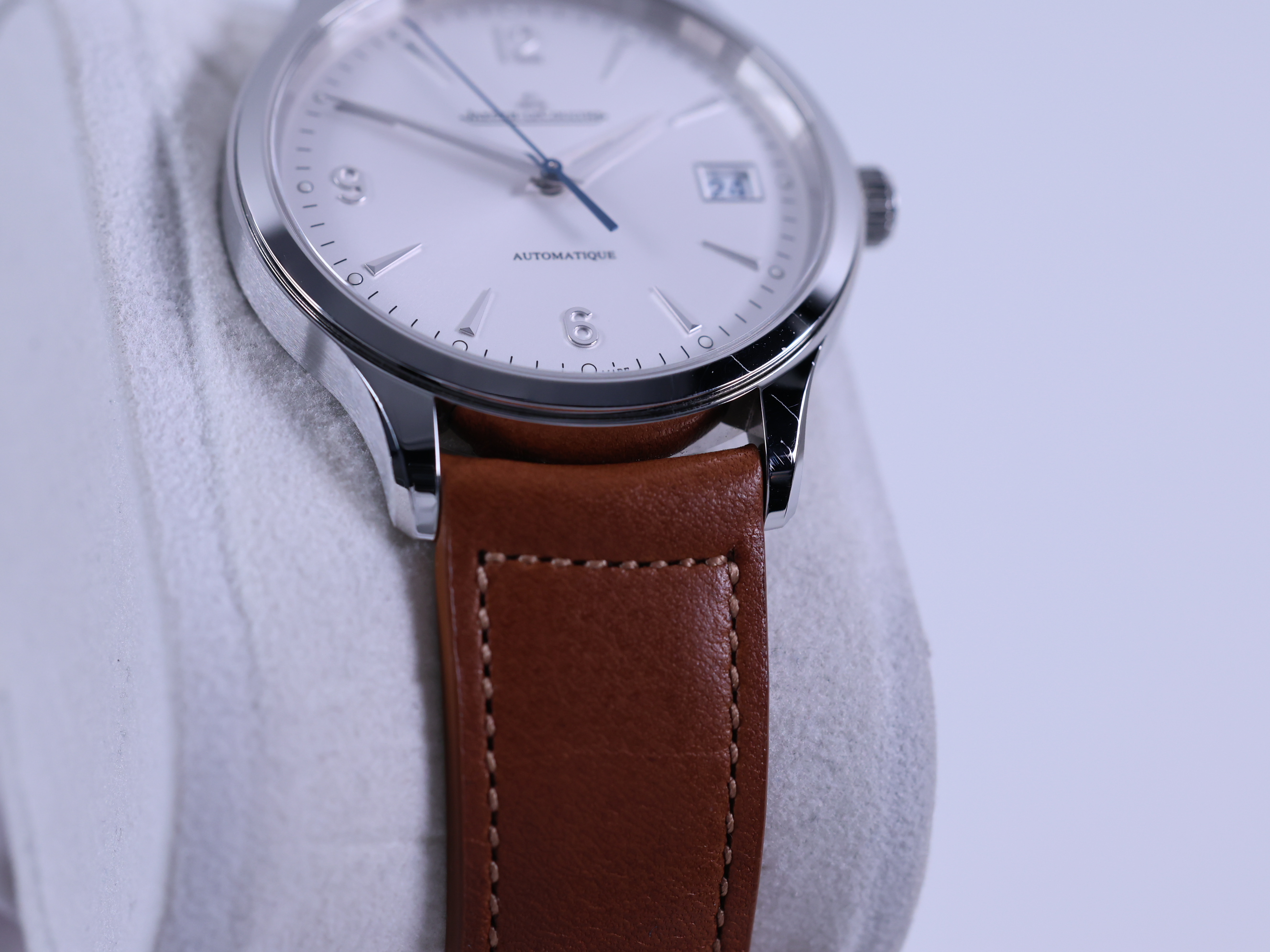 JLC 예거 르쿨트르 루꿀트르 마스터 컨트롤 데이트 Q4018420 실버 그레이 스테인리스 스틸 시스루백 씨스루백 투명 케이스백,Q4018420,실버 그레이,스테인리스 스틸,가죽,스트랩,40 mm,셀프 와인딩,JLC Cal.899,Switzerland,Stainless steel,Deployant folding buckle,Date / applied arabic numerals & dagger indices,Master Control Date,마스터 컨트롤 데이트,Master Control,Jaeger-LeCoultre,예거 르쿨트르