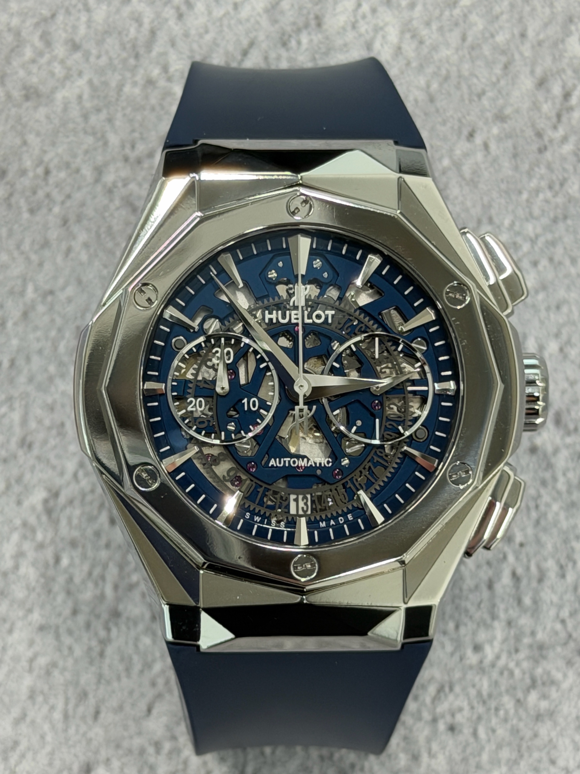 525.NX.5170.RX.ORL21,위블로 클래식 퓨전 에어로퓨전 크로노그래프 올린스키 티타늄 블루 티타늄 45 45mm 빅사이즈 스켈레톤,Classic Fusion Aerofusion Chronograph Orlinski Titanium Blue,클래식 퓨전 에어로퓨전 크로노그래프 올린스키 티타늄 블루 리미티드 에디션 시스루백 씨스루백 투명 케이스백,Classic Fusion,Hublot,위블로,블루,티타늄,45mm,셀프 와인딩,Titanium,Deployant folding clasp,Date,chronograph subdial,small seconds / applied trapezoidal indices,클래식 퓨전 에어로퓨전 크로노그래프 올린스키 티타늄 블루,Date, chronograph subdial, small seconds / applied trapezoidal indices