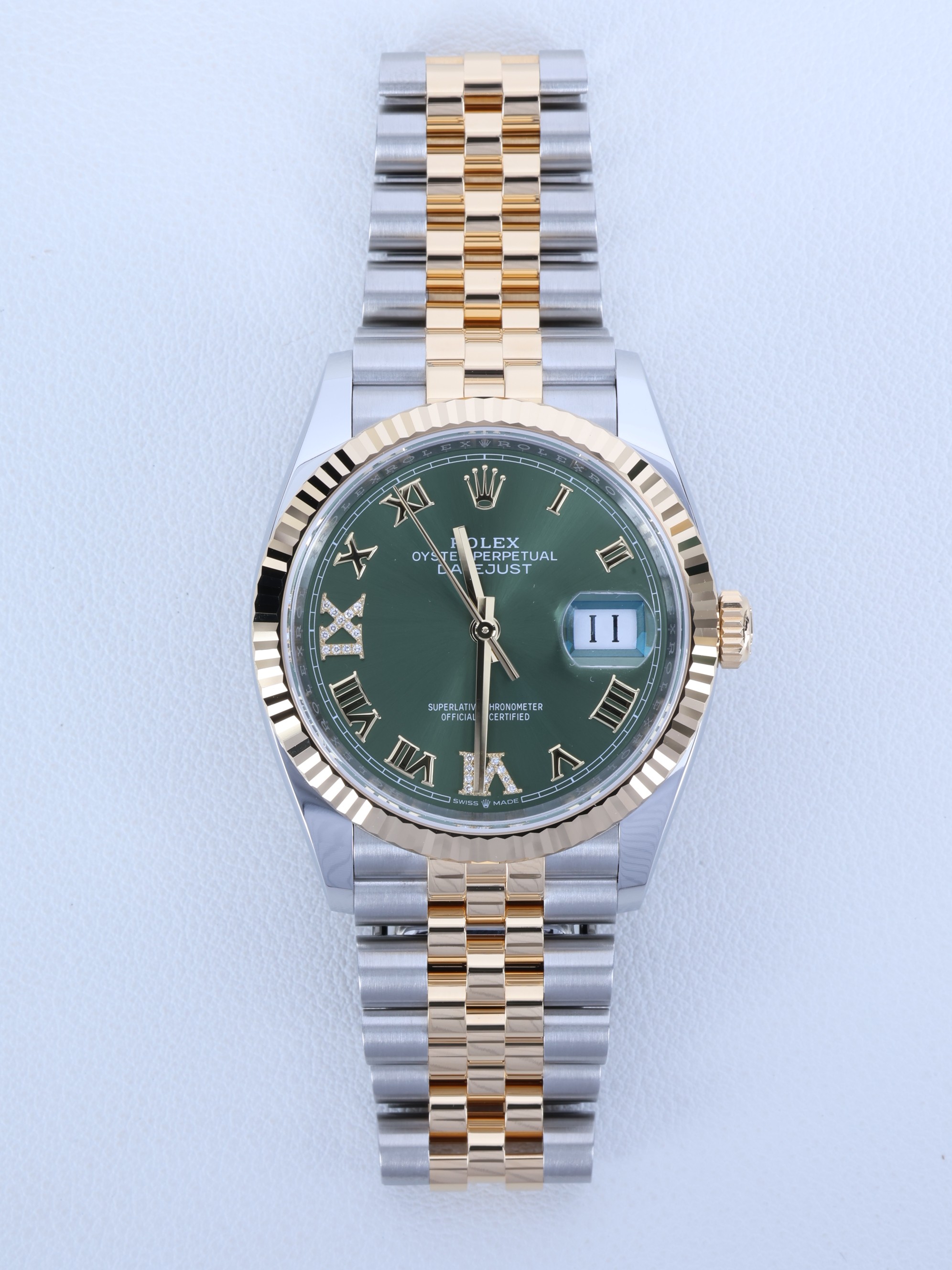 datejust36,126233,m126233-0025,올리브 그린,로만vi&ix다이아몬드,스테인레스 스틸 + 옐로우 골드,쥬빌리 브레이슬릿,사파이어 크리스탈,36mm,데이트저스트,데이저스트,데이트,옐로우골드,옐골,롤레조,콤비,데잇저스트,데잇,예물시계 추천,다이아,다이아몬드,다이아몬드 세팅,쥬빌리,어버이날 선물,40대 추천,단종,Rolex,로만,VI&IX 다이아몬드 세팅,스테인리스 스틸,옐로우 골드,스테인리스 스틸 + 옐로우 골드,Switzerland,Yellow gold,Folding clasp,Date / 6-9 diamond-set roman numeral indices,Hour + minute + seconds,Datejust 36,데이저스트 36,Datejust,롤렉스,남성,기념일,예물,웨딩,.그린,폴딩 클라스프,약 20mm,원형,클래식,남녀공용,스테인리스 스틸, 옐로우 골드