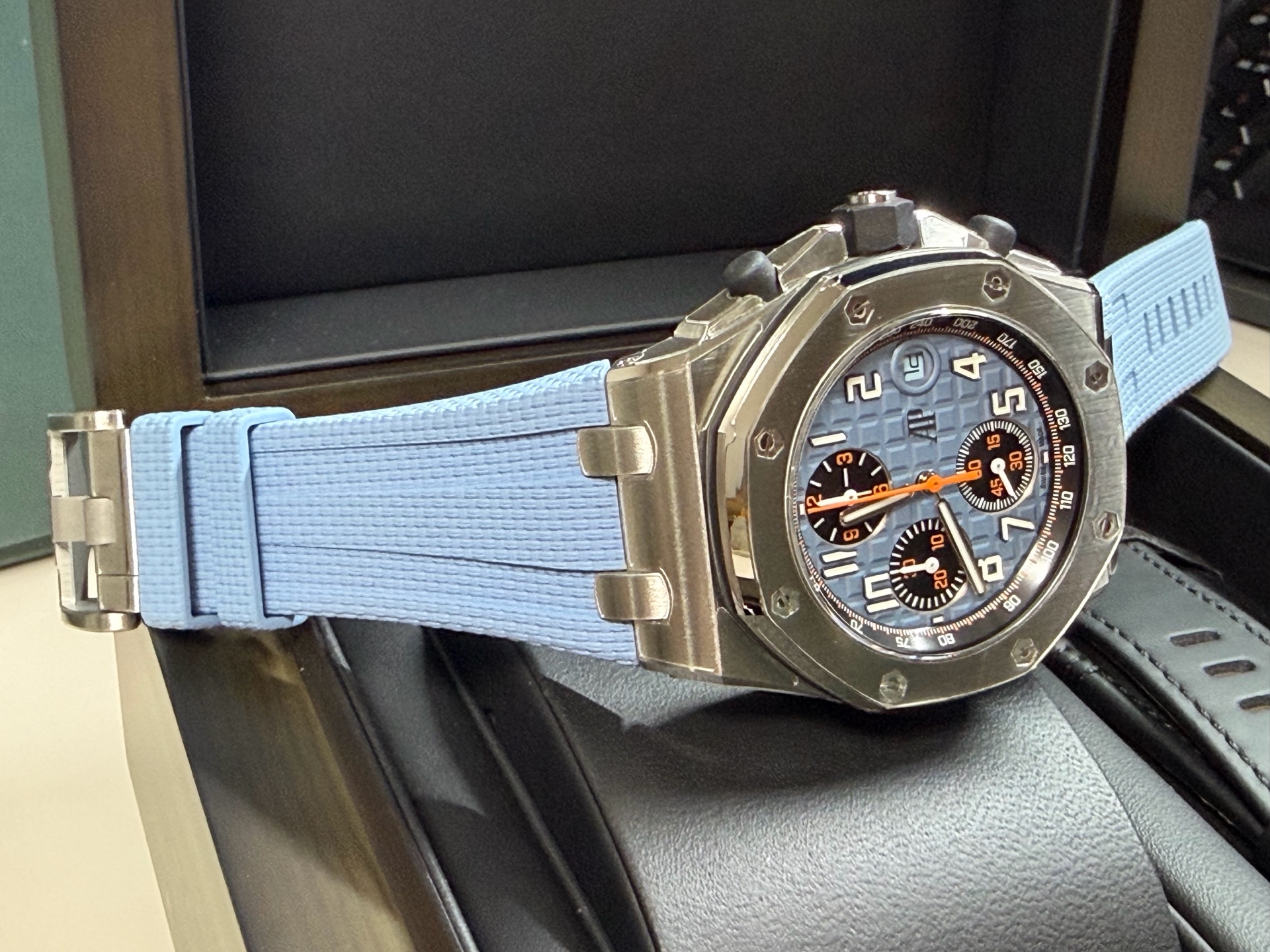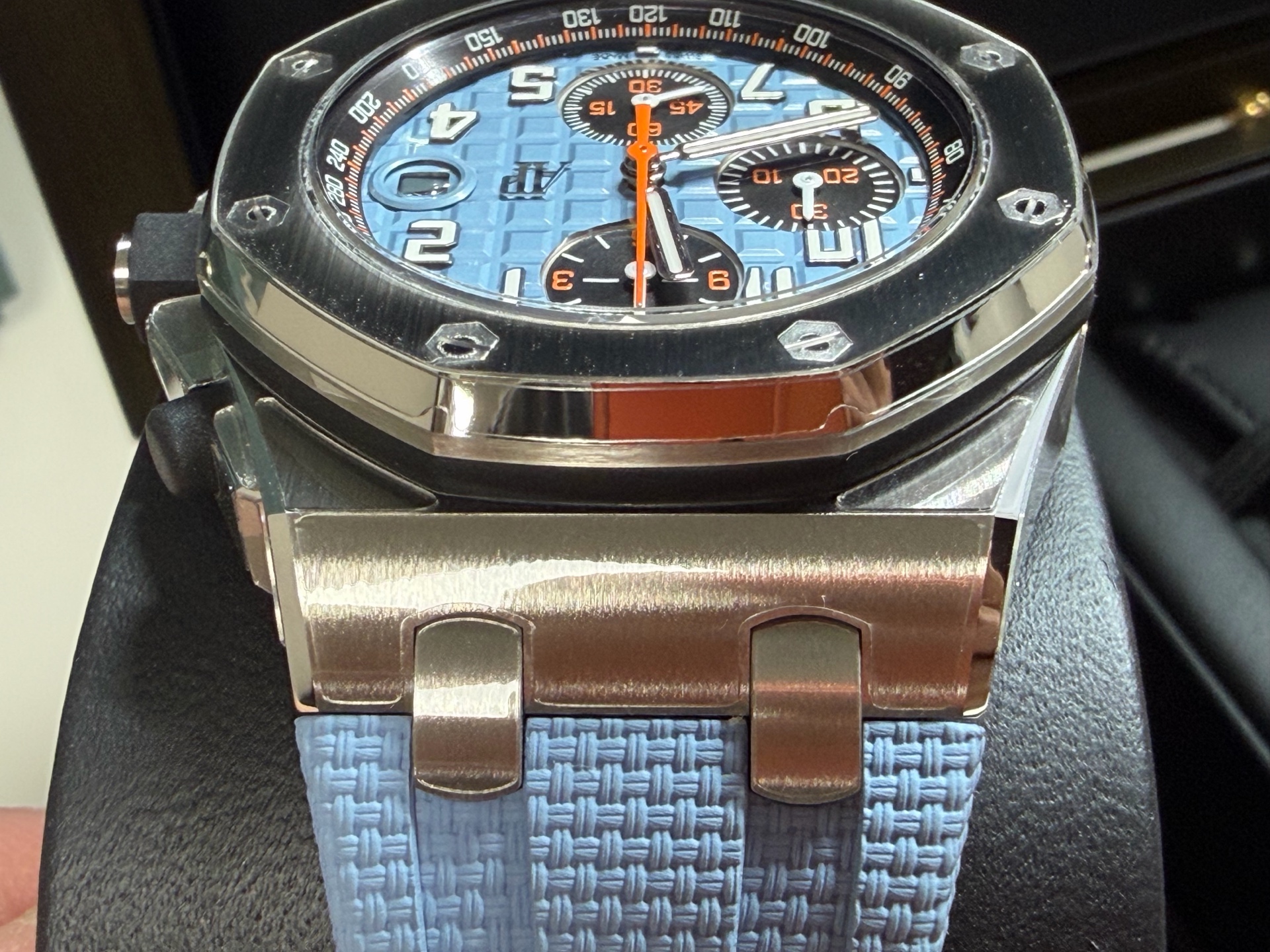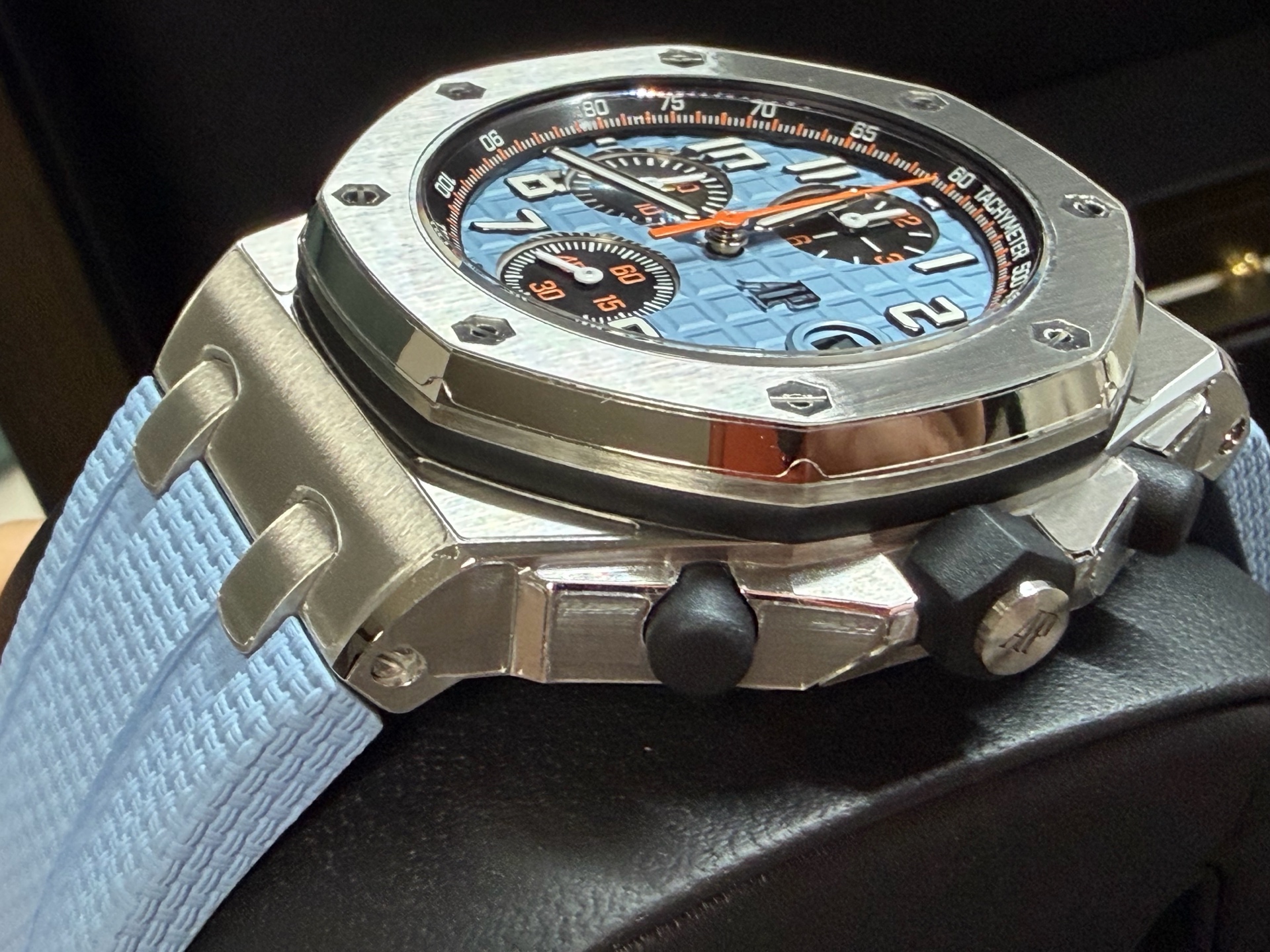 Royal Oak Offshore Chronograph,로열 오크 오프쇼어 크로노그래프,Royal Oak,Audemars Piguet,오데마 피게,Audemasr Piguet Royal Oak Offshore Chronograph 26238ST.OO.A340CA.01,AP Royal Oak Offshore Chronograph 26238ST.OO.A340CA.01,오데마 피게 로열 오크 오프쇼어 26238ST 블루,오데마 피게 로열 오크 오프쇼어 26238 블루,오데마 피게 로열 오크 오프쇼어 블루 26238ST,오데마 피게 로얄 오크 오프쇼어 26238ST 블루,오데마 피게 로얄 오크 오프쇼어 26238 블루,오데마 피게 로얄 오크 오프쇼어 블루 26238ST,블루,러버 스트랩,사파이어 크리스탈,42mm,스테인리스 스틸,이너 타키미터,셀프와인딩,Rubber clad steel,Pin buckle,Date,chronograph subdials,small seconds / applied arabic numerals,tachymeter ring,셀프 와인딩,small seconds / applied hour markers,블루/블랙,.블루,아라빅,패턴,핀 버클,크로노그래프,데이트,투명 케이스백,옥타곤,스포츠,Royal Oak Offshore Selfwinding Chronograph,메가 타피세리,러버,스트랩,Date, chronograph subdials, small seconds / applied hour markers,Royal Oak