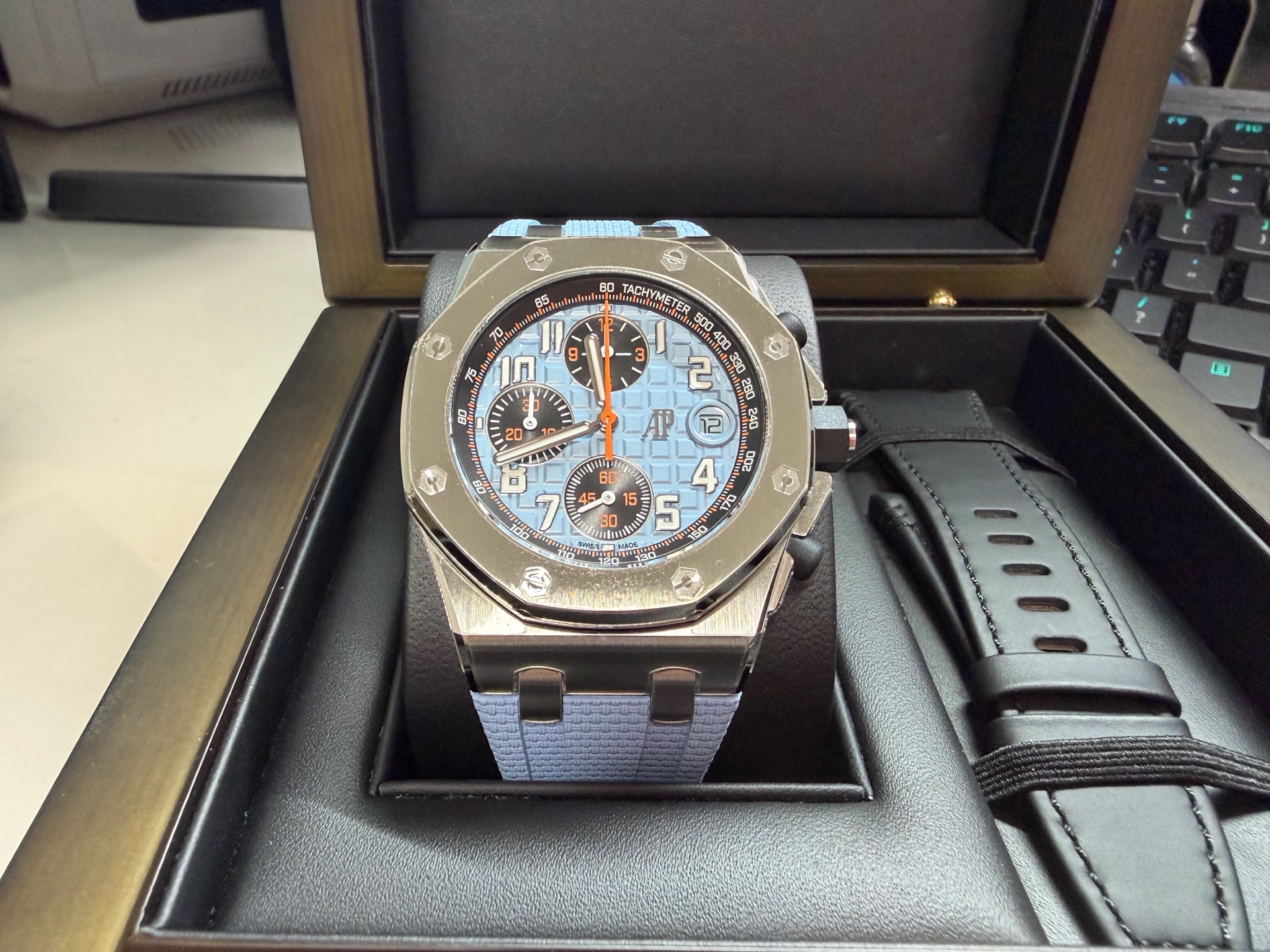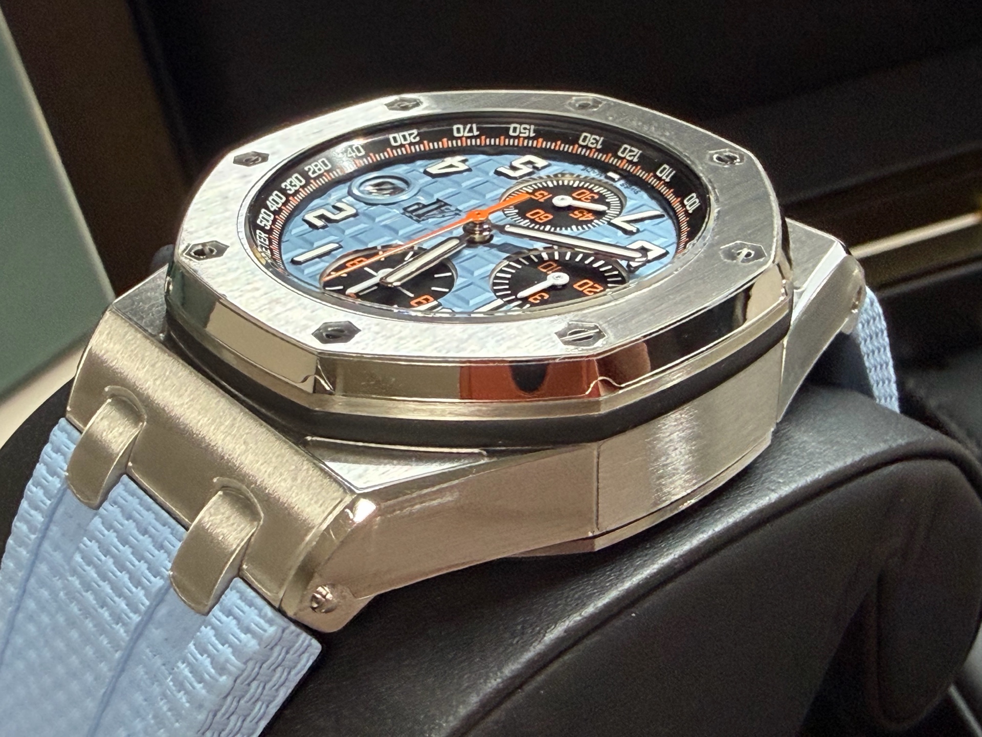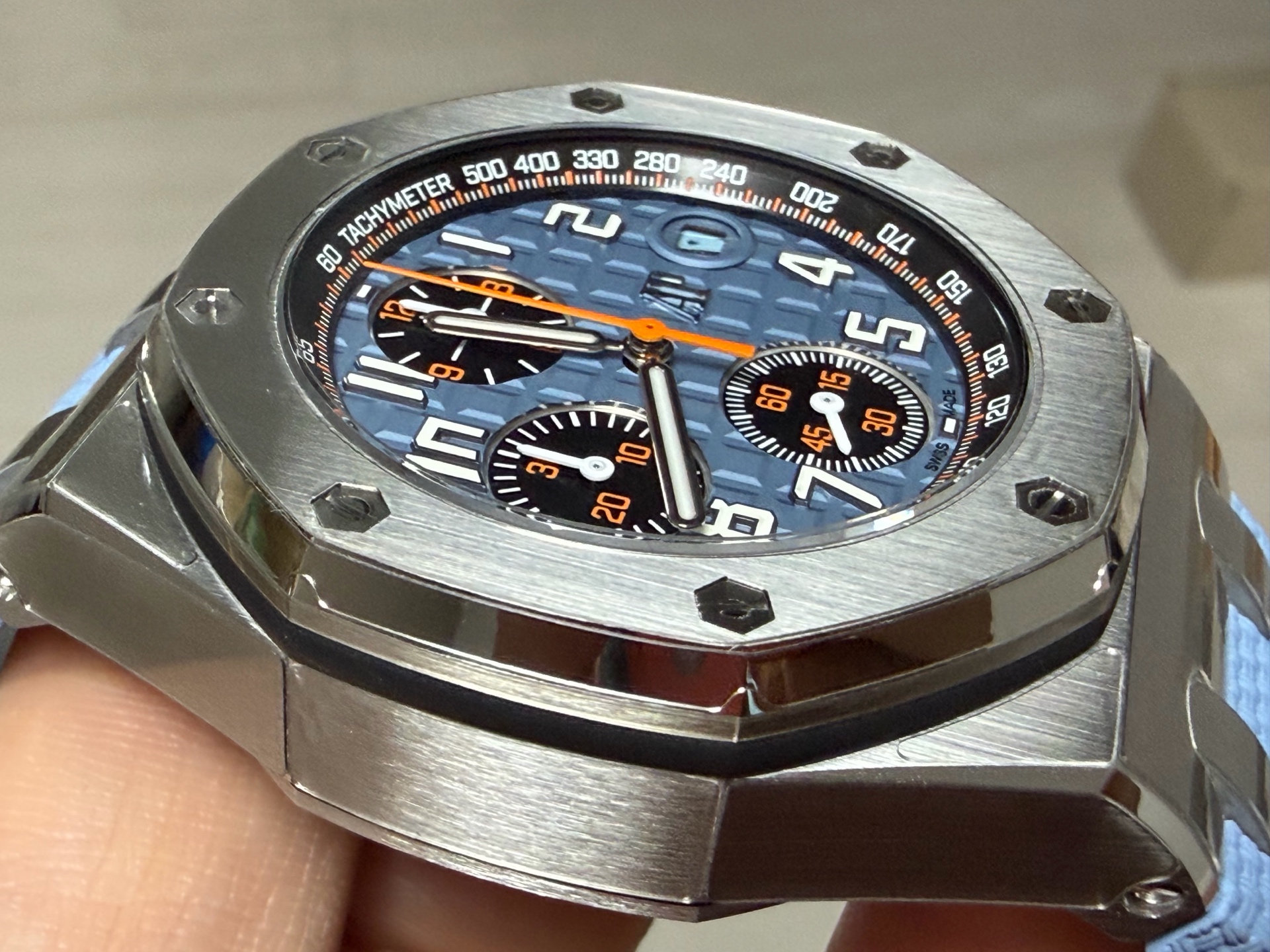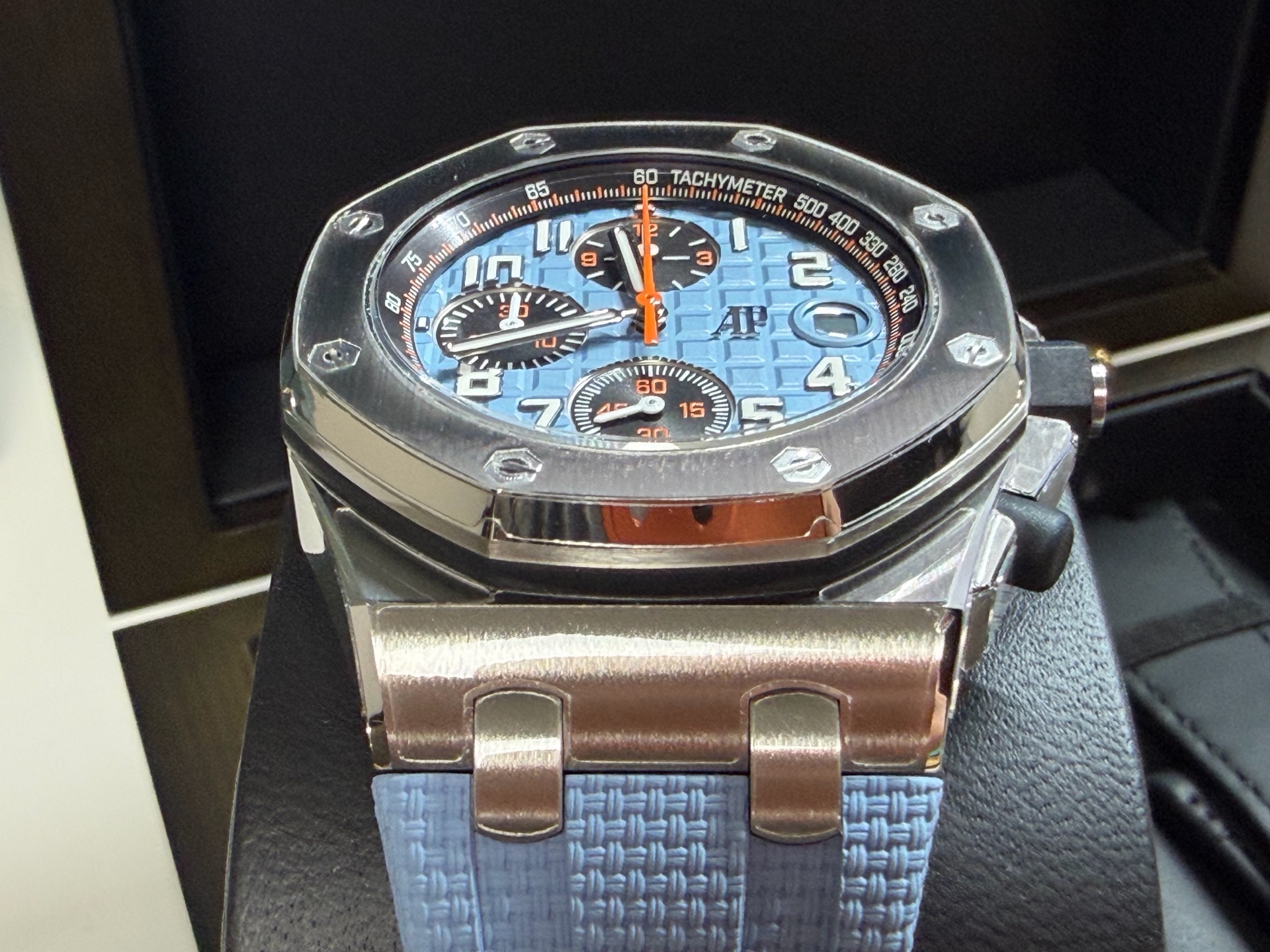 Royal Oak Offshore Chronograph,로열 오크 오프쇼어 크로노그래프,Royal Oak,Audemars Piguet,오데마 피게,Audemasr Piguet Royal Oak Offshore Chronograph 26238ST.OO.A340CA.01,AP Royal Oak Offshore Chronograph 26238ST.OO.A340CA.01,오데마 피게 로열 오크 오프쇼어 26238ST 블루,오데마 피게 로열 오크 오프쇼어 26238 블루,오데마 피게 로열 오크 오프쇼어 블루 26238ST,오데마 피게 로얄 오크 오프쇼어 26238ST 블루,오데마 피게 로얄 오크 오프쇼어 26238 블루,오데마 피게 로얄 오크 오프쇼어 블루 26238ST,블루,러버 스트랩,사파이어 크리스탈,42mm,스테인리스 스틸,이너 타키미터,셀프와인딩,Rubber clad steel,Pin buckle,Date,chronograph subdials,small seconds / applied arabic numerals,tachymeter ring,셀프 와인딩,small seconds / applied hour markers,블루/블랙,.블루,아라빅,패턴,핀 버클,크로노그래프,데이트,투명 케이스백,옥타곤,스포츠,Royal Oak Offshore Selfwinding Chronograph,메가 타피세리,러버,스트랩,Date, chronograph subdials, small seconds / applied hour markers,Royal Oak