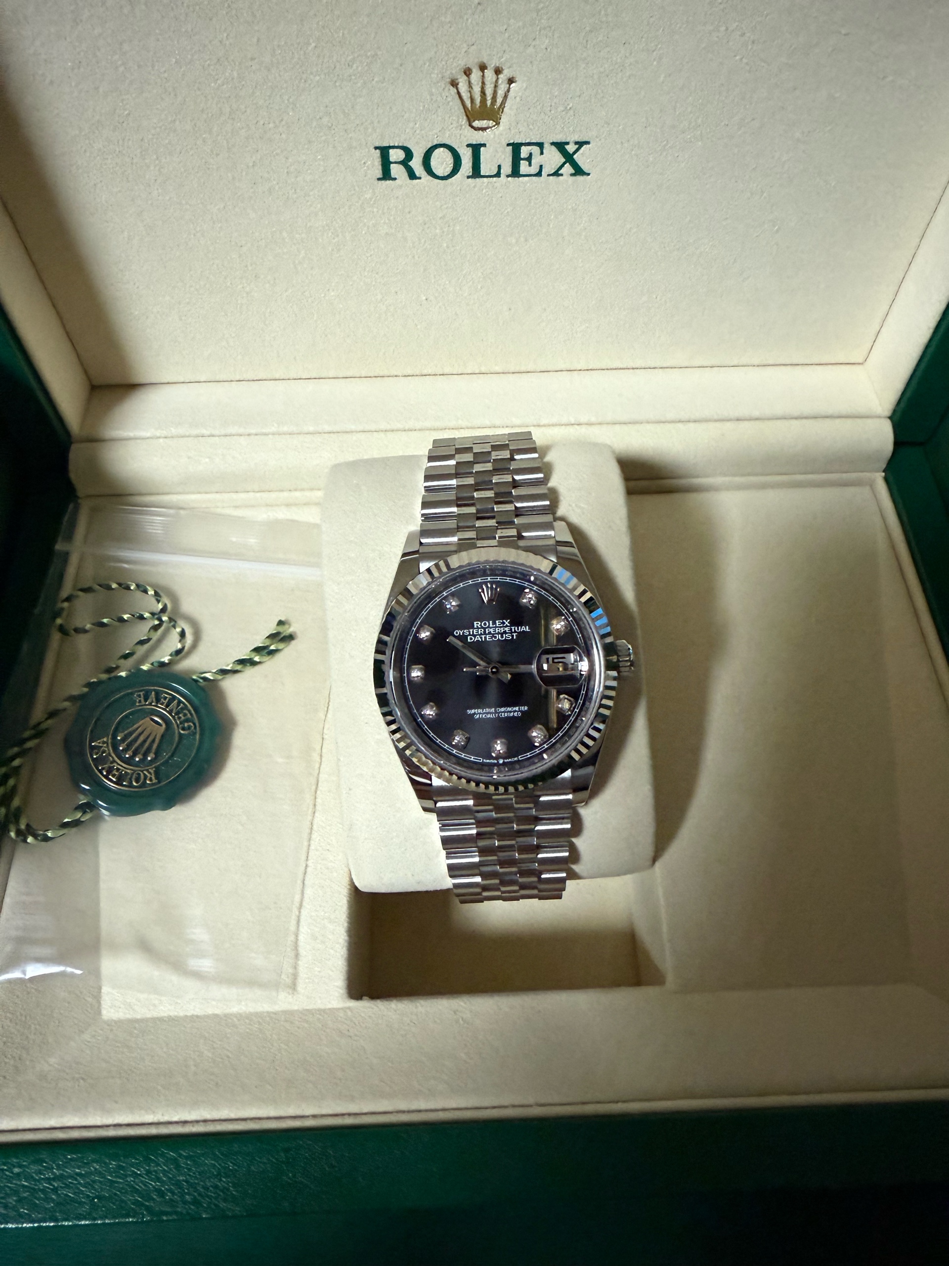 datejust36,126234,m126234-0027,브라이트 블랙,다이아몬드,스테인레스 스틸 + 화이트 골드,스테인레스 스틸,쥬빌리 브레이슬릿,사파이어 크리스탈,36mm,데이트저스트,데이저스트,데이트,화이트골드,화골,롤레조,콤비,검판,데잇저스트,데잇,예물시계 추천,다이아,다이아몬드 세팅,쥬빌리,어버이날 선물,40대 추천,단종,Rolex,스테인리스 스틸,화이트 골드,Switzerland,Stainless steel,Folding clasp,Date / diamond-set indices,Hour + minute + seconds,Datejust 36,데이저스트 36,Datejust,롤렉스,남성,예물,웨딩,.블랙,보석 세팅,폴딩 클라스프,약 20mm,원형,클래식,남녀공용