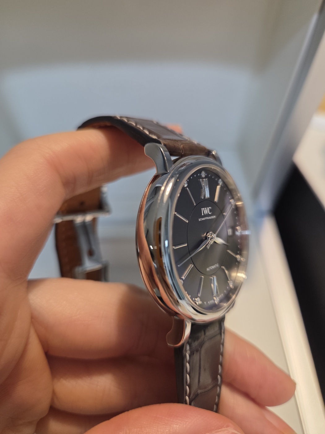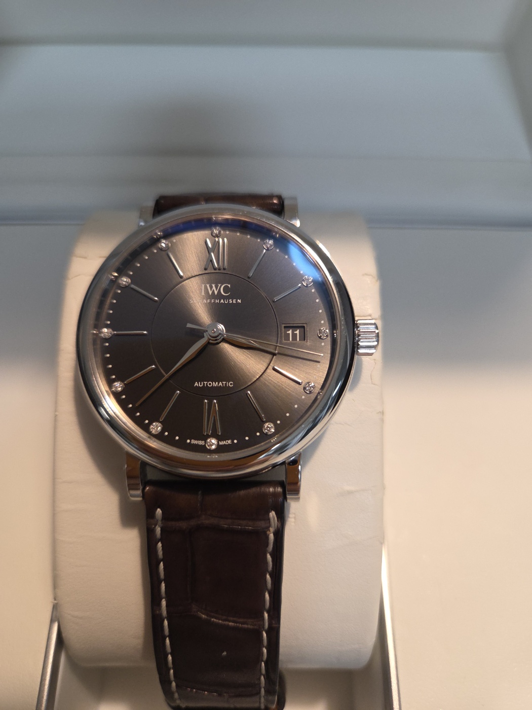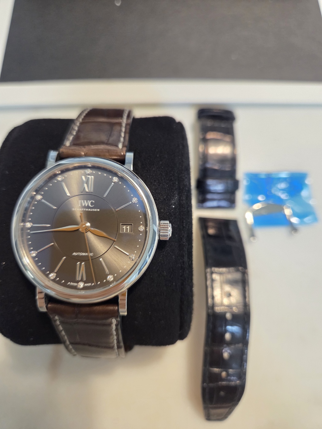 37mm,셀프 와인딩,Stainless steel,Folding buckle,Date / applied baton,roman & diamond-set indices,IWC Portofino Automatic 37 black steel black IW458102,IWC 포르토피노 오토매틱 37 오토 오토매틱 셀프와인딩 37 스틸 블랙 스틸 IW458102,Portofino,IWC,Portofino Automatic 37,포르토피노 오토매틱 37,Date / applied baton, roman & diamond-set indices