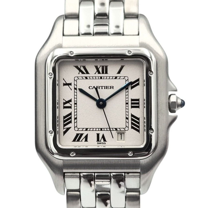 Cartier Panthere MM steel date quartz 1310 W25054P5,까르띠에 카으티에 팬더 미디엄 미디움 MM 스틸 쿼츠 1310 W25054P5,Panthere MM,팬더 MM,Panthere de Cartier,Cartier,까르띠에,실버,로만,스테인리스 스틸,쿼츠,Stainless steel,Folding clasp,Date / roman numeral indices