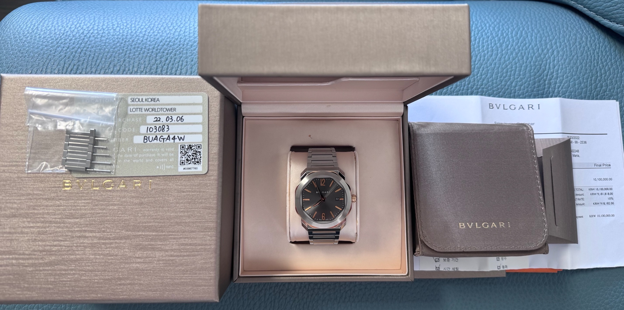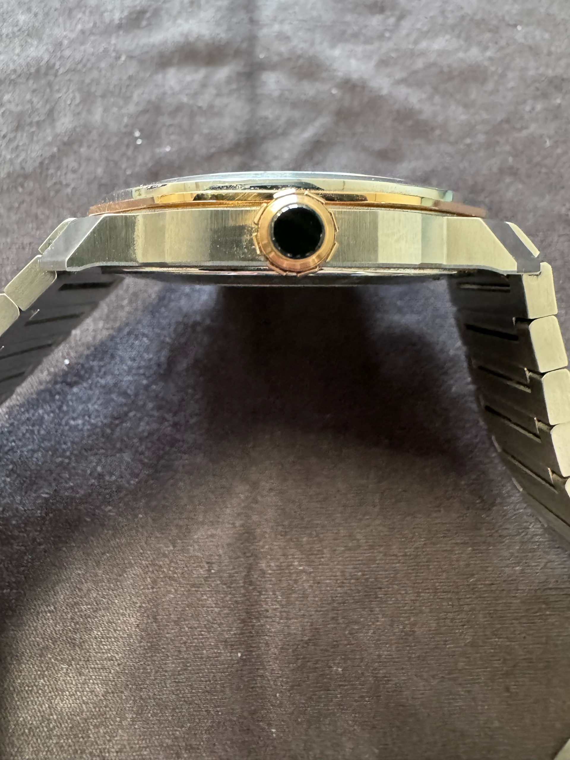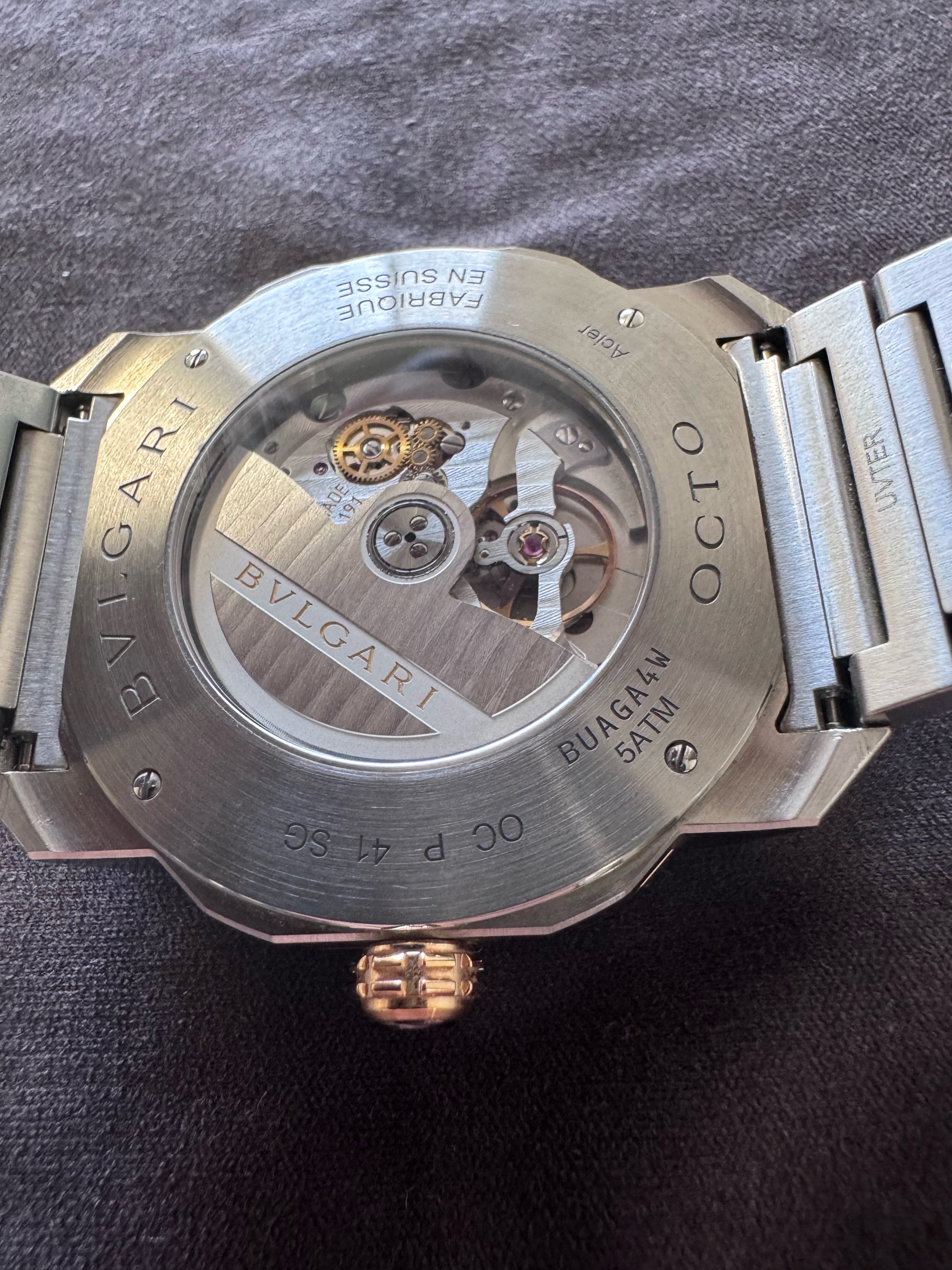 불가리 옥토 로마 옥토로마 스틸 그레이 스틸 골드 투톤 103083,Bvlgari Bulgari Octo Roma steel grey gray steel gold two tone 103083,그레이,스테인리스 스틸,Octo Roma,옥토 로마,Octo Finissimo,Bvlgari,불가리,셀프 와인딩,Rose gold + ceramic,Butterfly folding clasp,Date / applied arabic numerals & baton indices