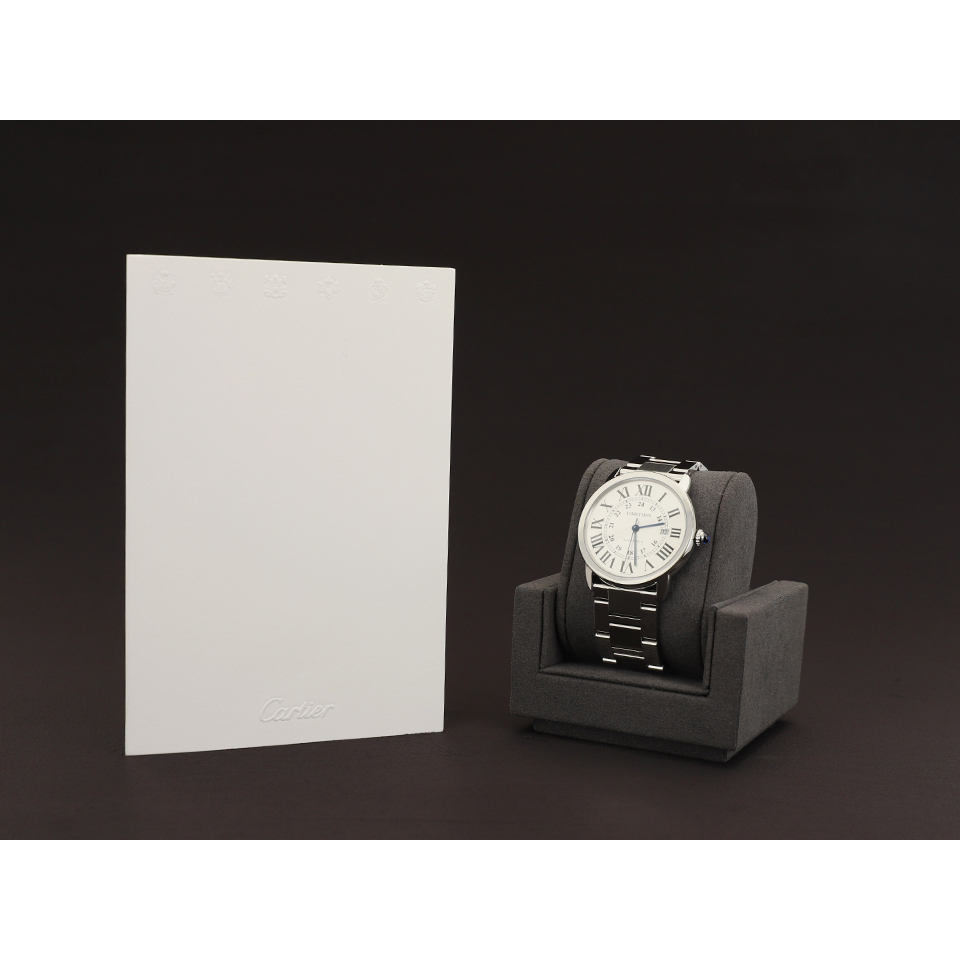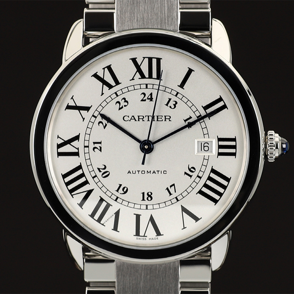 Cartier Ronde Solo XL W6701011,까르띠에 롱드 솔로 엑스라지,까르띠에 롱드 솔로 XL,까르띠에 롱드 솔로 오토매틱,까르띠에 롱드 솔로 W6701011,실버 오팔린,로마 숫자 인덱스,42mm,스테인리스 스틸,셀프와인딩,Ronde Solo XL,Ronde de Cartier,Cartier,까르띠에,로만,셀프 와인딩,Switzerland,Stainless steel + spinel,Butterfly clasp,Date / roman numeral indices,Hour + minute + seconds,아라빅,아라빅, 로만