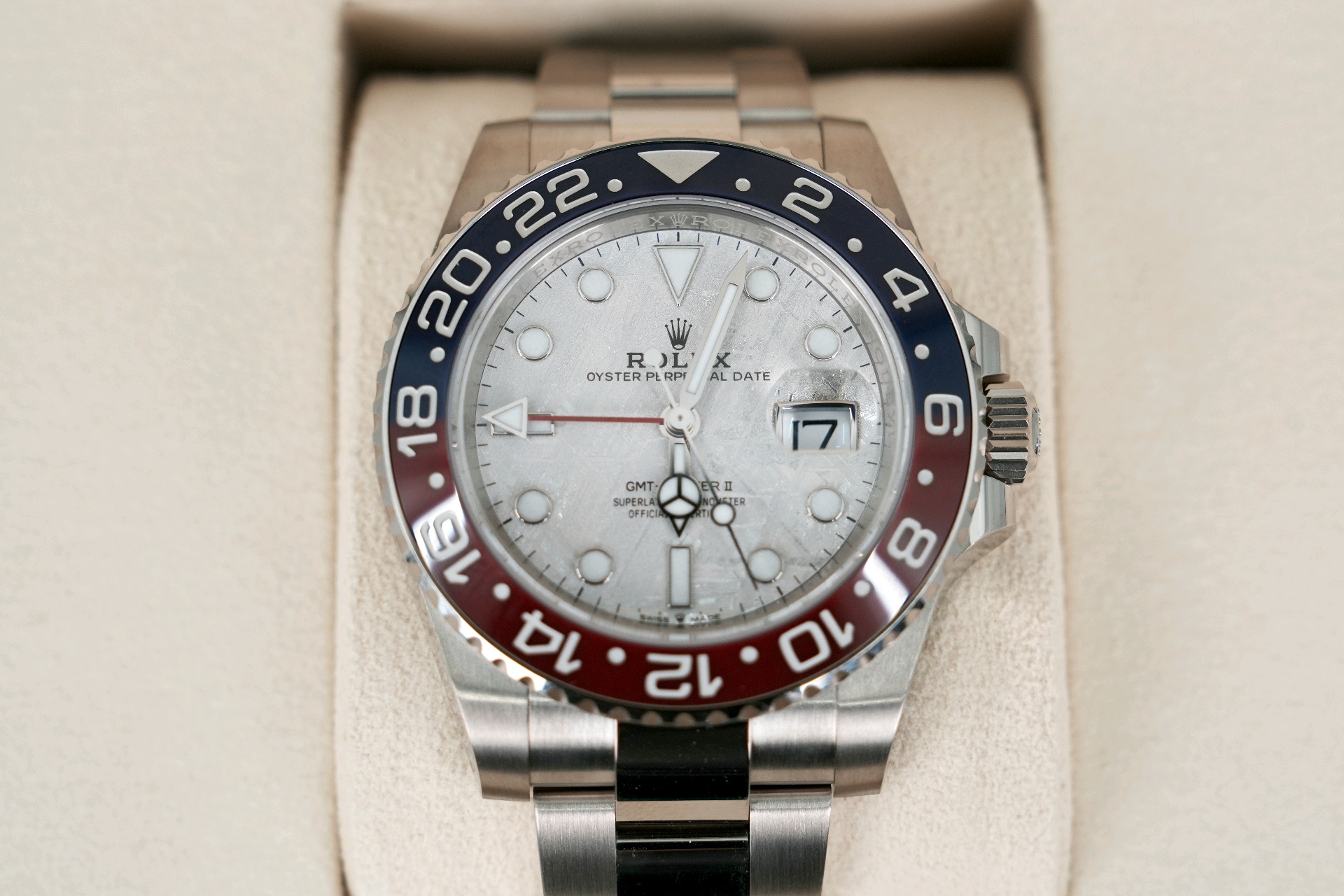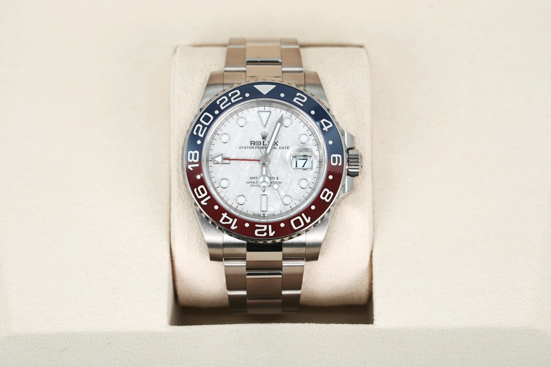 GMT-Master2,M126719BLRO-0002,지엠티마스터,지엠티마스터2,젬티,GMT,화이트골드,화골,금통,금장,펩시,팹시,오이스터브레이슬릿,20대추천,30대추천,40대추천,메테오라이트,사파이어크리스탈,40mm,Rolex,화이트 골드,오이스터 브레이슬릿,사파이어 크리스탈,Switzerland,White gold,Folding clasp,Date / applied hour markers,Hour + minute + seconds + GMT,GMT-Master 2,지엠티 마스터 2,GMT-Master,롤렉스,.실버,도트,폴딩 클라스프,데이트,약 20mm,원형,파일럿,남성용