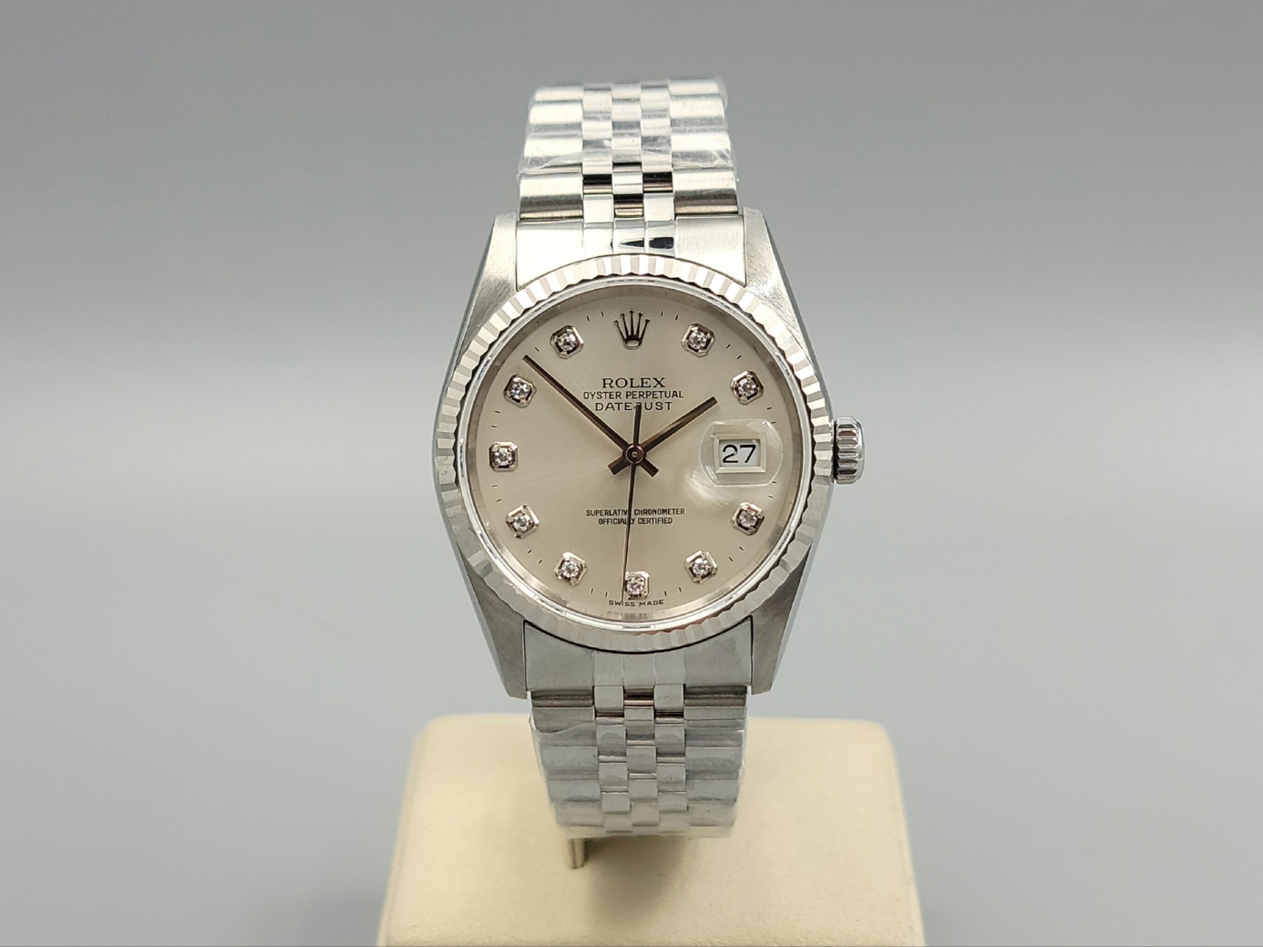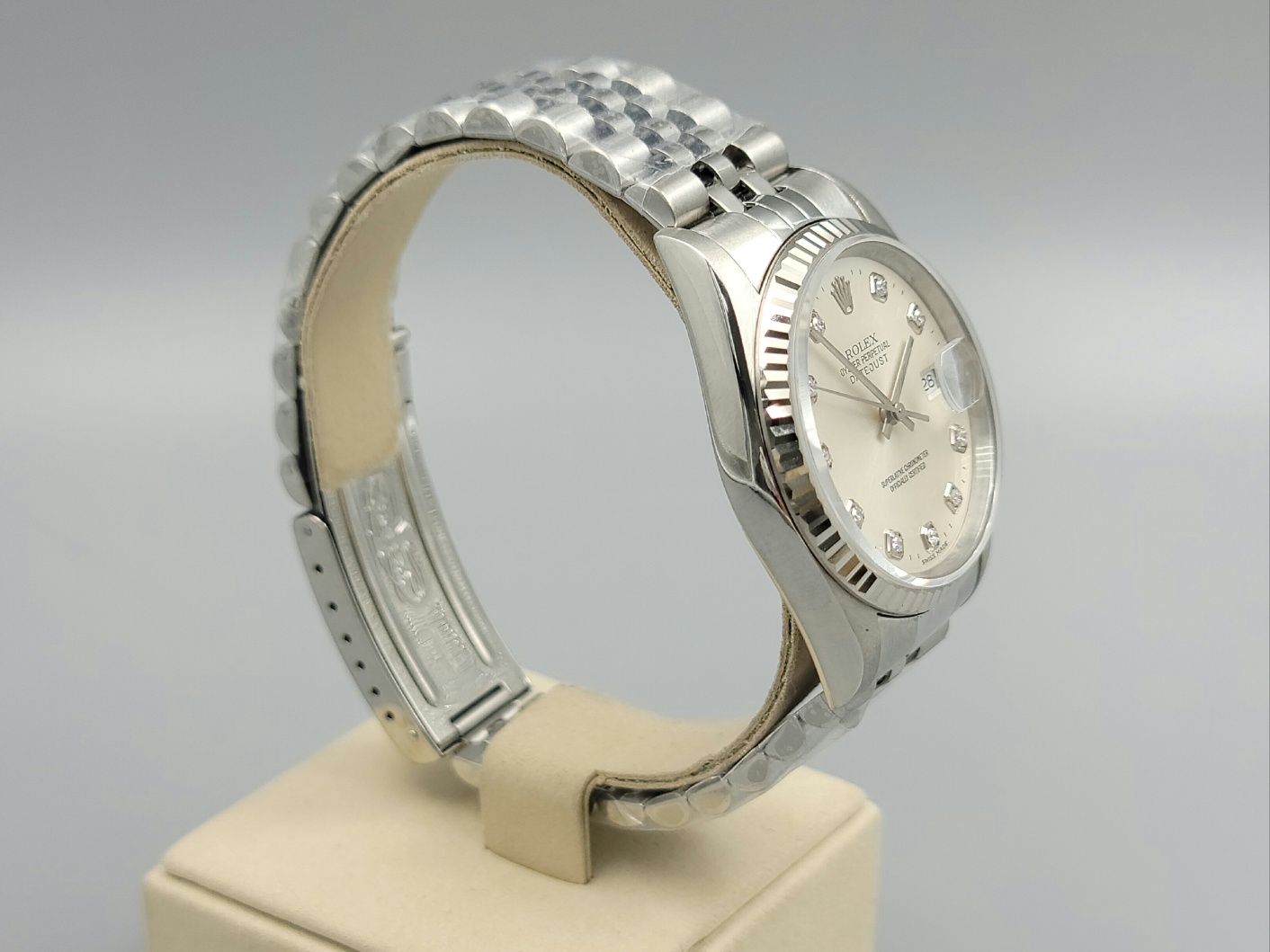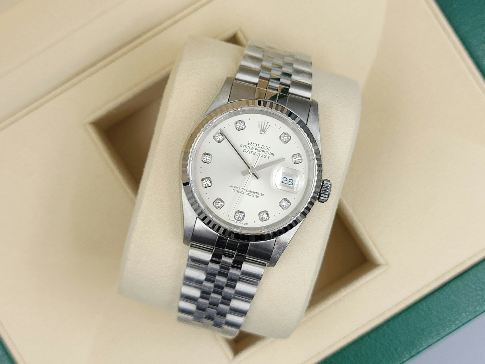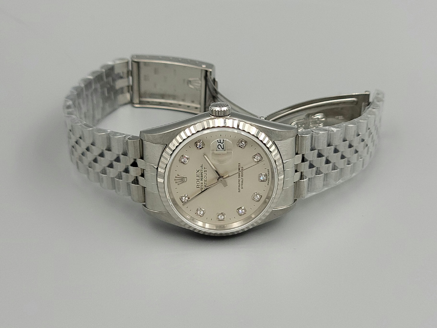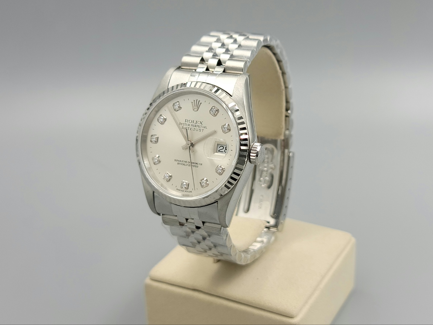 16234-SVDIAJUB1,Rolex Datejust 36 16234 steel silver steel diamond diamonds set jubilee bracelet,롤렉스 로렉스 데이트저스트 36 16234 스틸 실버 다이아 다이아몬드 세팅 셋팅 쥬빌리 브레이이슬릿,Datejust,Rolex,롤렉스,실버,다이아몬드 세팅,스테인리스 스틸,36mm,플루티드,Cal. 3135,Stainless steel,Folding clasp,Date / diamond-set indices,Datejust 36,데이트저스트 36