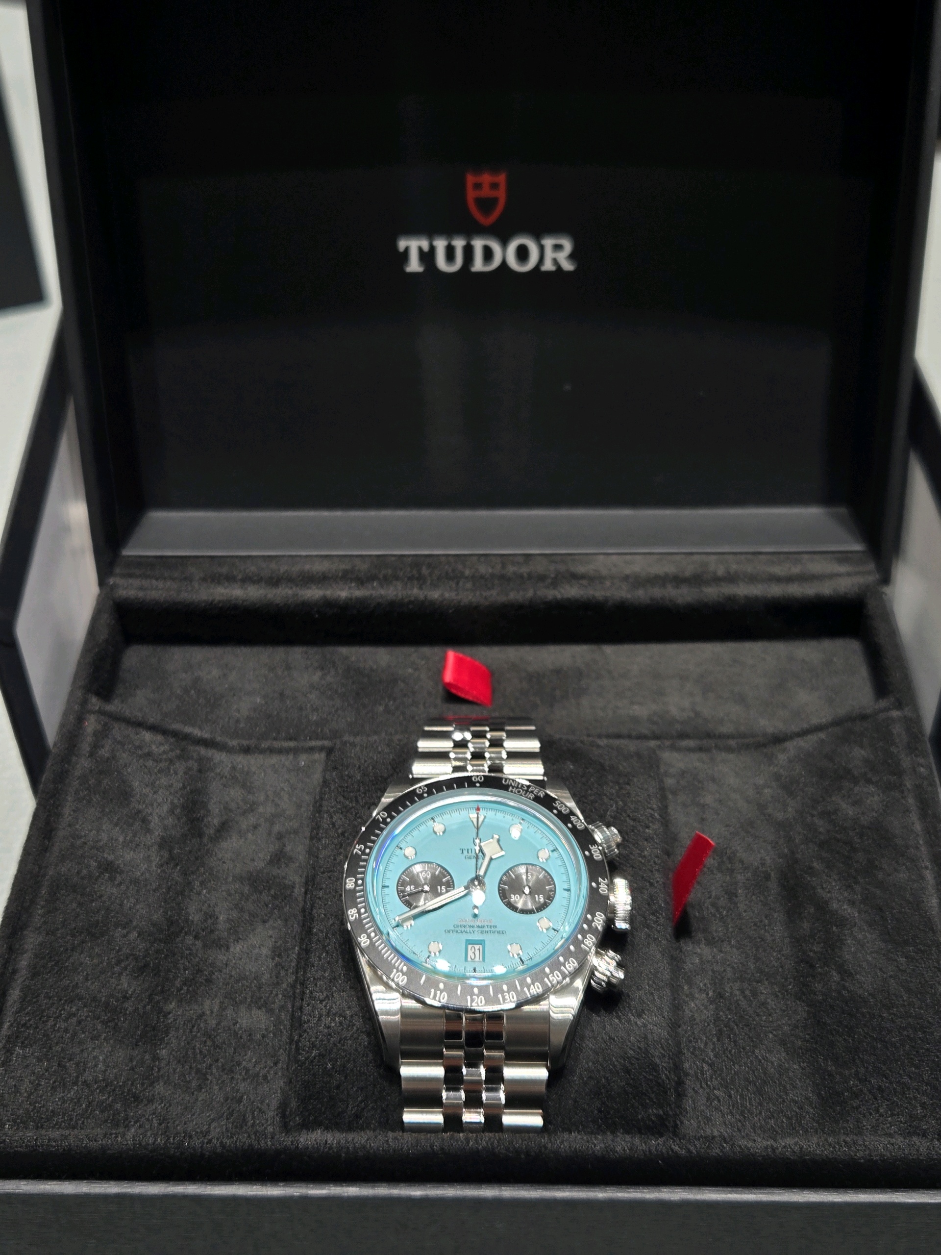 M79360N-0024,Tudor Daring Watches Black Bay Chrono Chronograph Flamingo Blue 79360N,튜더 데어링 블랙베이 블랙 베이 크로노 크로노그래프 플라밍고 플래밍고 블루 터콰이즈 크로노 크로노그래프 79360N,플라밍고 블루,스테인리스 스틸,41mm,타키미터,셀프 와인딩,Stainless steel,Folding clasp,Date,chronograph subdial,small seconds / applied hour markers,Black Bay Chrono,블랙 베이 크로노,Tudor,튜더,Date, chronograph subdial, small seconds / applied hour markers