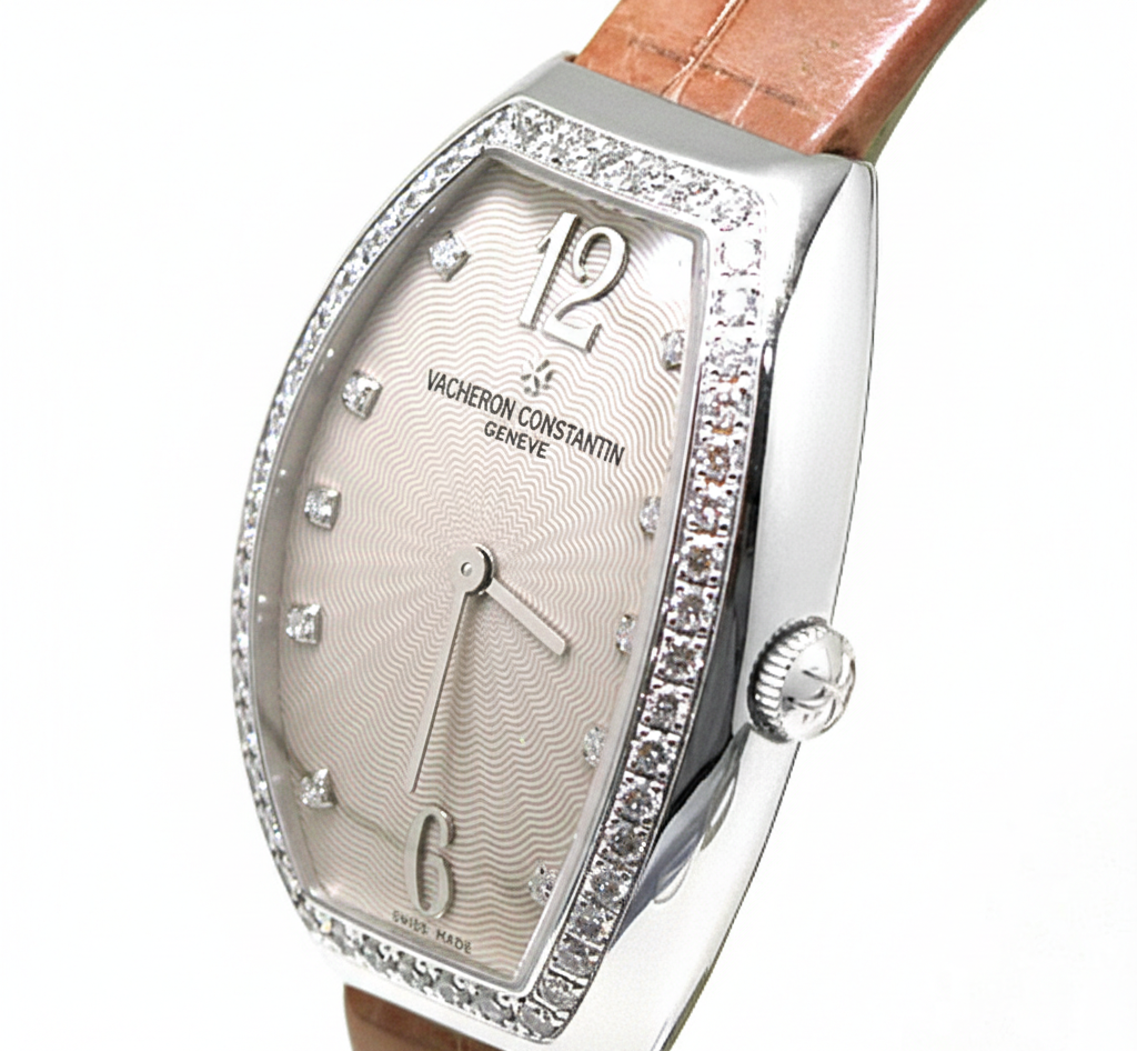 VC 바쉐론 콘스탄틴 에제리 토노 베럴 배럴 화이트 골드 화골 샴페인 여성 쿼츠 25540/000G-9051,VC Vacheron constantin egerie quartz ladies white gold 25540/000G-9051 white gold quartz,25540/000G-9051,베이지,화이트 골드,가죽,스트랩,다이아몬드 세팅,쿼츠,Switzerland,White gold,Pin buckle,Applied arabic numerals & baton indices,Égérie,에제리,Vacheron Constantin,바쉐론 콘스탄틴